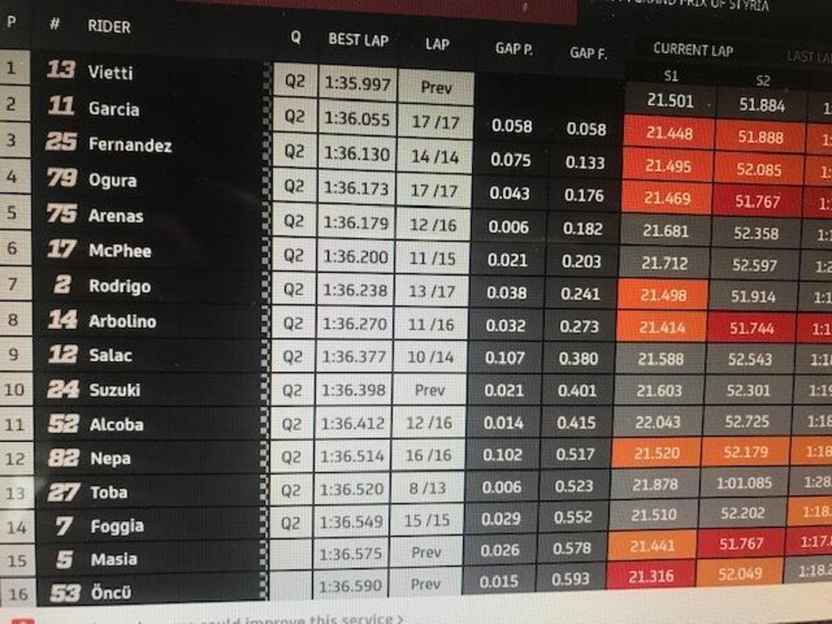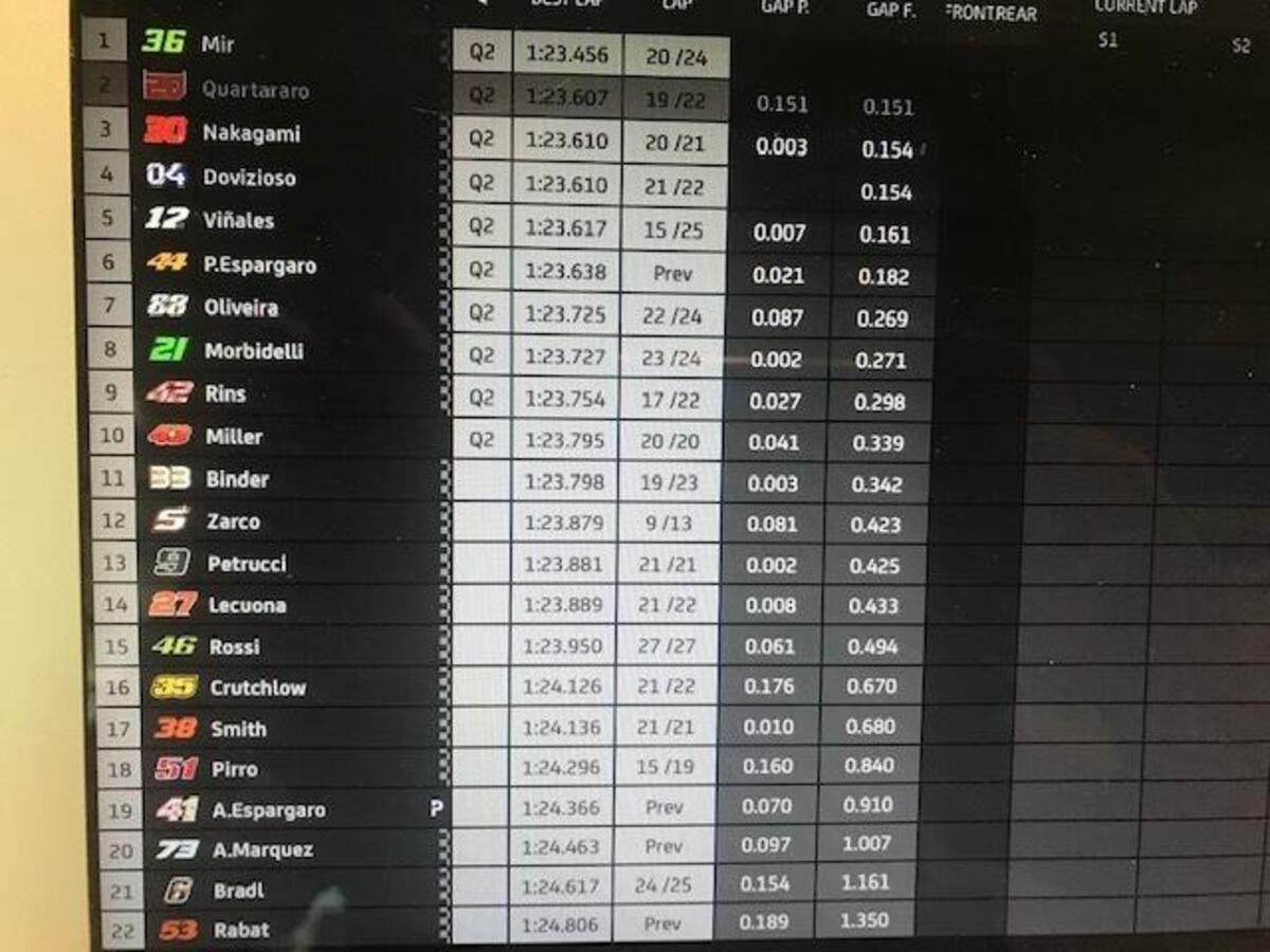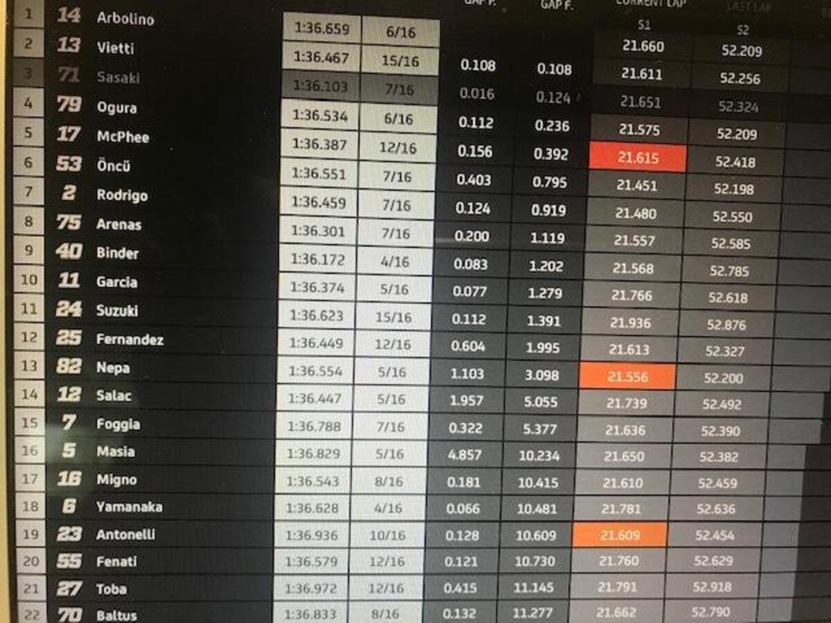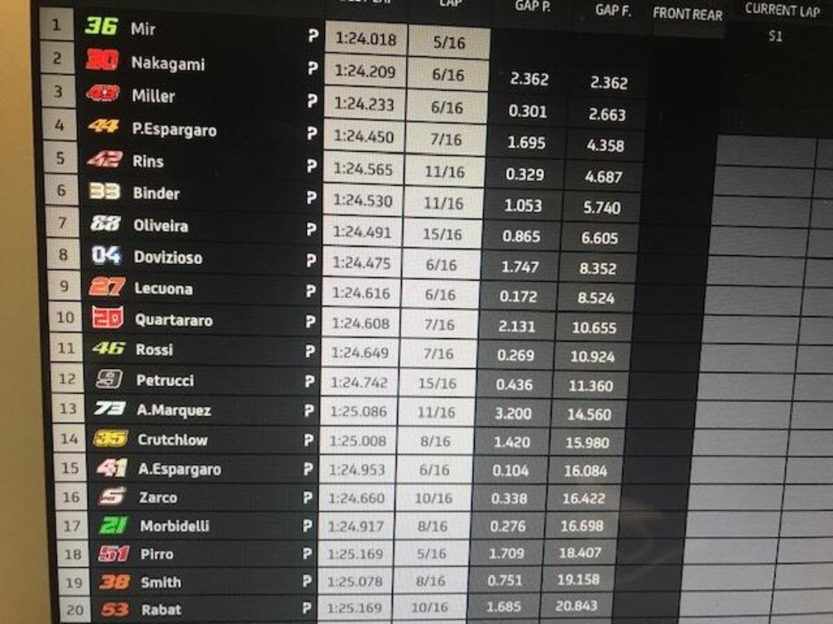 Joan Mir: “Grande lavoro settimana scorsa, il miglior fine settimana per me: abbiamo conquistato un ottimo risultato, che avevamo mancato prima per diversi motivi. Abbiamo una buona base, una moto competitiva: perdiamo un po’ nel T1 e nel T2, potevo recuperare nella seconda parte. Abbiamo punti forti e deboli, abbiamo buone informazioni dallo scorso GP”.