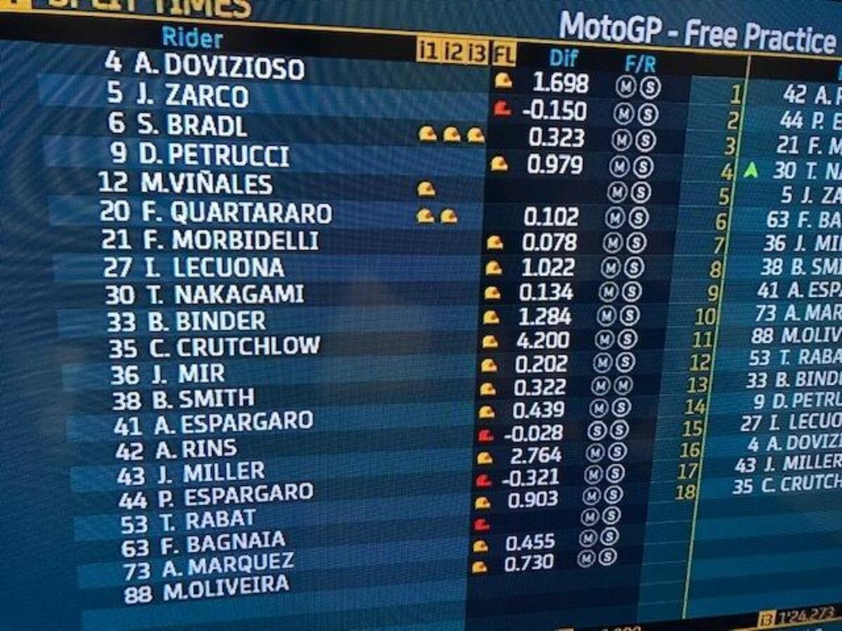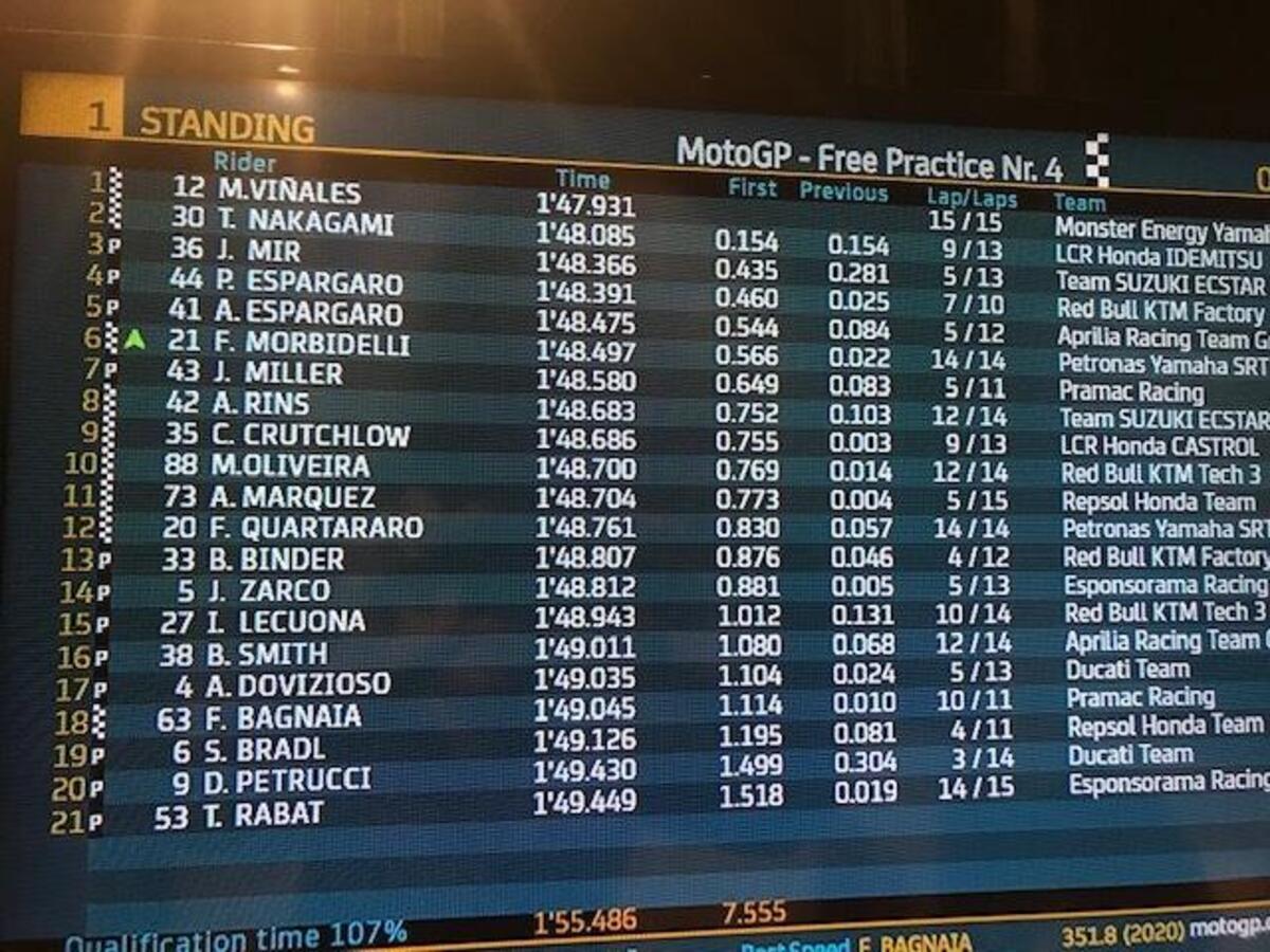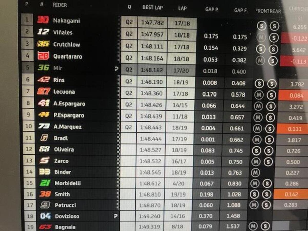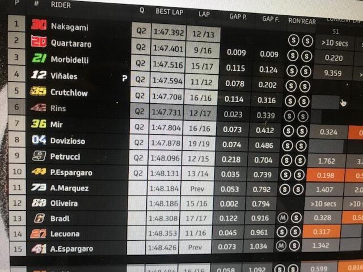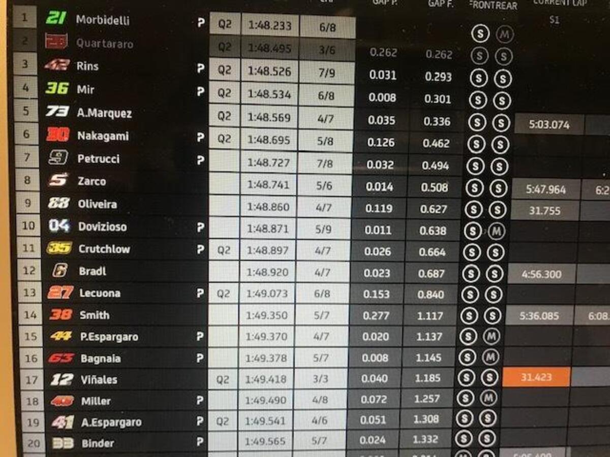 Fabio Quartararo: “Le qualifiche sono state dure: abbiamo fatto tanti cambiamenti sulla moto in questi giorni, cambiamenti positivi per il passo gara, ma non per il giro secco, non avevo feeling con le gomme nuove. Ma il mio passo è buono, sono molto fiducioso per la gara.