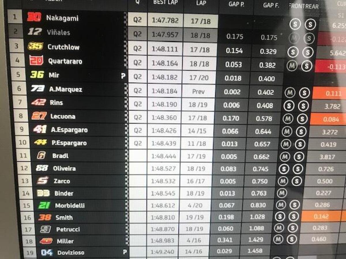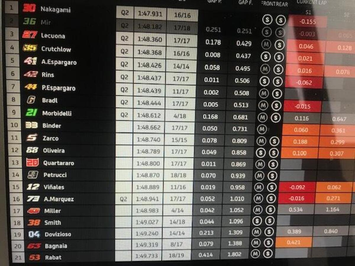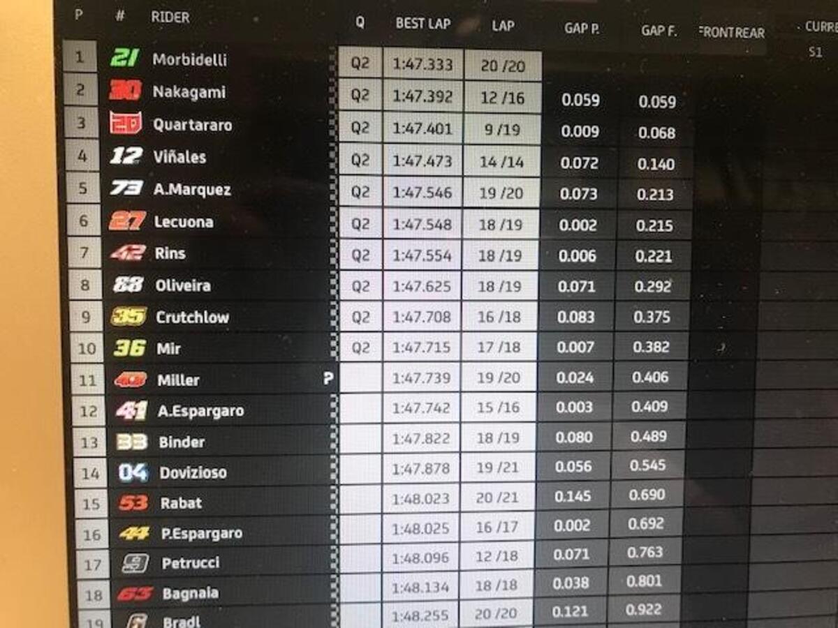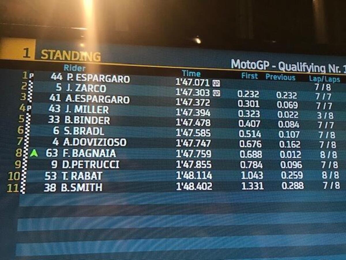 Fabio Quartararo: “Le qualifiche sono state dure: abbiamo fatto tanti cambiamenti sulla moto in questi giorni, cambiamenti positivi per il passo gara, ma non per il giro secco, non avevo feeling con le gomme nuove. Ma il mio passo è buono, sono molto fiducioso per la gara.