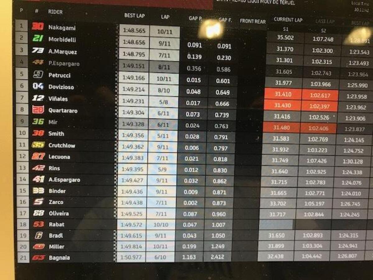 “Qui sarei contento se vincesse Nakagami, perché toglierebbe punti importanti agli altri rivali per il titolo. Io cercherò di fare del mio meglio, ma sono un po’ in difficoltà: sono sicuro che a Valencia potremmo fare meglio. E’ chiaro che anche Nakagami potrebbe diventare un contendente per il titolo, se migliora continuamente può diventare un problema.