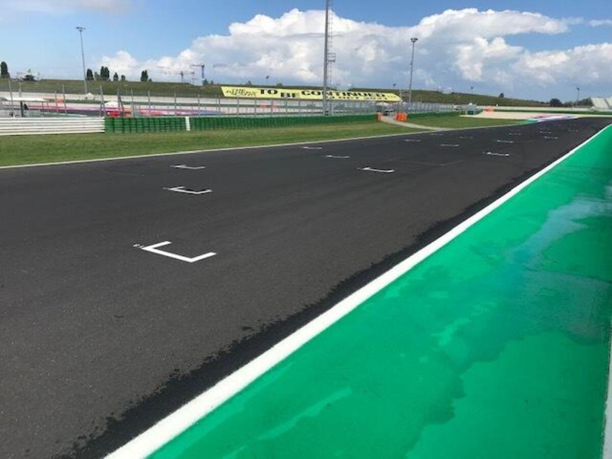 La pista si sta asciugando, ma è ancora più umida che asciutta.