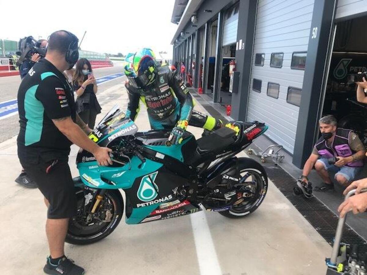 Gavira , coach di Rossi, ha appena fatto un giro completo a bordo pista con lo scooter. Ha detto: “pista completamente asciutta”