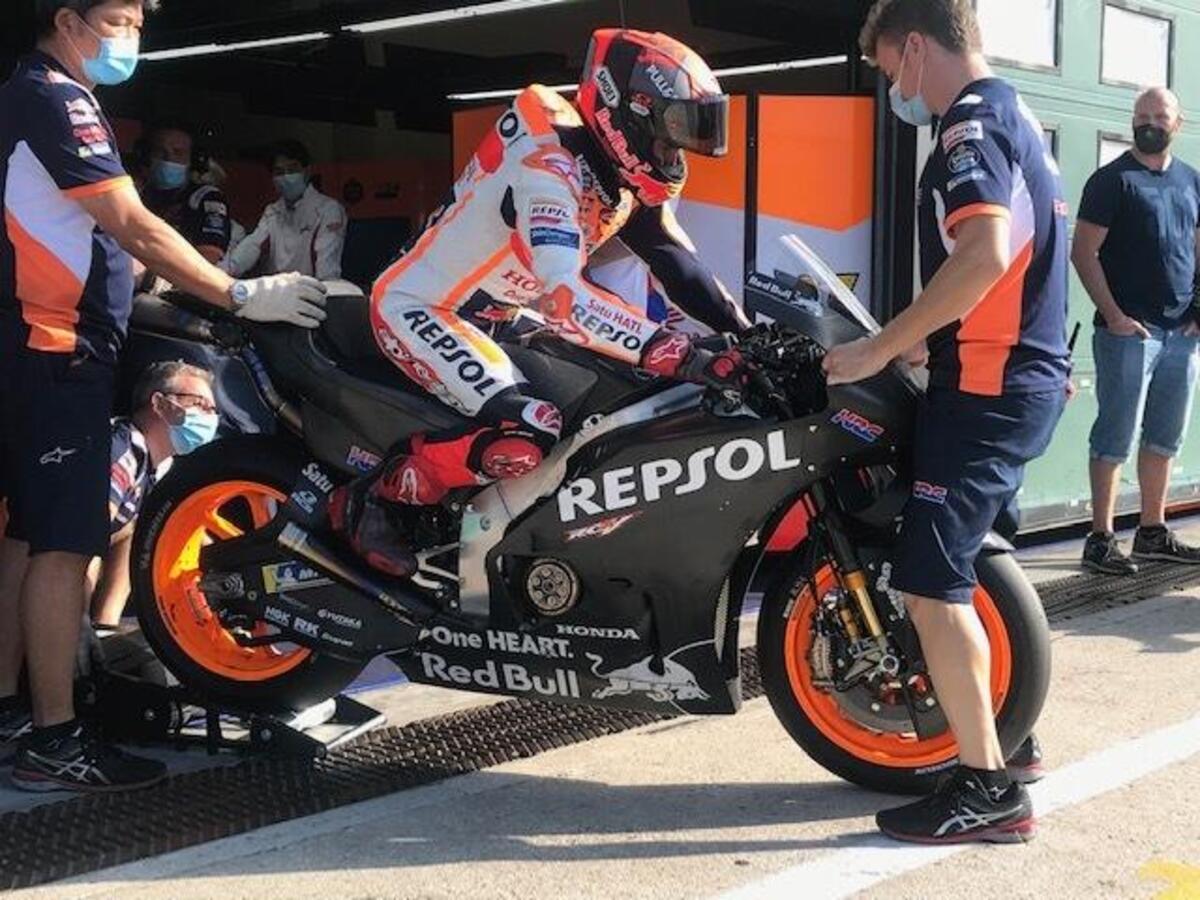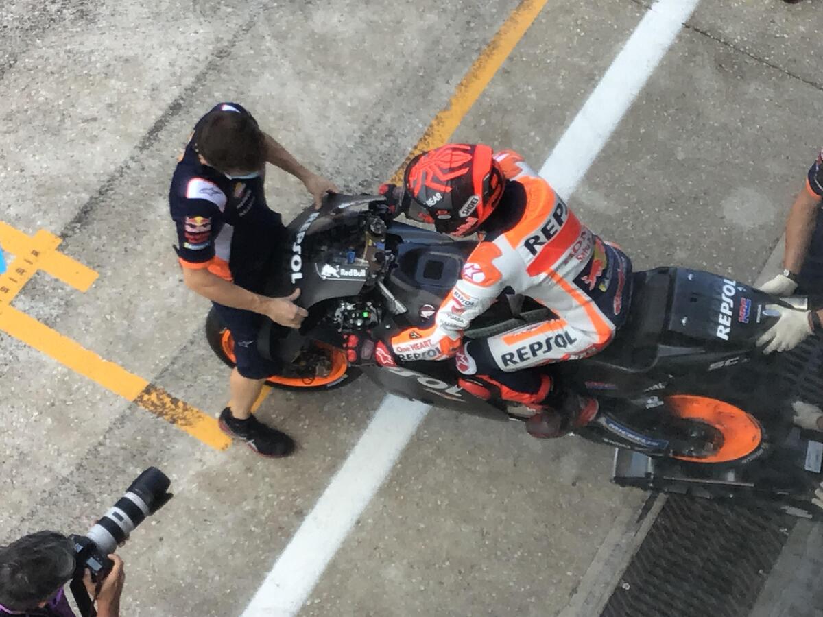 Marquez è tornato ai box dopo aver fatto qualche giro con l’altro prototipo 2022