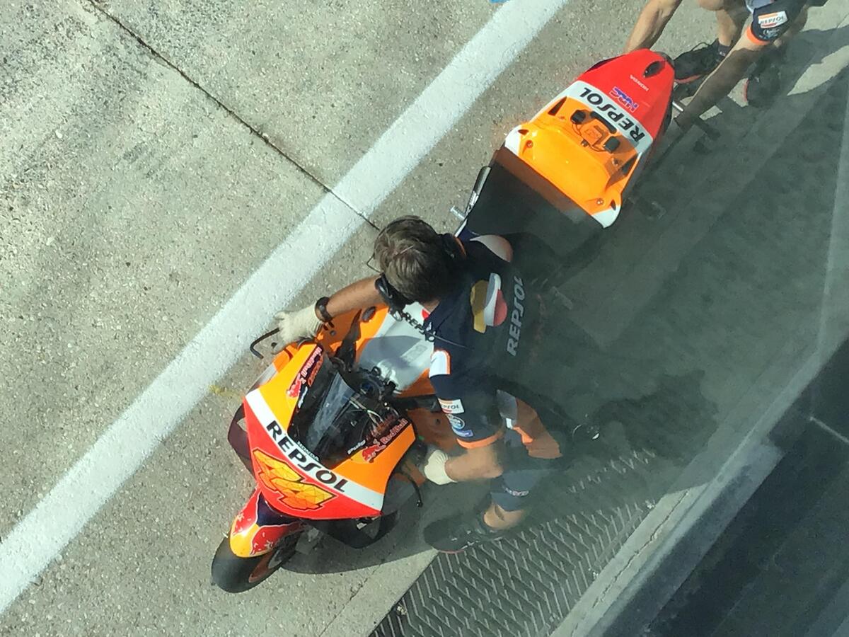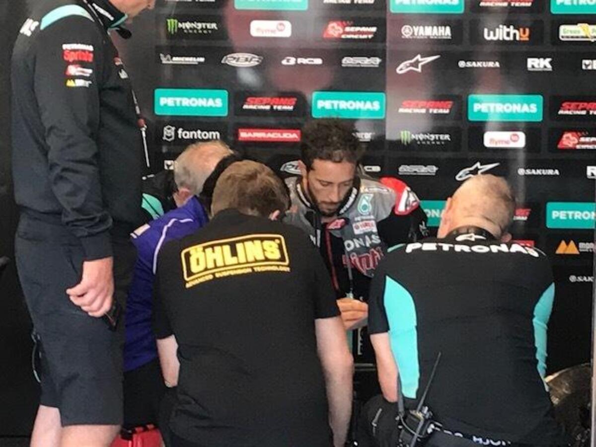 Dovizioso ha fatto solo 9 giri, meno di tutti. Dentro al box continua a lavorare sulla posizione di guida, con continua modifiche. Non è quindi ancora il momento di spingere