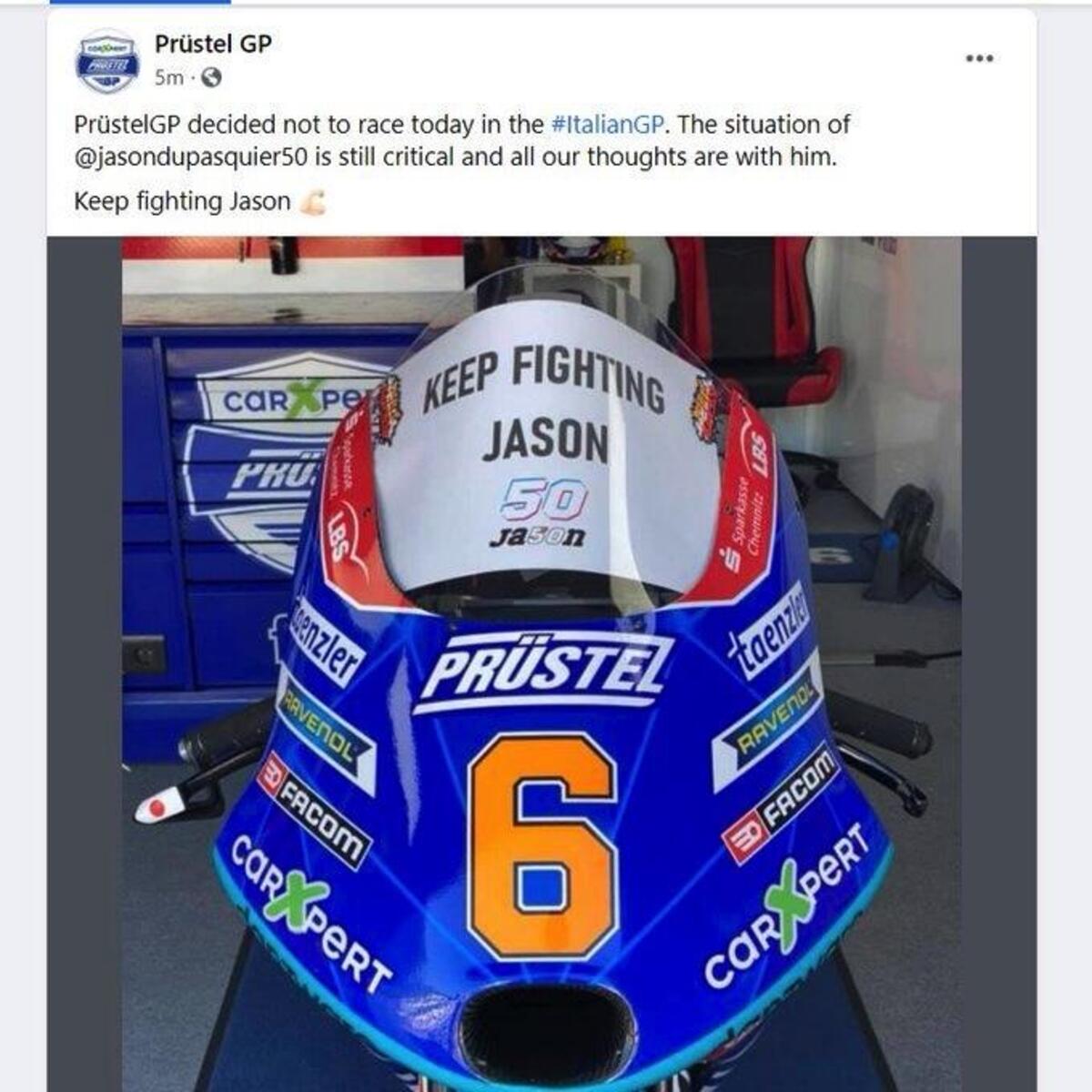 Con quale stato d’animo andranno in pista i piloti della MotoGP? Perché i ragazzi della Moto2 non sapevano della morte di Jason Dupasquier, ma quelli della MotoGP lo sanno, eccome. E allora, come faranno a guidare, è giusto andate avanti? Non ho una risposta a queste domande, forse non esiste proprio. Credo che ogni considerazione, in questo caso, sia corretta e sbagliata allo stesso tempo, credo sia giusto rispettare la decisione di ciascuno. Ho la fortuna di nutrirmi di sport, di vivere di motociclismo, di frequentare un ambiente di “pazzi” (cit. dottorcosta), che ha una passione unica e viscerale per le moto. Ce l’ha fin da quando era bambino, come ce l’ha mia figlio Leonardo, che adesso gioca con le minimoto e a casa, mi ha detto mia moglie, sta piangendo per la morte di un pilota della Moto3 che nemmeno conosceva, ma che, come Leonardo, si divertiva e sognava con le moto. Per Leonardo, naturalmente, è ancora solo un gioco, ma la passione è la stessa, la stessa di Jason che l’ha portato, con la sua bravura, fino al motomondiale.