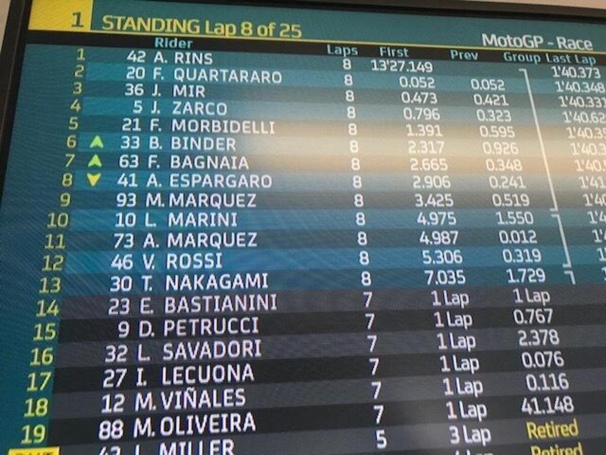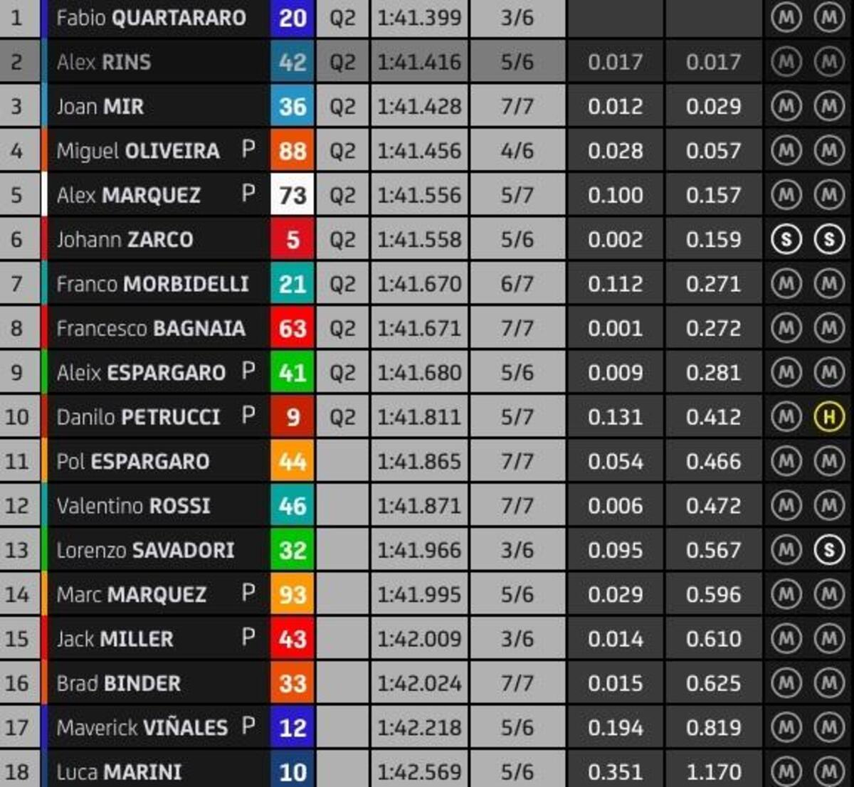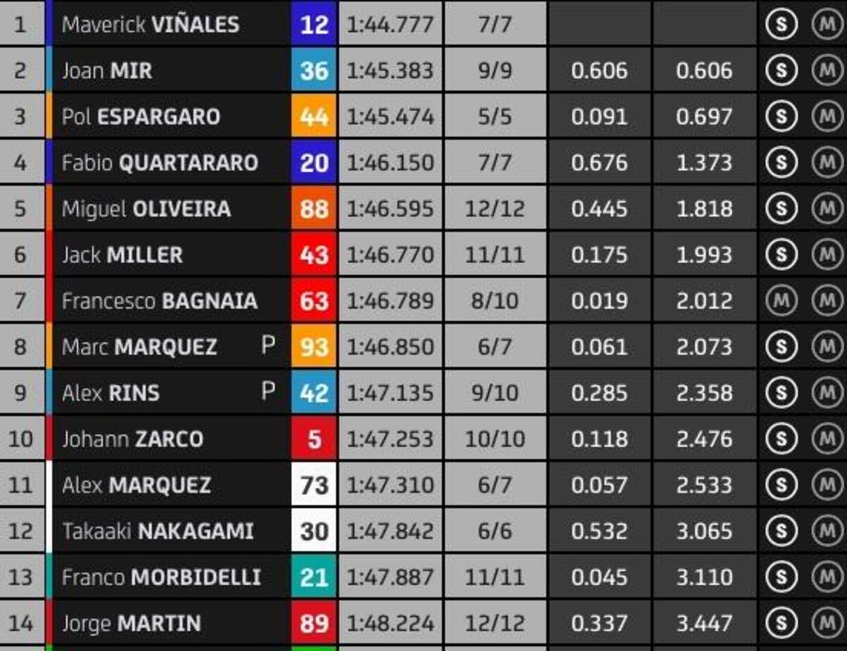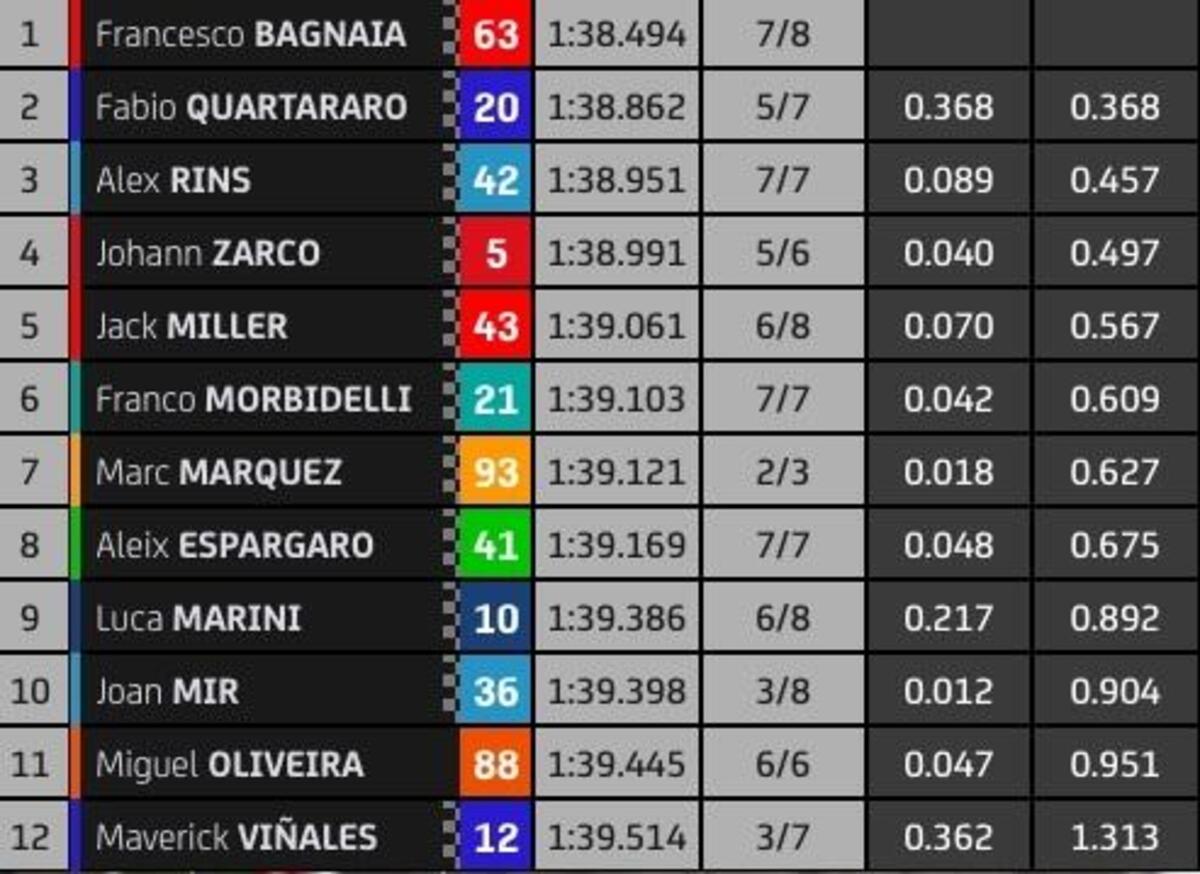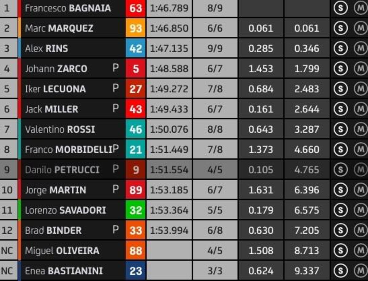 “T4? Rispetto a stamattina ho tolto due decimi nell’ultimo settore, lì la Yamaha è molto competitiva, noi lo siamo nel T2 e nel T3. Sto lavorando molto per avere un buon feeling anche nel T4, solo Quartararo ha fatto un po’ meglio alla fine, anche Zarco è più veloce di me in quel settore, questo mi permette di studiare i suoi dati. Quest’anno guido più rilassato e posso conservare le gomme, spingere al 100% nel time attack.