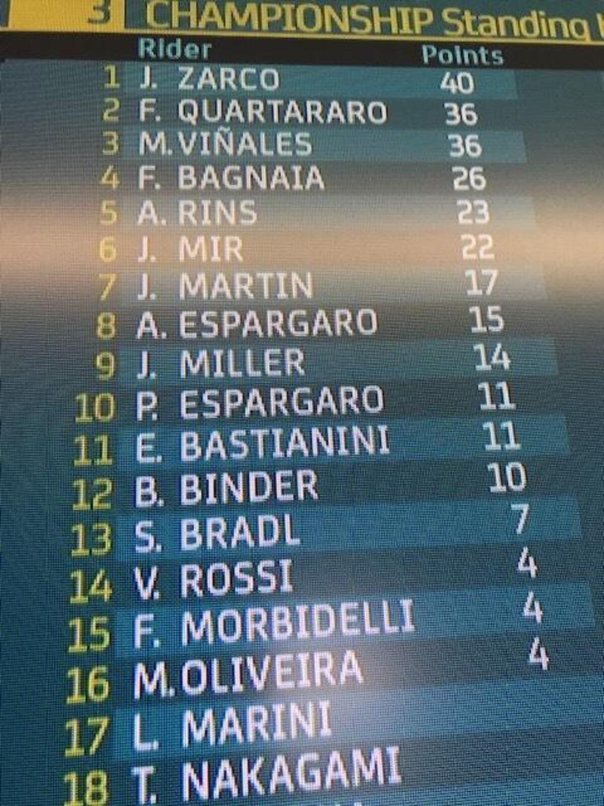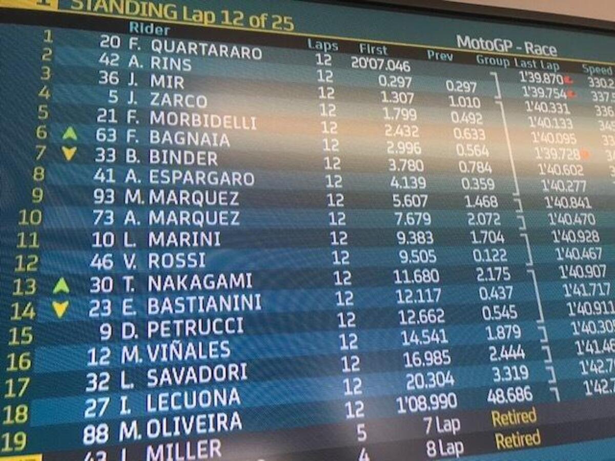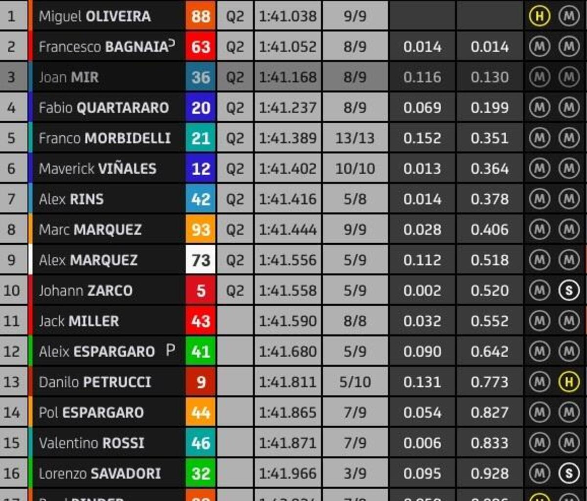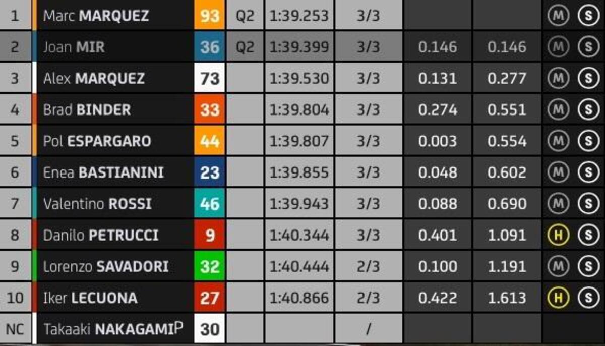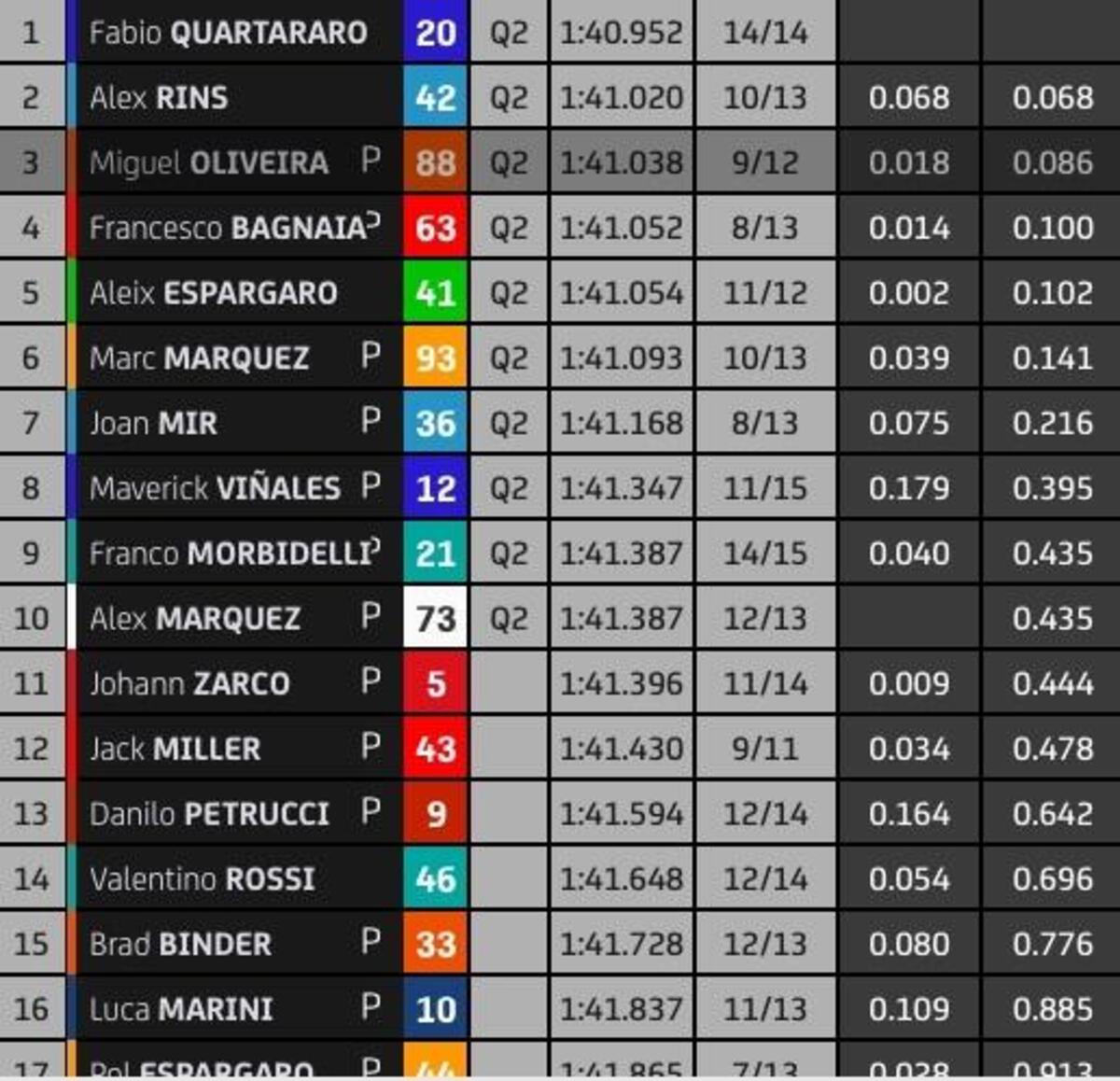 “T4? Rispetto a stamattina ho tolto due decimi nell’ultimo settore, lì la Yamaha è molto competitiva, noi lo siamo nel T2 e nel T3. Sto lavorando molto per avere un buon feeling anche nel T4, solo Quartararo ha fatto un po’ meglio alla fine, anche Zarco è più veloce di me in quel settore, questo mi permette di studiare i suoi dati. Quest’anno guido più rilassato e posso conservare le gomme, spingere al 100% nel time attack.