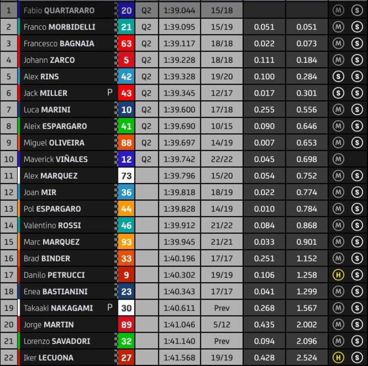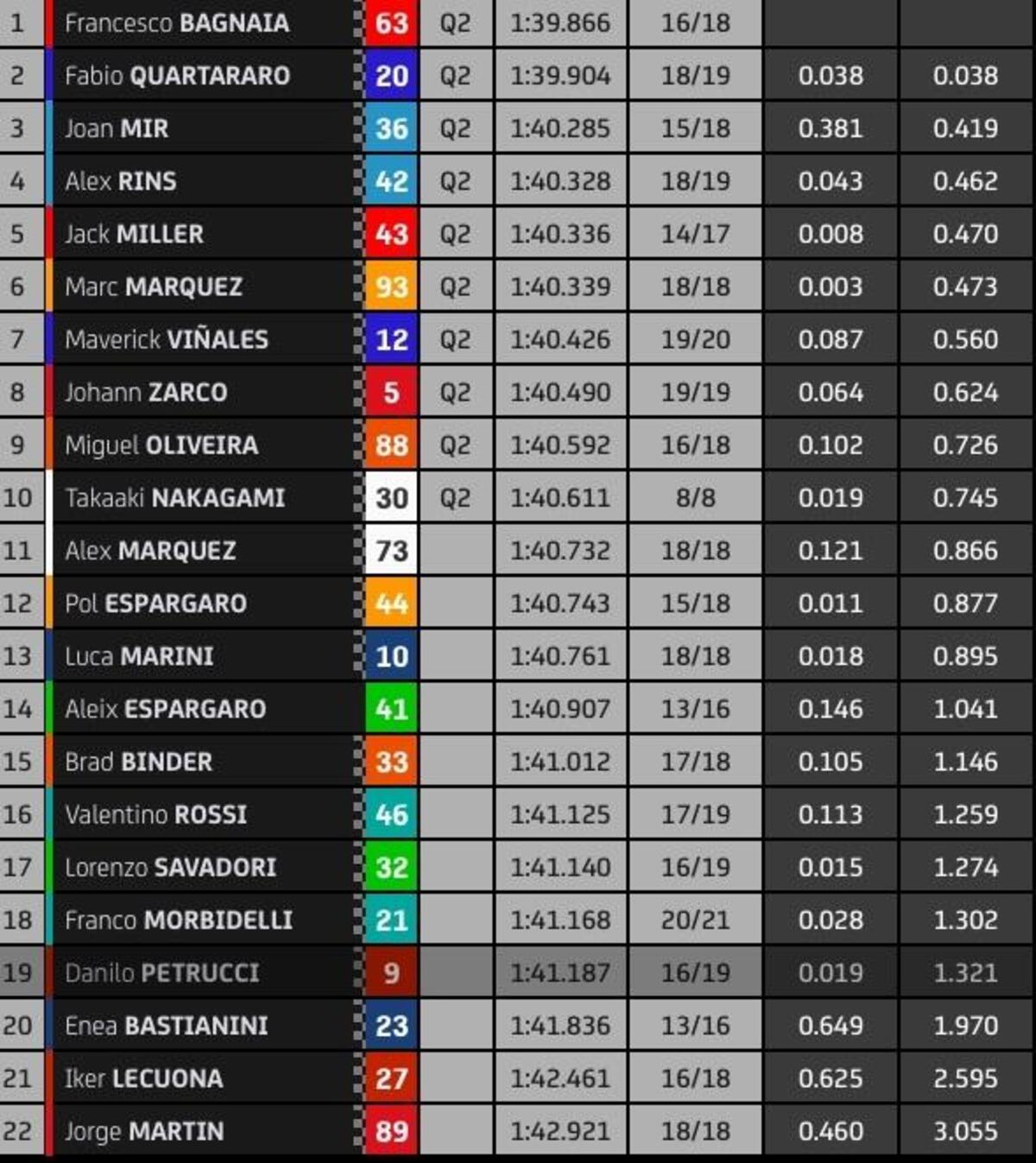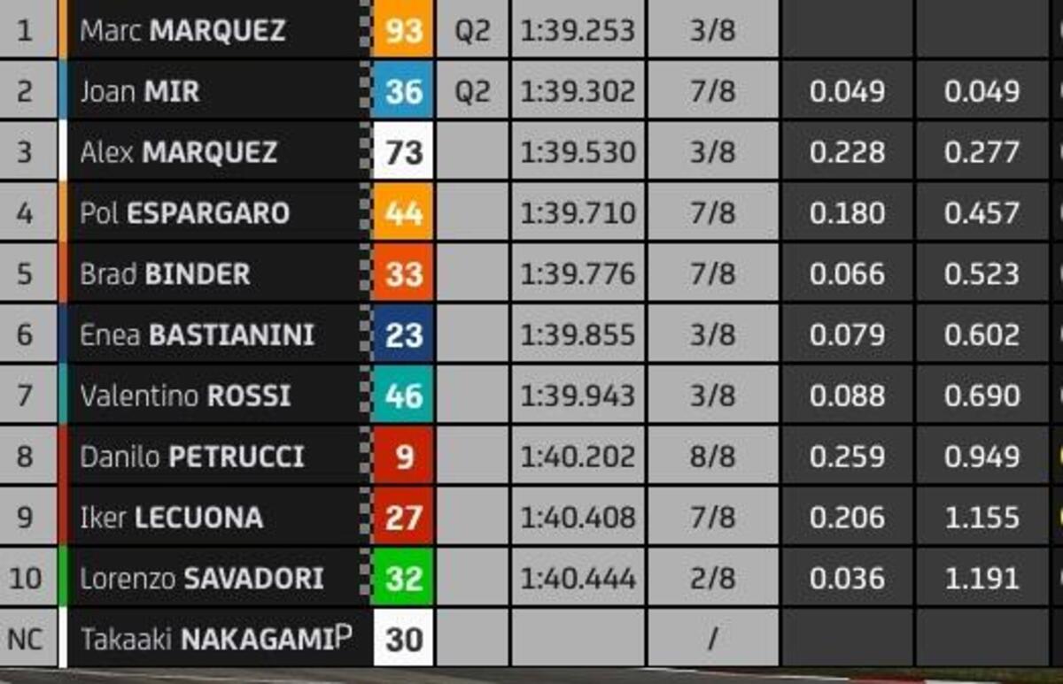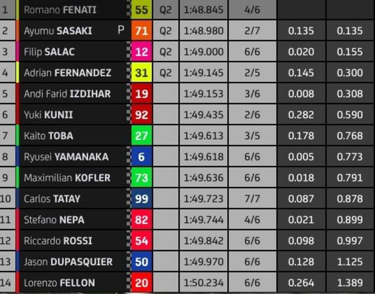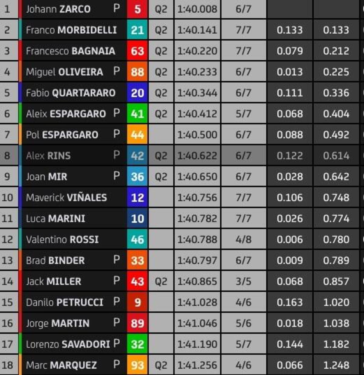 “T4? Rispetto a stamattina ho tolto due decimi nell’ultimo settore, lì la Yamaha è molto competitiva, noi lo siamo nel T2 e nel T3. Sto lavorando molto per avere un buon feeling anche nel T4, solo Quartararo ha fatto un po’ meglio alla fine, anche Zarco è più veloce di me in quel settore, questo mi permette di studiare i suoi dati. Quest’anno guido più rilassato e posso conservare le gomme, spingere al 100% nel time attack.