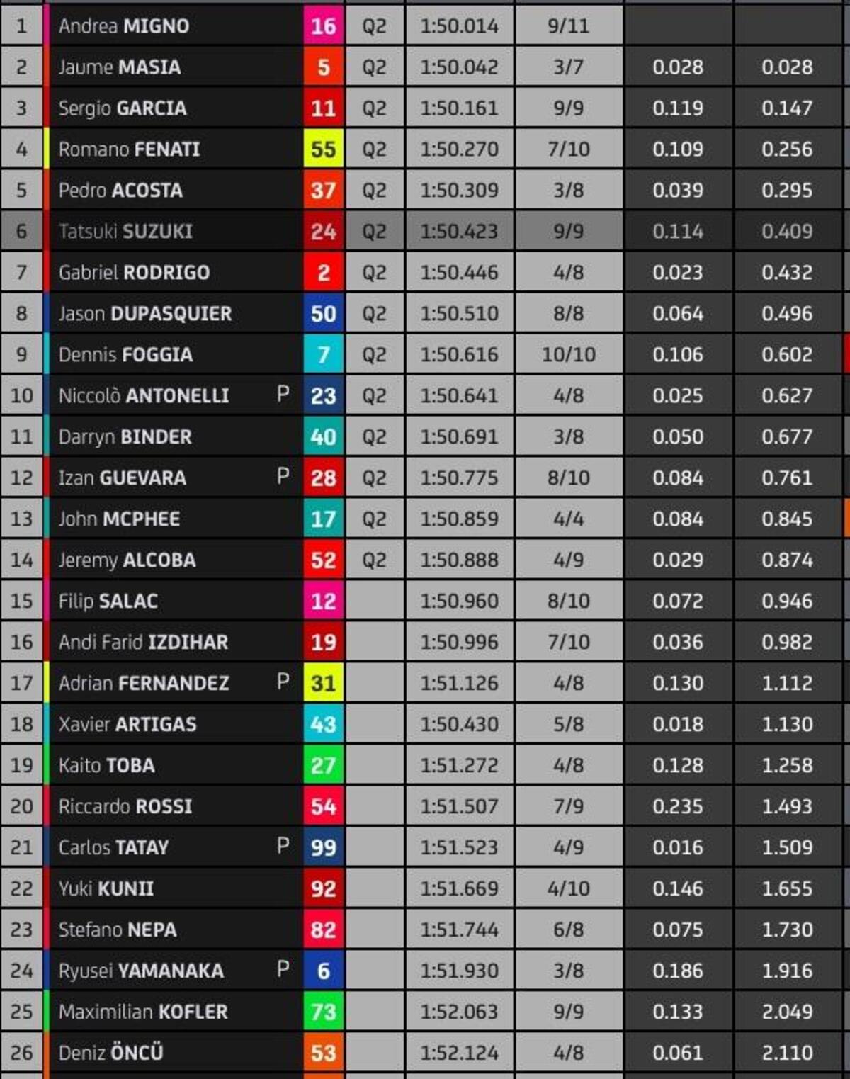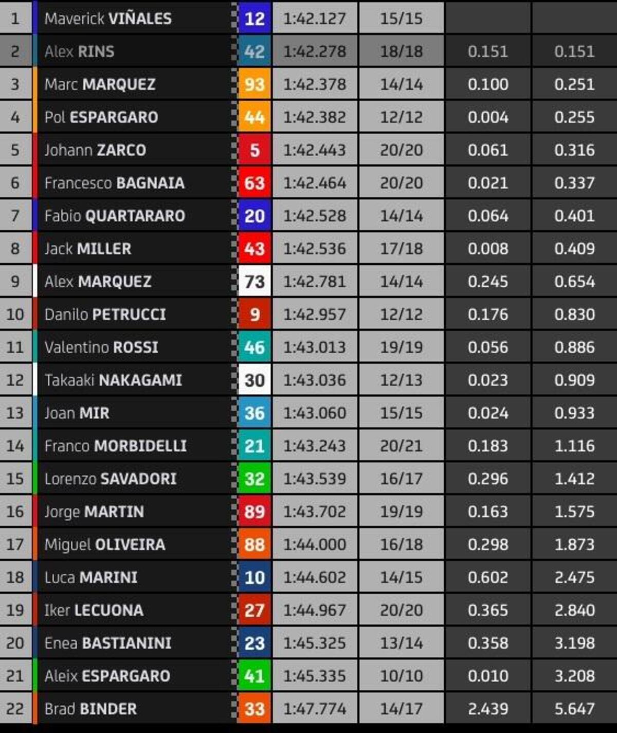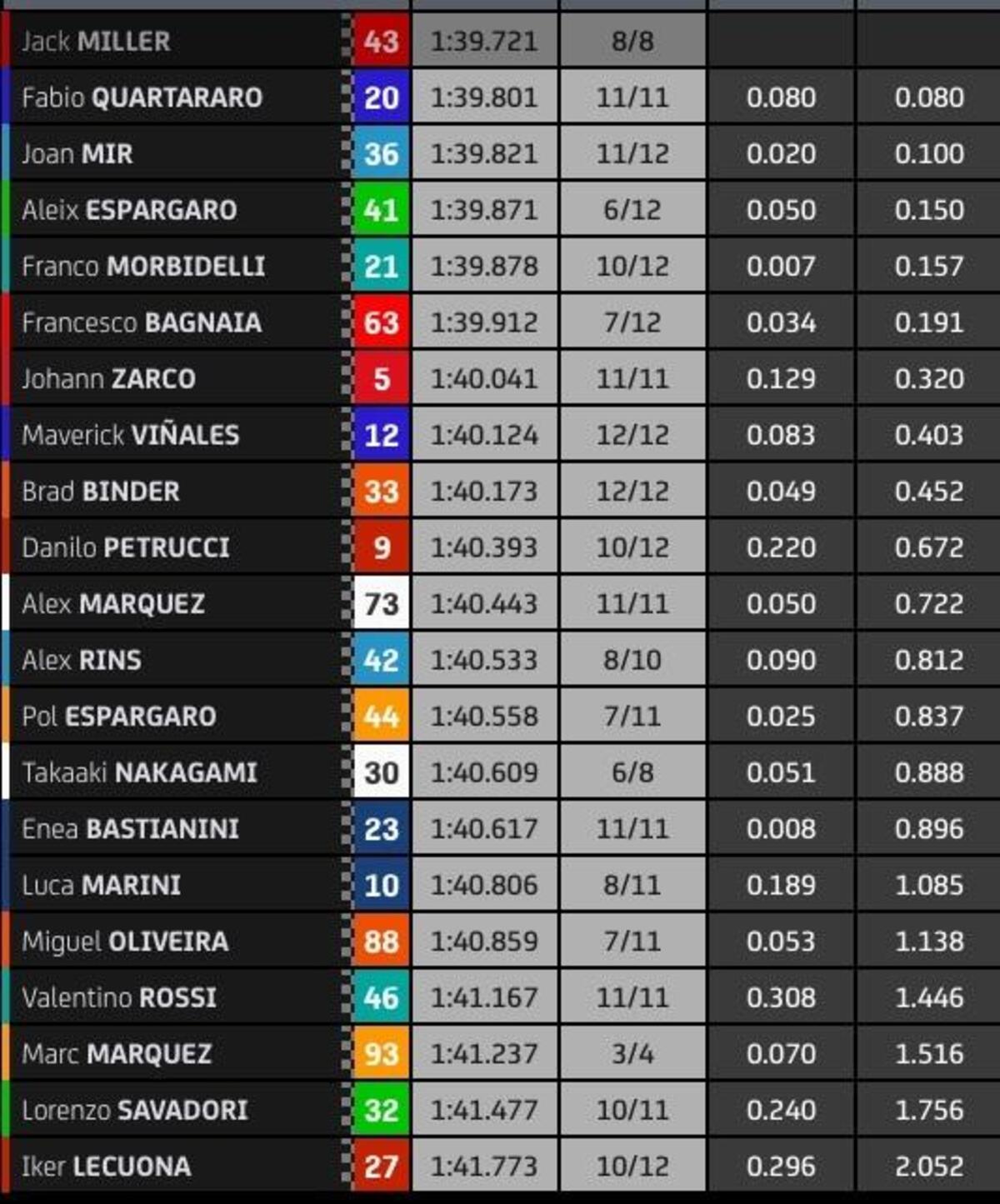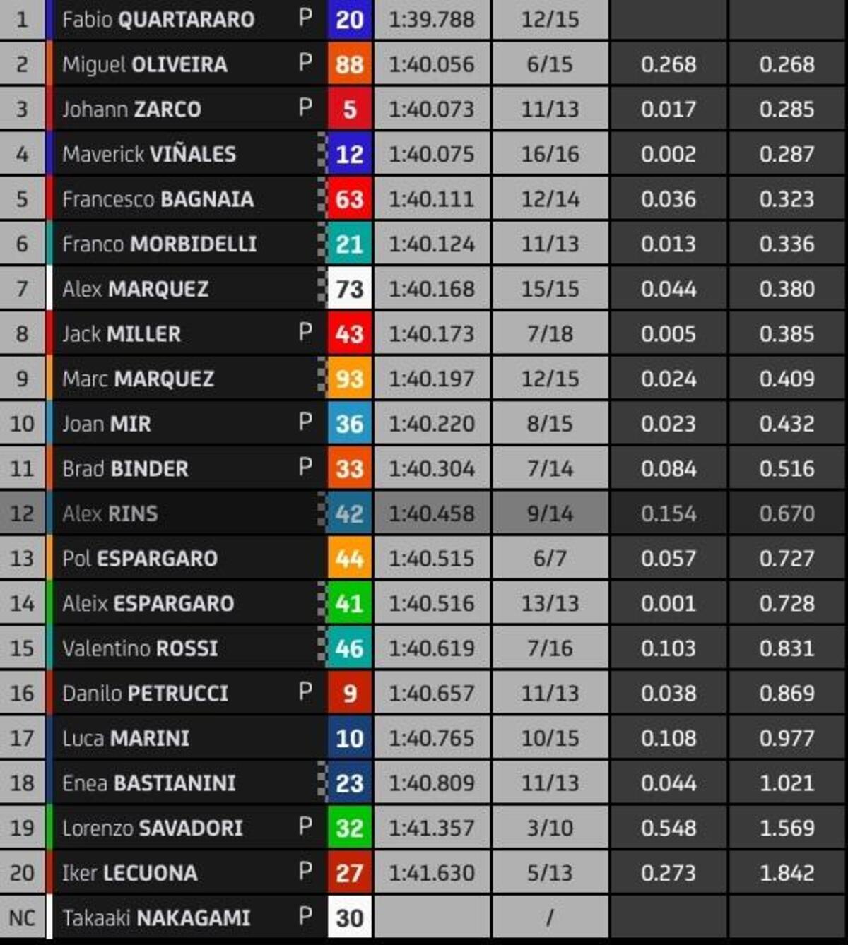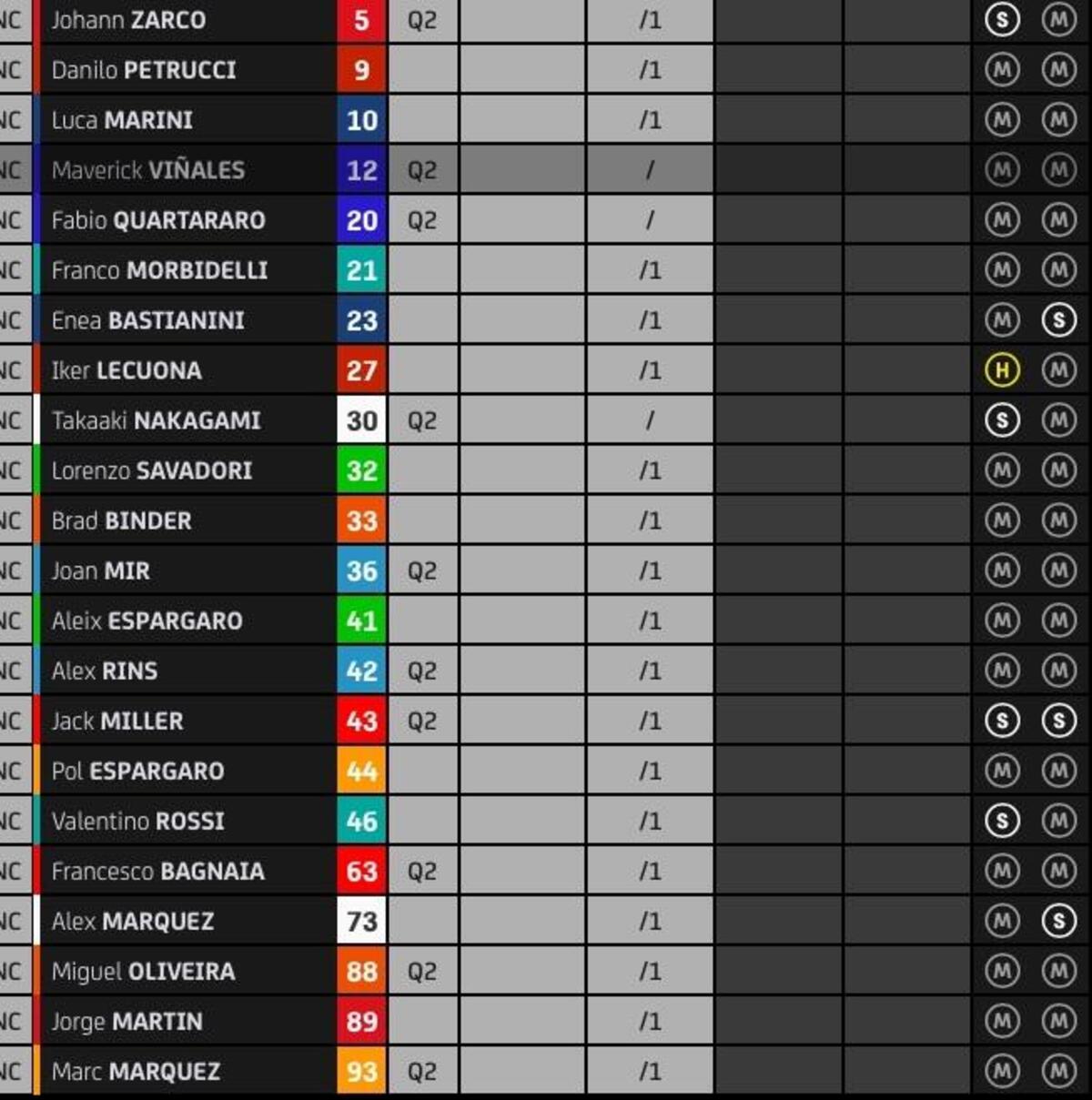 “T4? Rispetto a stamattina ho tolto due decimi nell’ultimo settore, lì la Yamaha è molto competitiva, noi lo siamo nel T2 e nel T3. Sto lavorando molto per avere un buon feeling anche nel T4, solo Quartararo ha fatto un po’ meglio alla fine, anche Zarco è più veloce di me in quel settore, questo mi permette di studiare i suoi dati. Quest’anno guido più rilassato e posso conservare le gomme, spingere al 100% nel time attack.