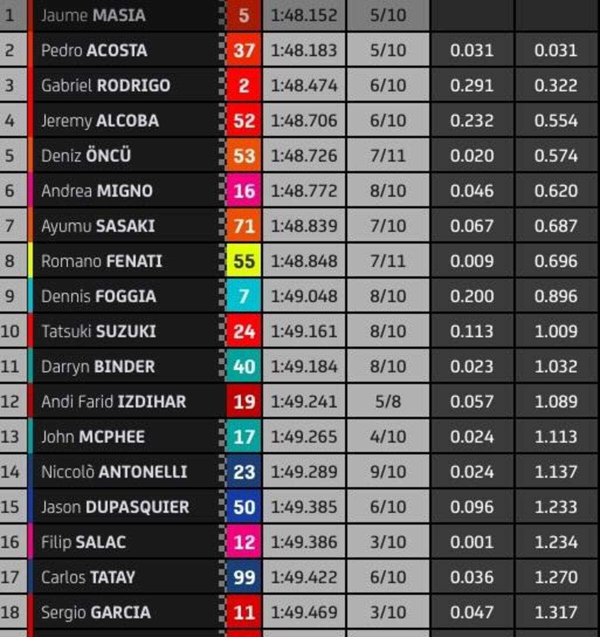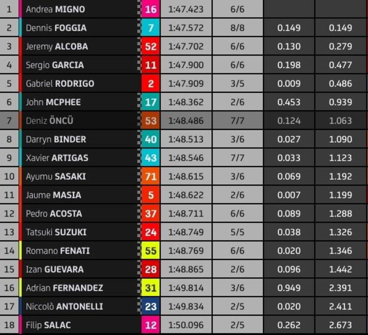“Essere così veloce oggi mi rendo molto felice, il lavoro fatto durante l’inverno mi sta aiutando molto, voglio riuscire a essere costante in questo stagione, come richiede un team ufficiale. Se il massimo è fare quarto bisognerà essere quarto, se si può vincere bisogna vincere”.