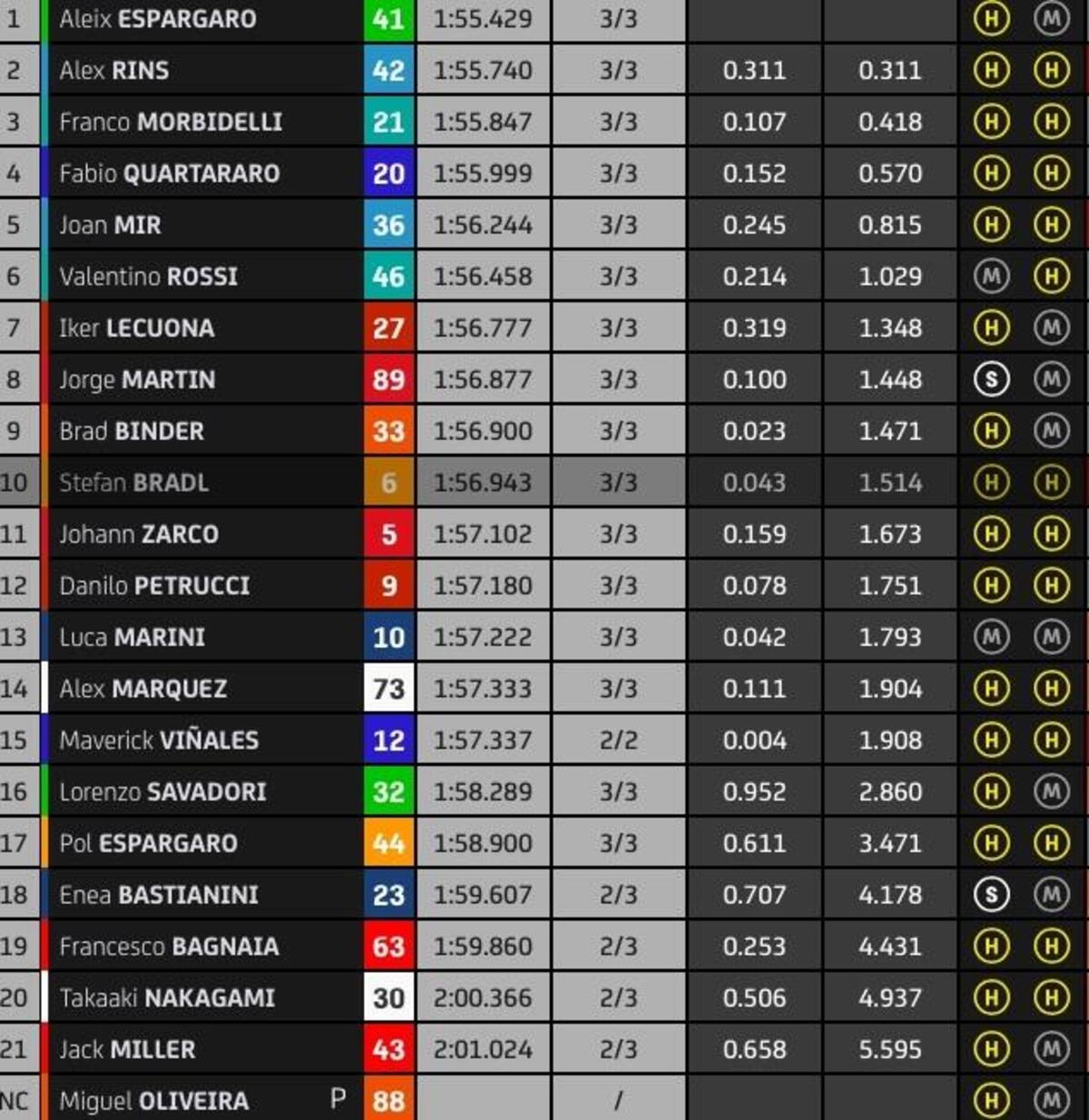 “Ho parlato con Quartararo dopo la gara, lui ha avuto problemi simili ai miei e anche Fabio guida differente da Vinales. Ma Fabio è stato più forte di me, alla fine è stato quinto, io ho iniziato ad avere problemi molto presto, dopo 6-7 giri.