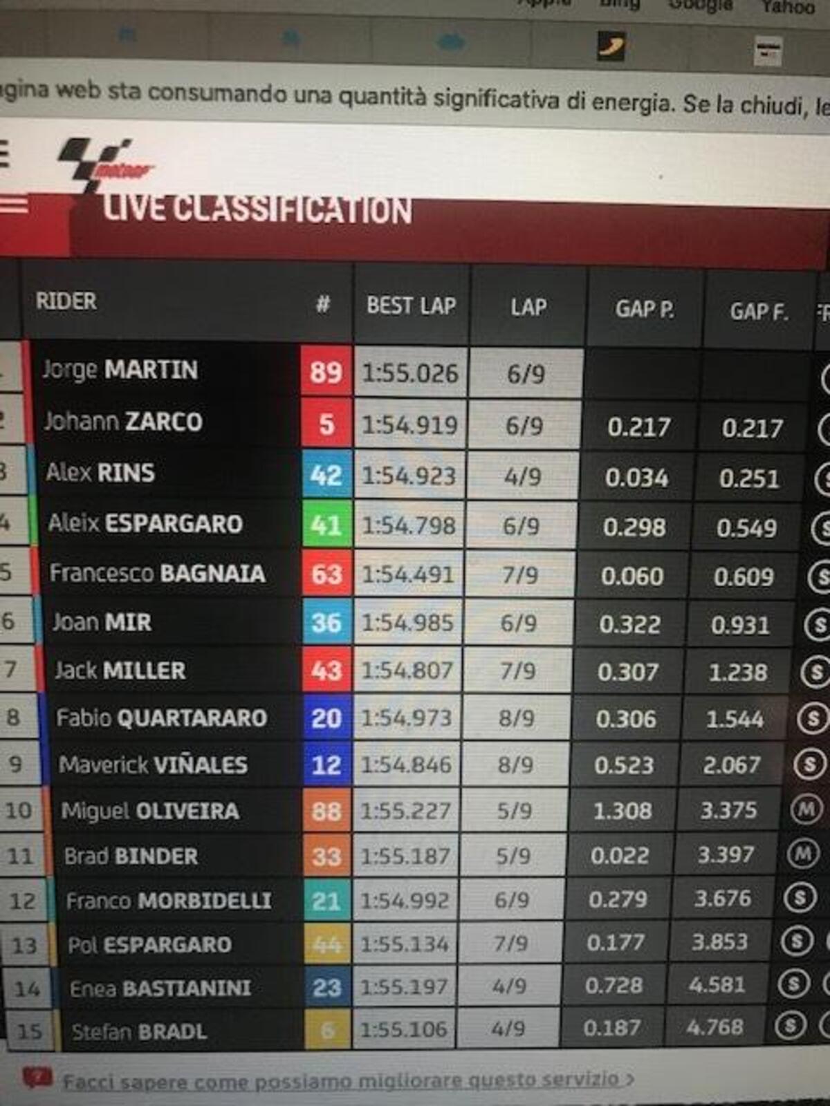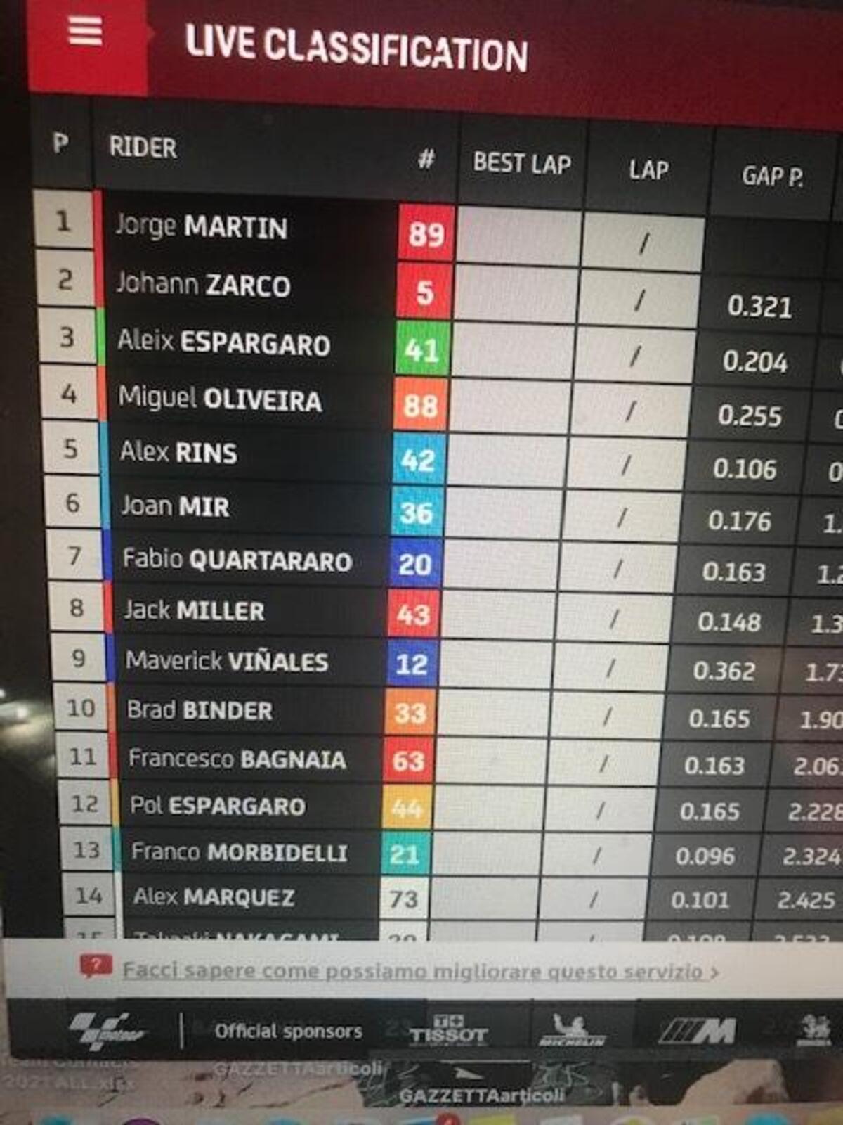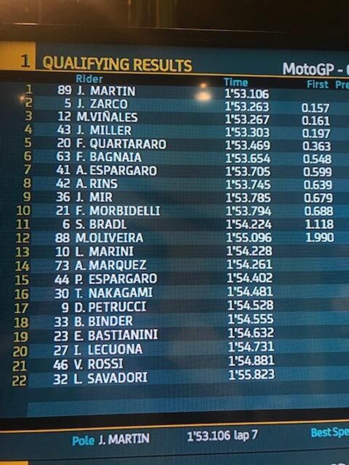 “Io e Morbidelli ci siamo parlati, ma non ce l’abbiamo fatta a farci coraggio, ci aspettavamo molto di più dalla gara. Ognuno di noi lavorerà per essere più competitivo.
