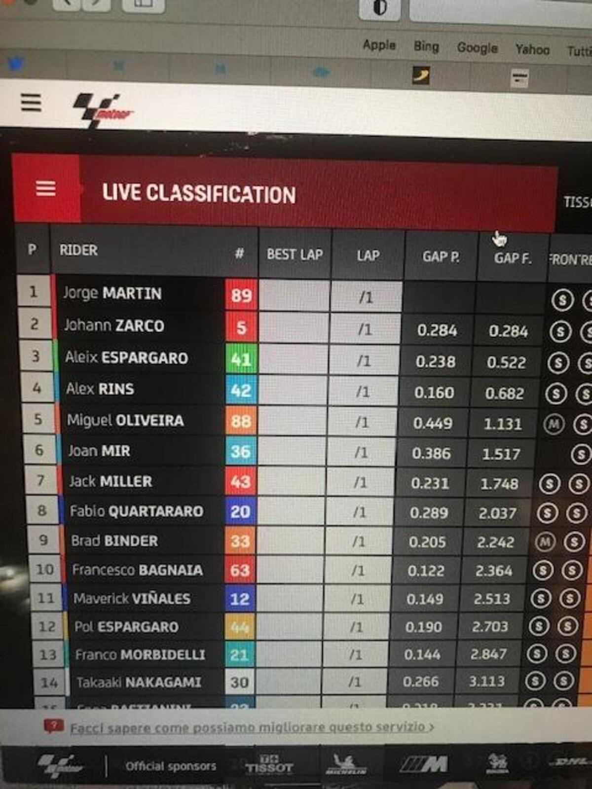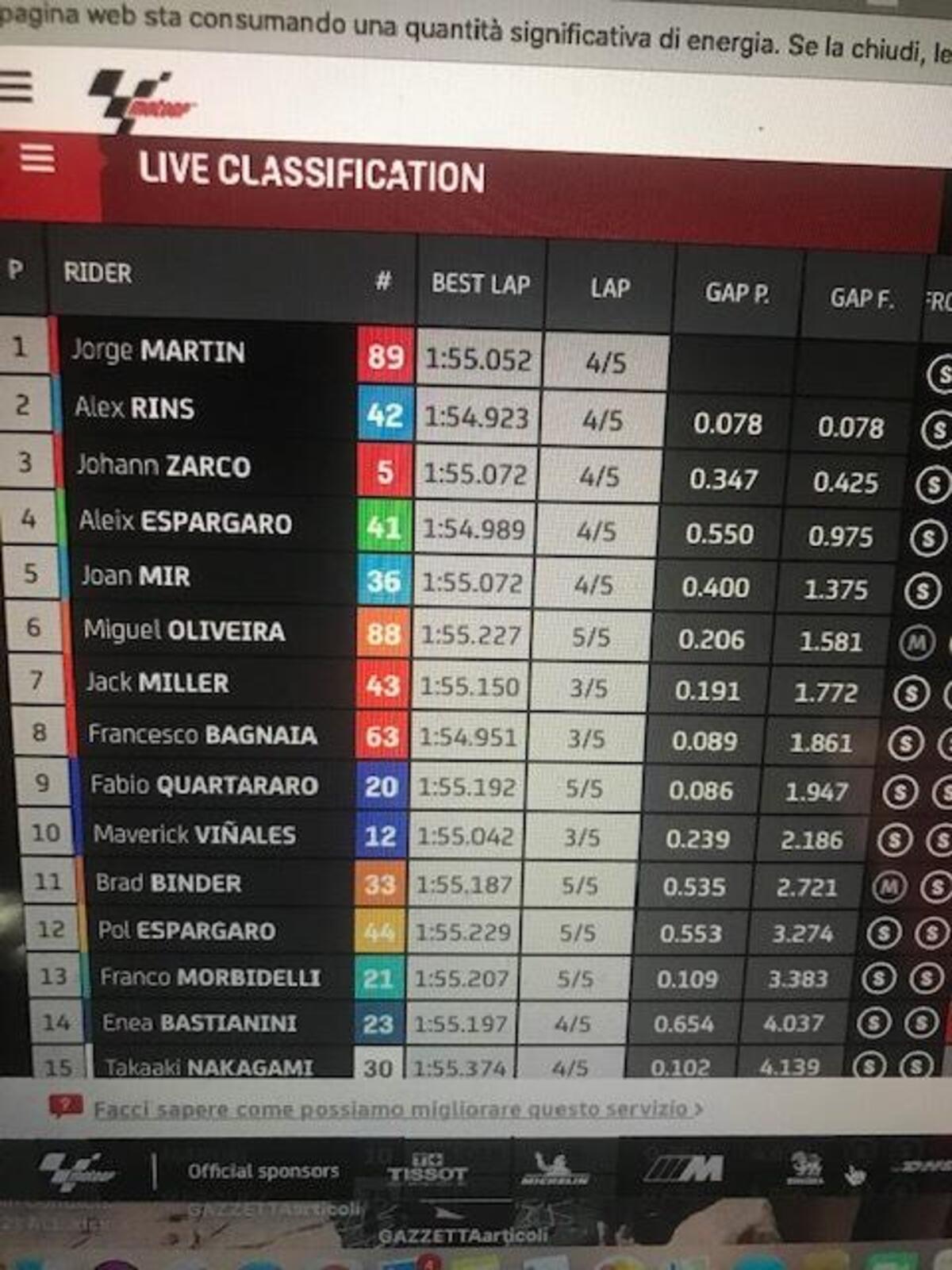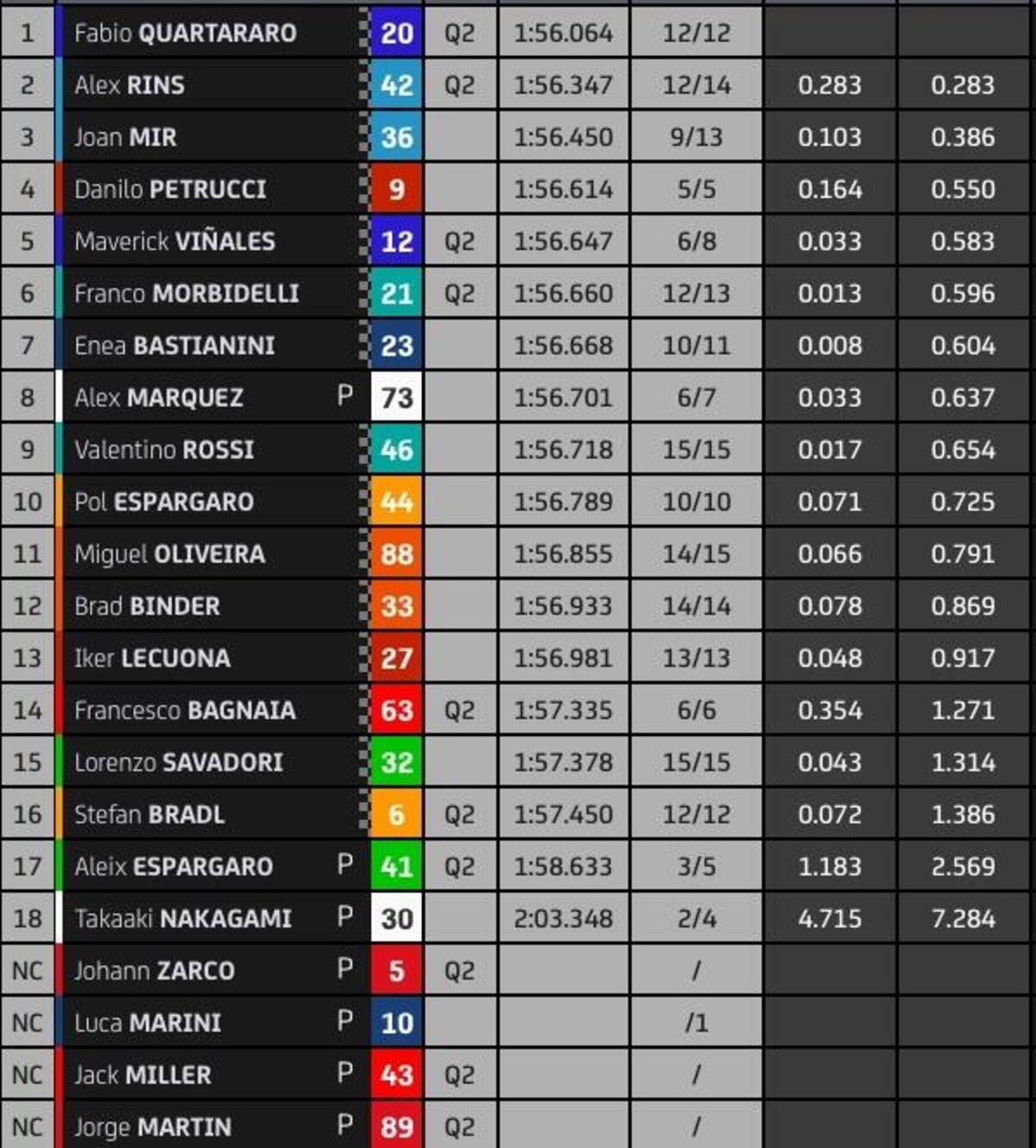 “Io e Morbidelli ci siamo parlati, ma non ce l’abbiamo fatta a farci coraggio, ci aspettavamo molto di più dalla gara. Ognuno di noi lavorerà per essere più competitivo.