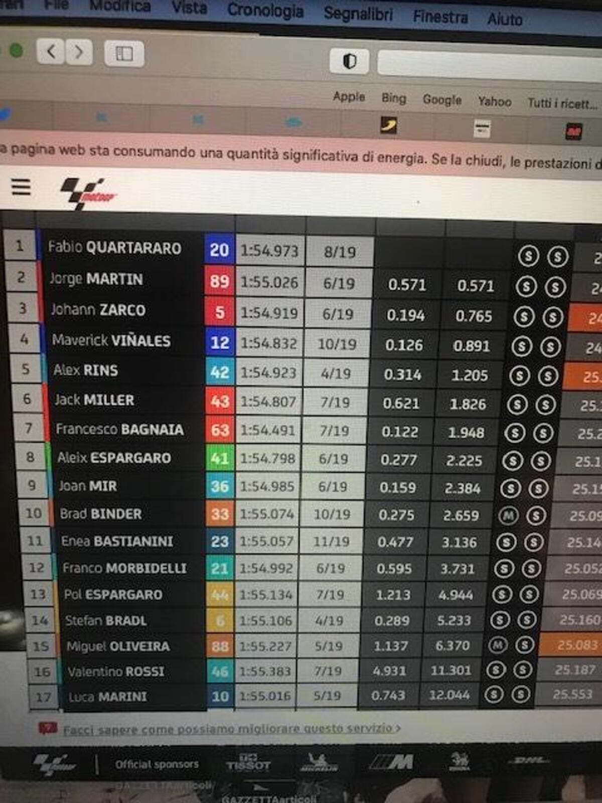 “Yamaha 2021? Abbiamo fatto dei piccoli miglioramenti, il telaio nuovo curva un po’ meglio, ma vedremo il reale potenziale solo nelle piste più strette, qui in qatar ci sono tutte curve a medio e largo raggio. Abbiamo recuperato qualche chilometro in rettilineo, mala differenza con le ducati rimane grande., Ma ma molto del 2021 è un po’ meglio.