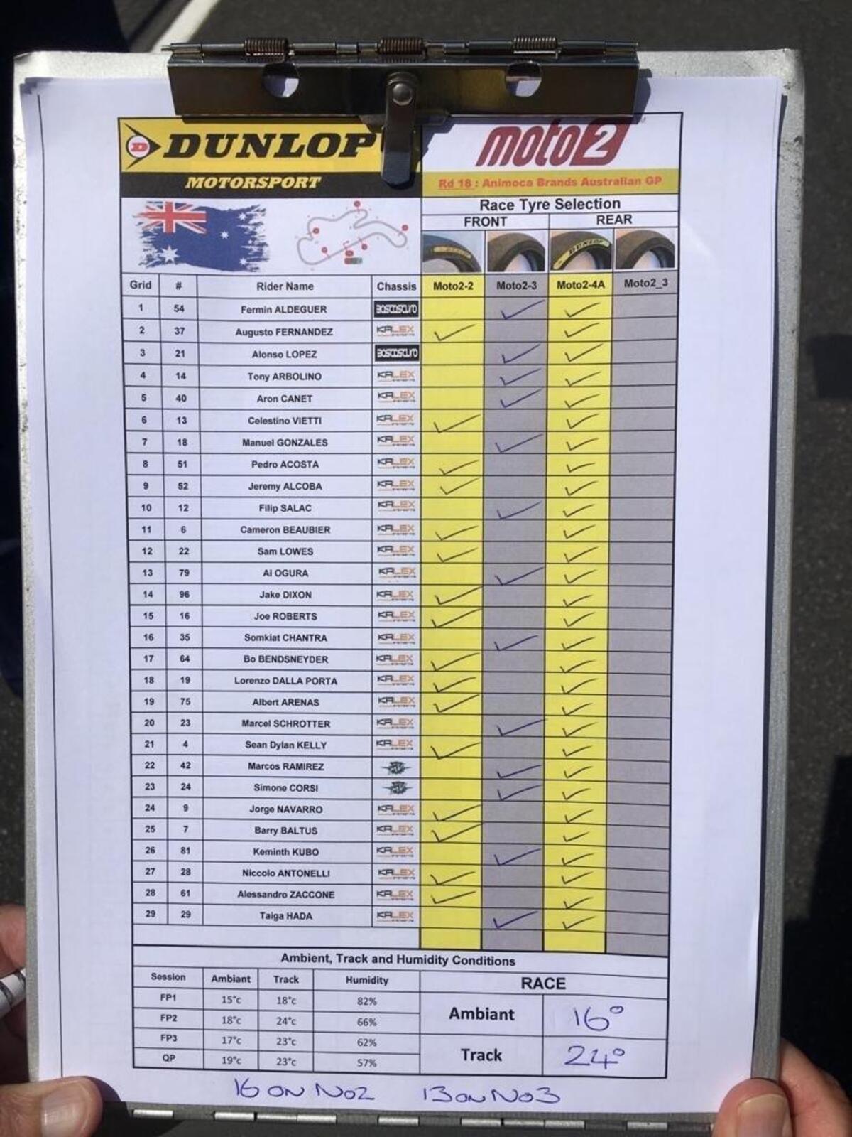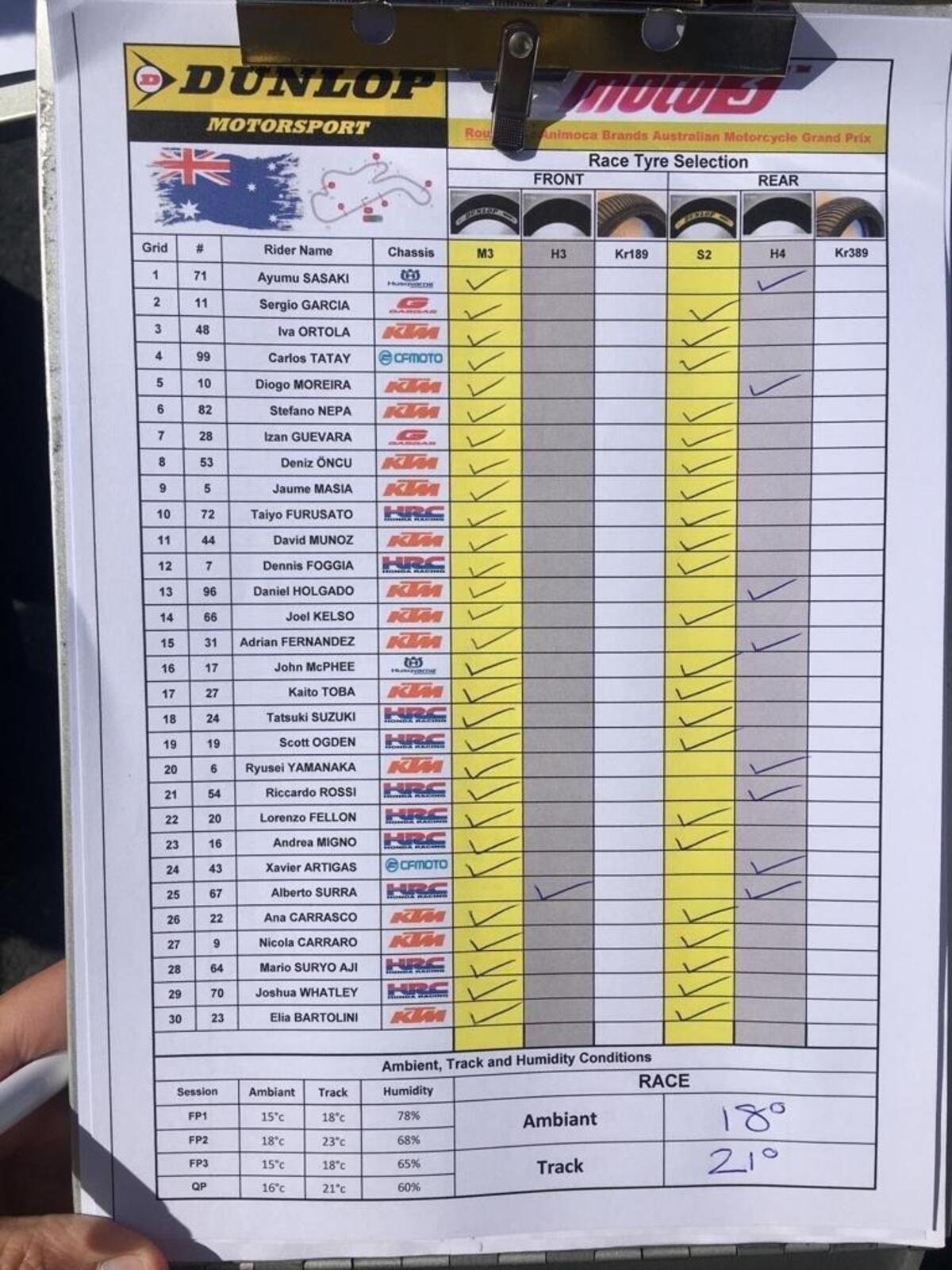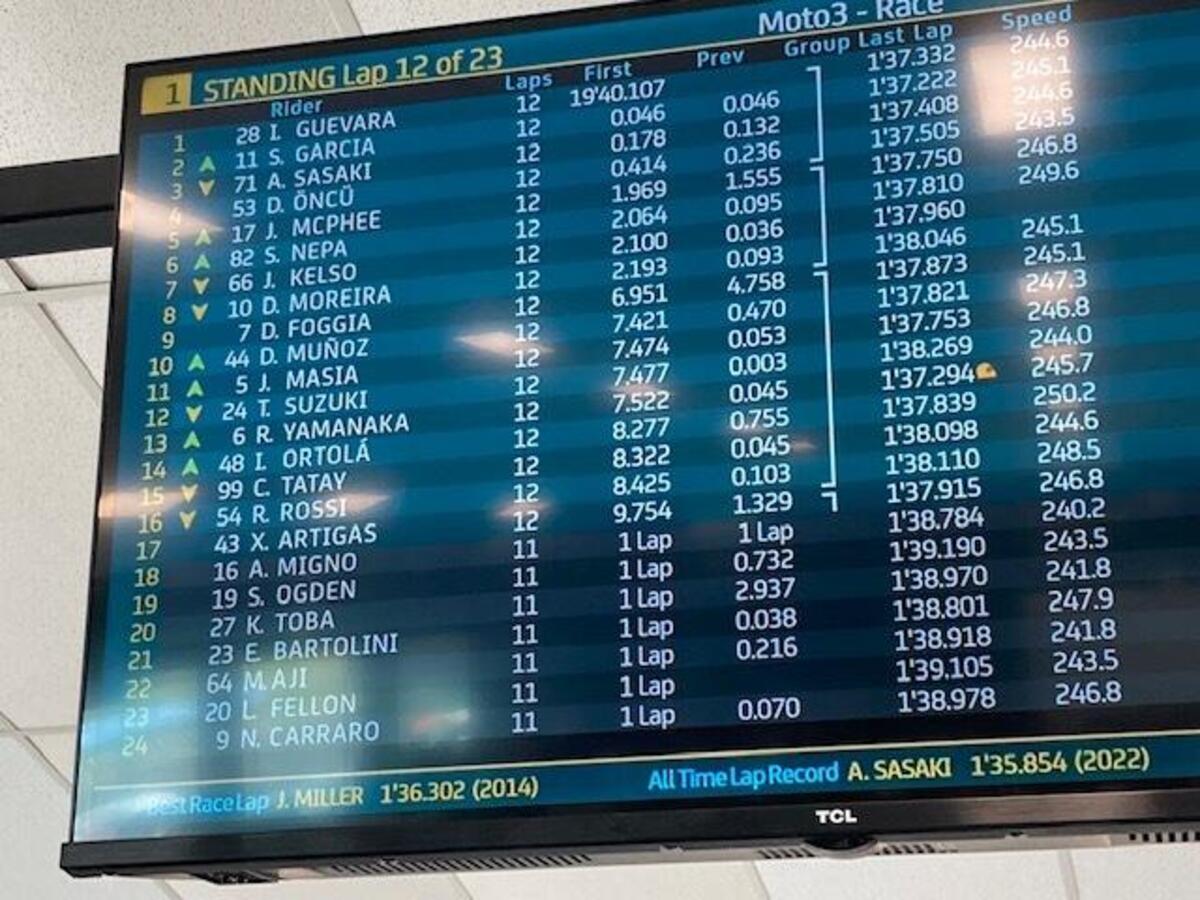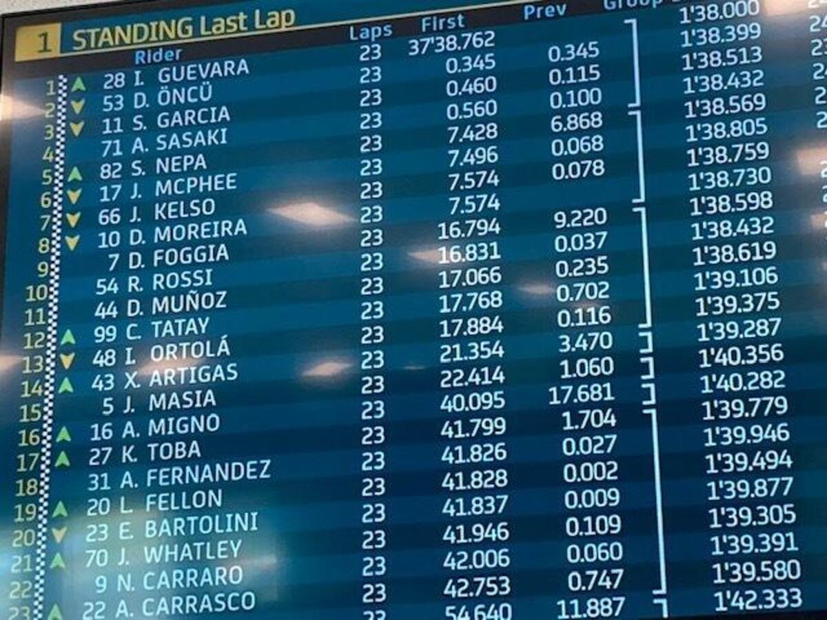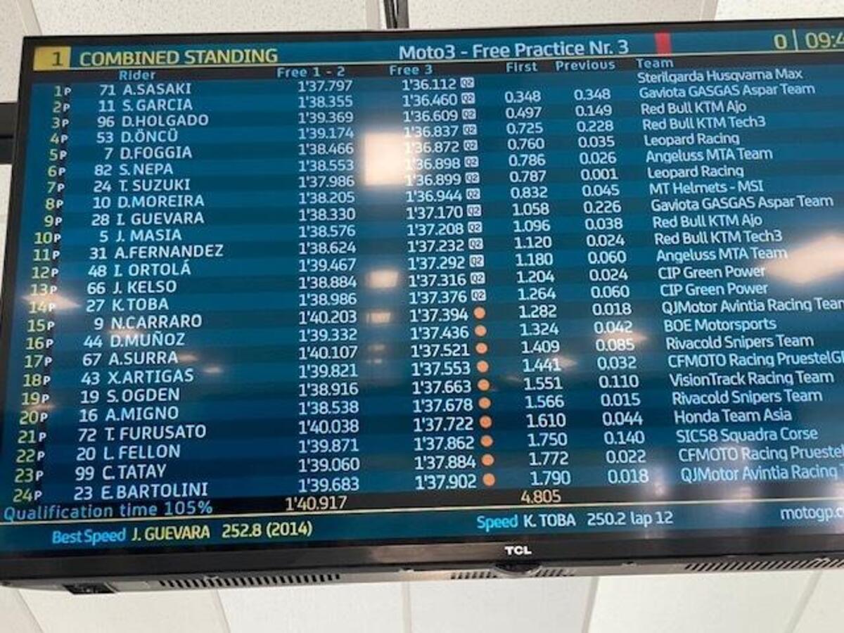 Johann Zarco si conferma il più veloce , davanti a Marco Bezzecchi e Pol Espargaro, racchiusi in 0”052. Fabio Quartararo quarto, Aleix Espargaro settimo, Francesco Bagnaia ottavo, Enea Bastianini nono e jack Miller 13esimo. Atri italiani: 17esimo Fabio Di Giannantonio, 19esimo Franco Morbidelli, 20esimo Luca Marini, in una sessione asciutta nella quale tutti i piloti, nessuno escluso, ha fatto almeno un “attacco al tempo”.