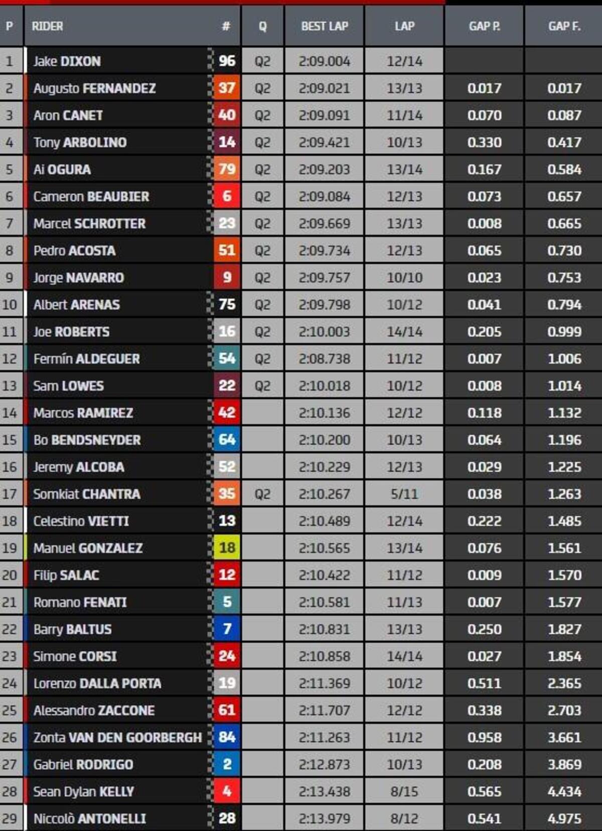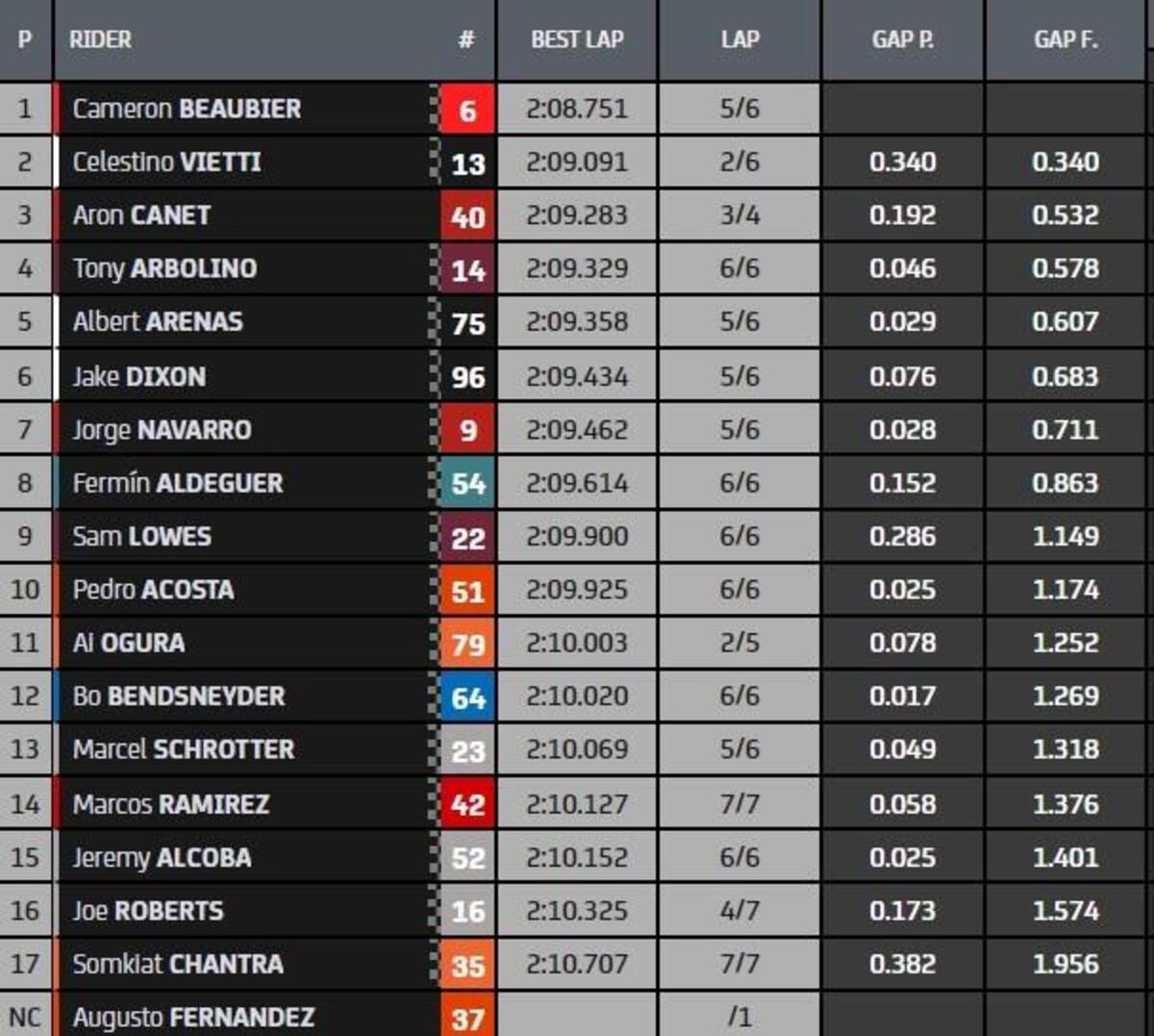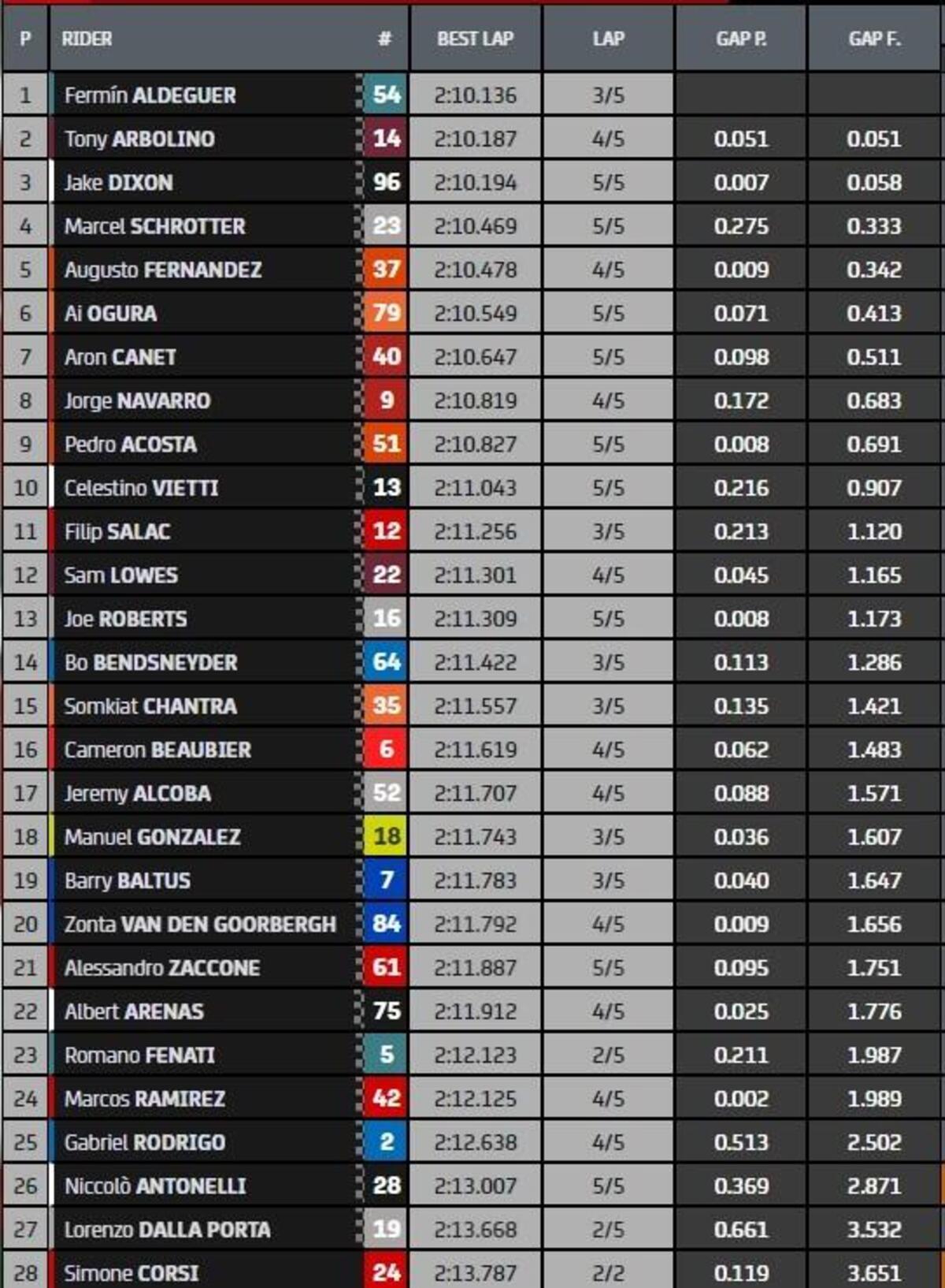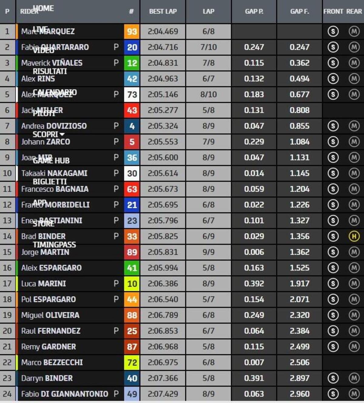 “Soffro un po’ di chattering e quando metti la gomma soffice nuova ovviamente aumenta e diventa difficile guidare la moto. Oggi non sono stato abbastanza veloce, domani dobbiamo migliorare. Rispetto all’anno scorso qui ci sono tante differenze: moto, dentro al box, asfalto. Insomma, quest’anno è molto meglio, ho potuto girare con un passo più veloce dell’anno scorso senza fare errori. Questa pista, però, non si adatta così bene al mio stile di guida, faccio fatica a fermare bene la moto alla prima curva, io qui non sono così efficace come in altri tracciati. Credo che se domenica sarà possibile lottare per i primi sei, sarebbe un segnale molto positivo. Sono molto concentrato per cercare di capire dove e come posso migliorare, anche con Matteo Baiocco, stiamo analizzando tutti i video, i dati, anche quelli di Vinales che qui è sempre molto veloce. Sto facendo il massimo per essere competitivo.