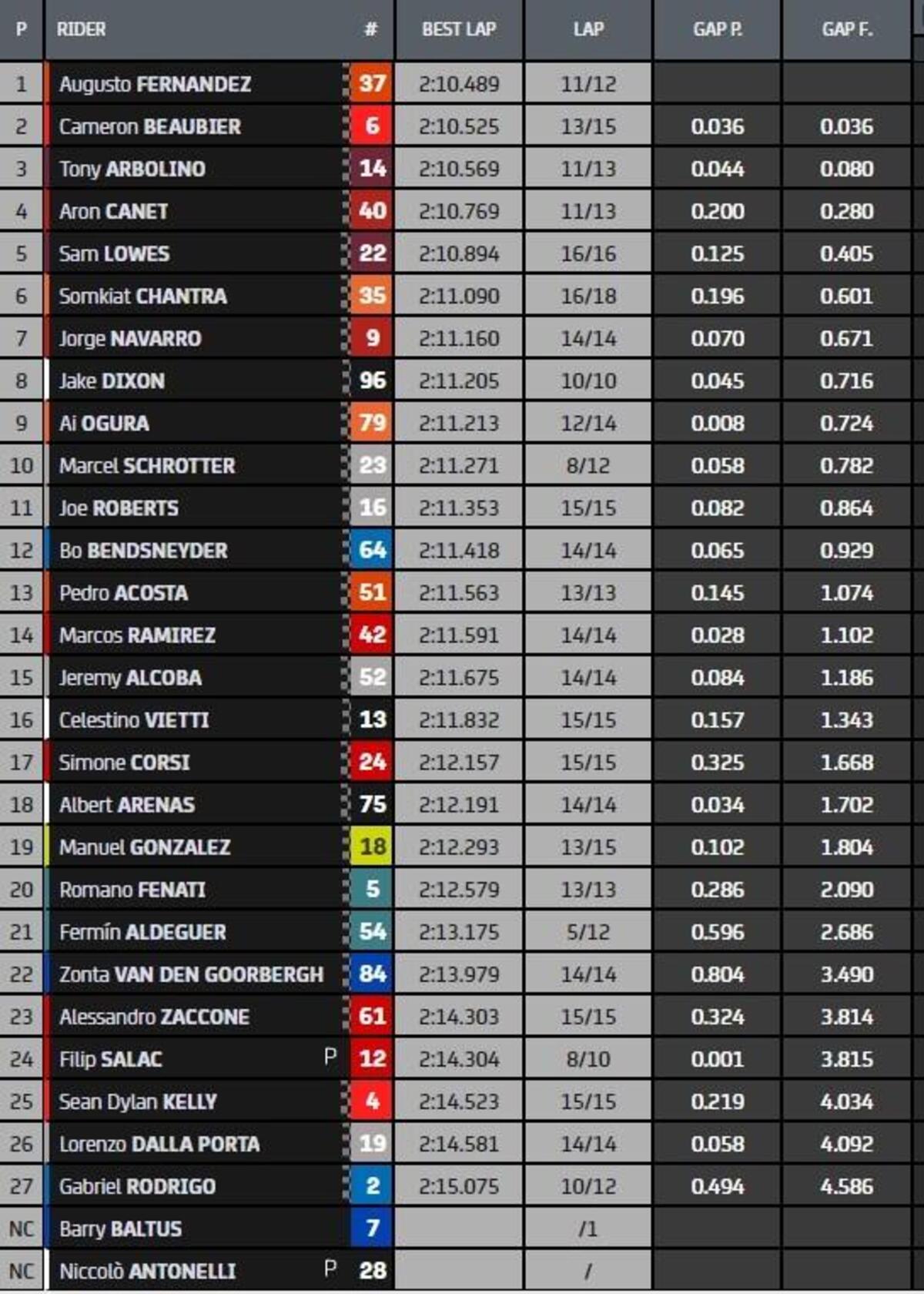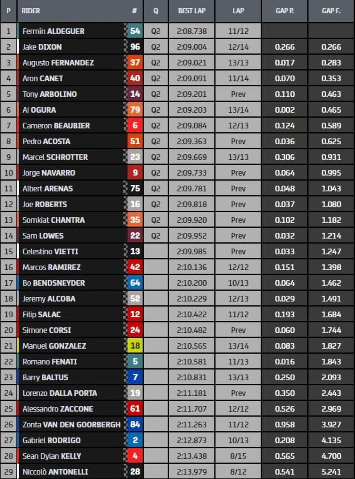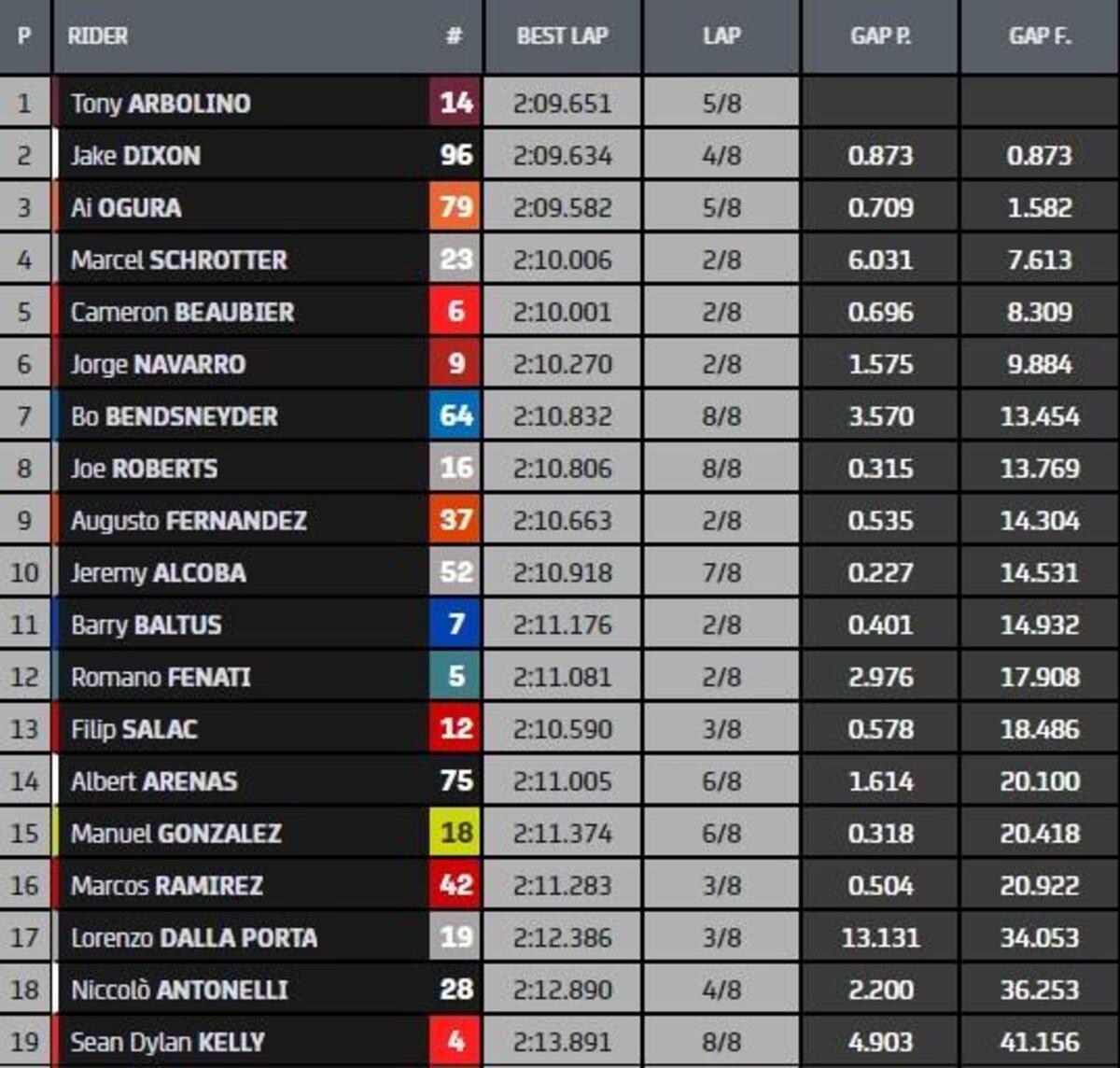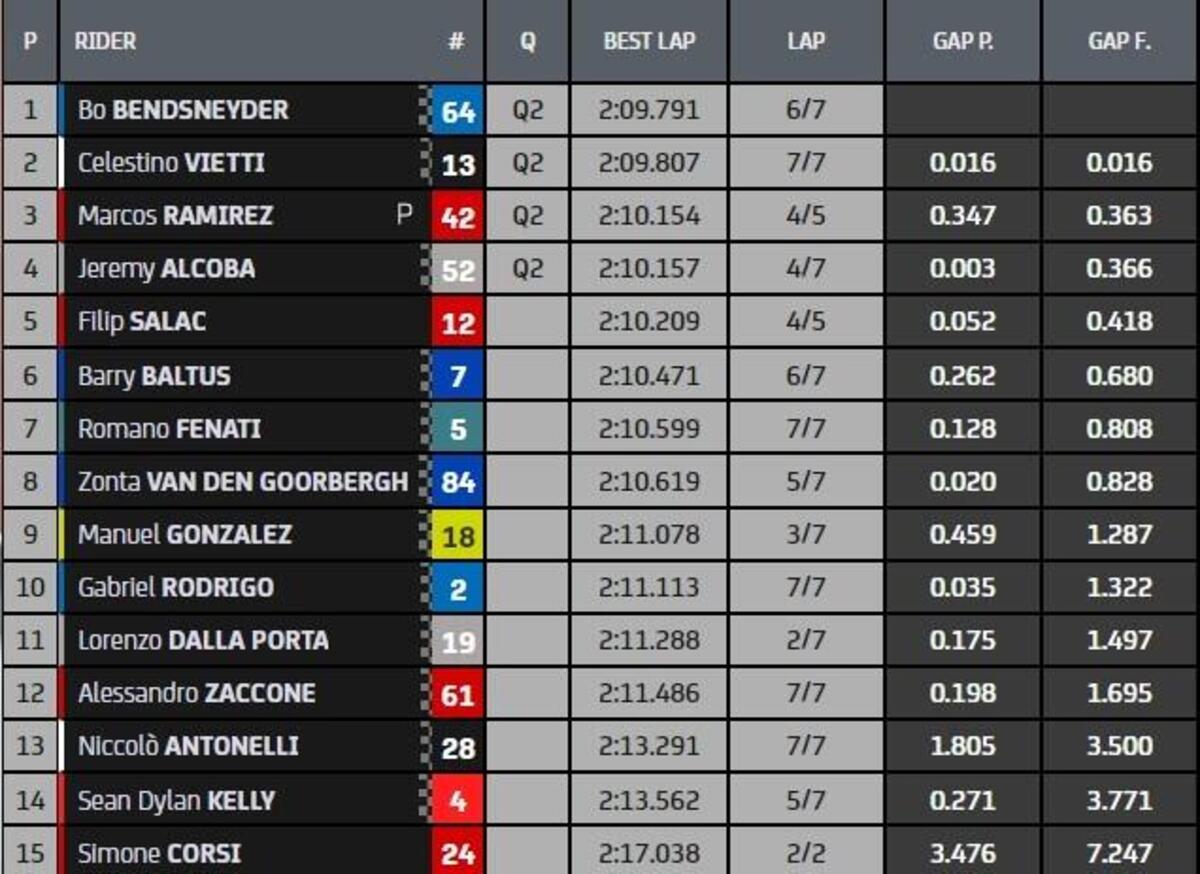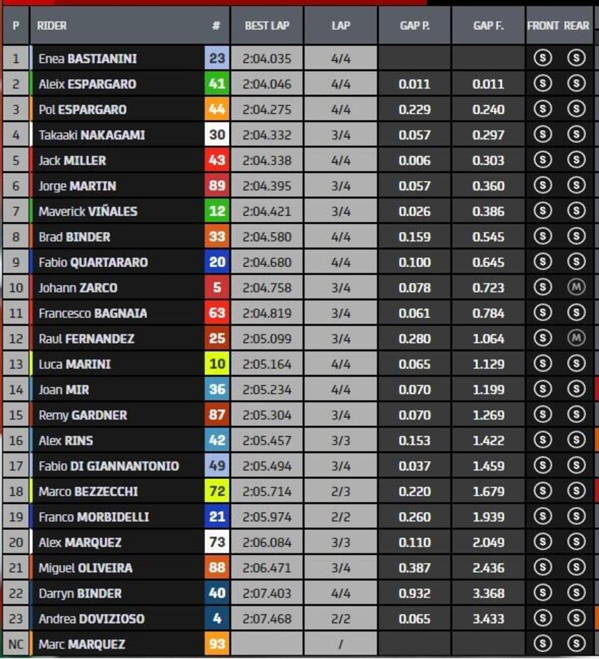 “Soffro un po’ di chattering e quando metti la gomma soffice nuova ovviamente aumenta e diventa difficile guidare la moto. Oggi non sono stato abbastanza veloce, domani dobbiamo migliorare. Rispetto all’anno scorso qui ci sono tante differenze: moto, dentro al box, asfalto. Insomma, quest’anno è molto meglio, ho potuto girare con un passo più veloce dell’anno scorso senza fare errori. Questa pista, però, non si adatta così bene al mio stile di guida, faccio fatica a fermare bene la moto alla prima curva, io qui non sono così efficace come in altri tracciati. Credo che se domenica sarà possibile lottare per i primi sei, sarebbe un segnale molto positivo. Sono molto concentrato per cercare di capire dove e come posso migliorare, anche con Matteo Baiocco, stiamo analizzando tutti i video, i dati, anche quelli di Vinales che qui è sempre molto veloce. Sto facendo il massimo per essere competitivo.