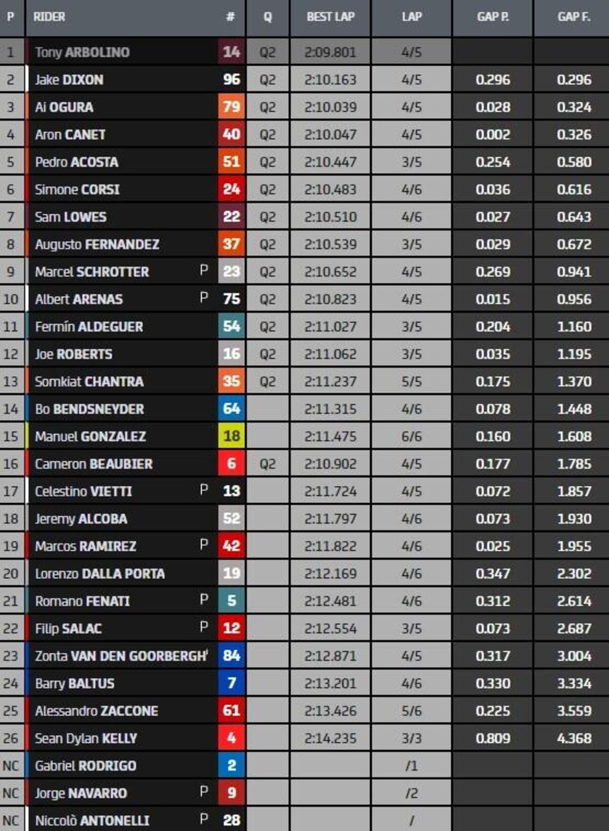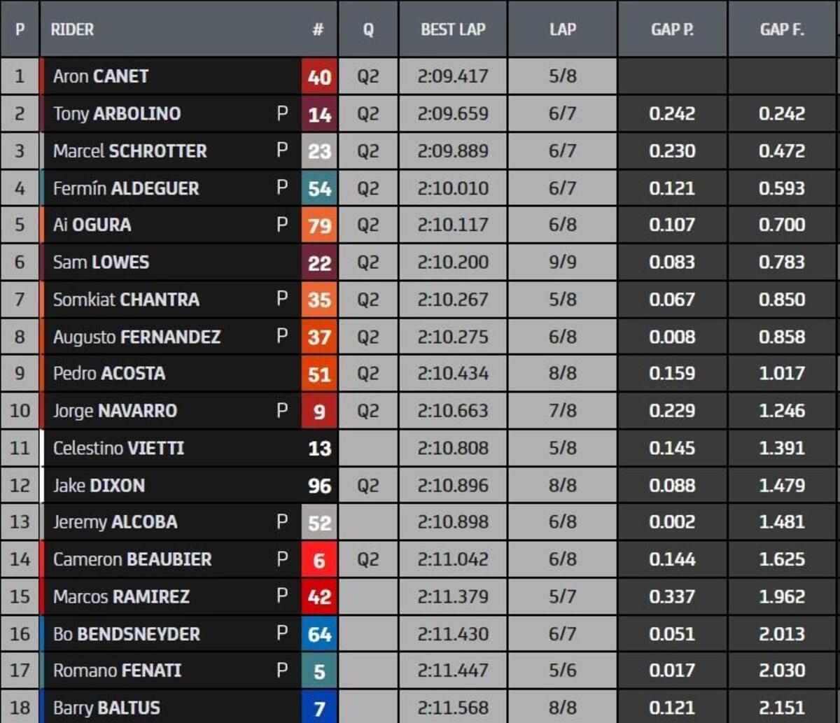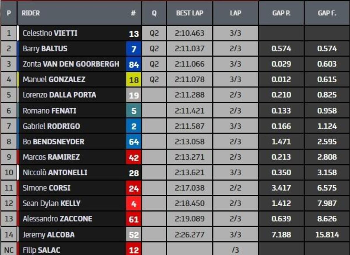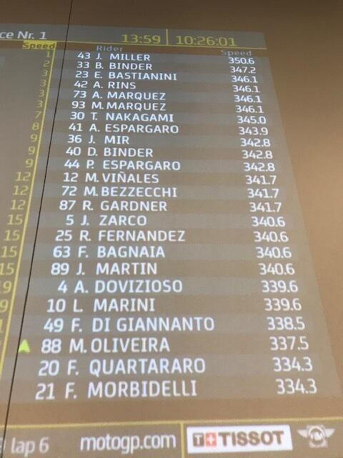 “Soffro un po’ di chattering e quando metti la gomma soffice nuova ovviamente aumenta e diventa difficile guidare la moto. Oggi non sono stato abbastanza veloce, domani dobbiamo migliorare. Rispetto all’anno scorso qui ci sono tante differenze: moto, dentro al box, asfalto. Insomma, quest’anno è molto meglio, ho potuto girare con un passo più veloce dell’anno scorso senza fare errori. Questa pista, però, non si adatta così bene al mio stile di guida, faccio fatica a fermare bene la moto alla prima curva, io qui non sono così efficace come in altri tracciati. Credo che se domenica sarà possibile lottare per i primi sei, sarebbe un segnale molto positivo. Sono molto concentrato per cercare di capire dove e come posso migliorare, anche con Matteo Baiocco, stiamo analizzando tutti i video, i dati, anche quelli di Vinales che qui è sempre molto veloce. Sto facendo il massimo per essere competitivo.