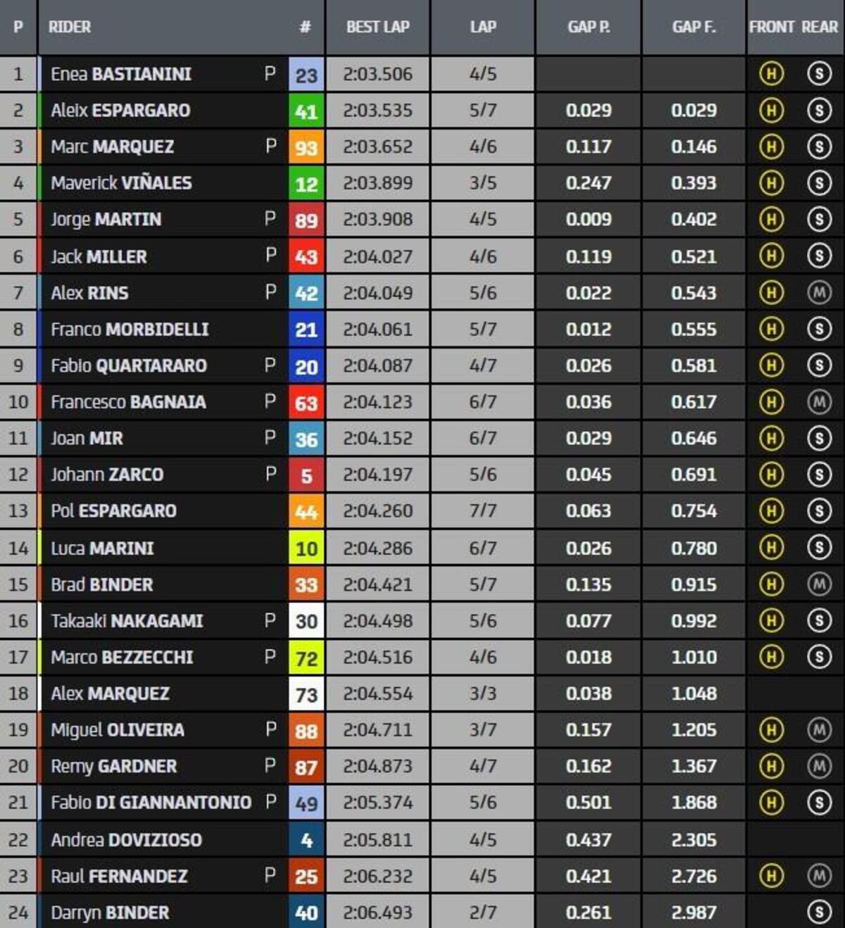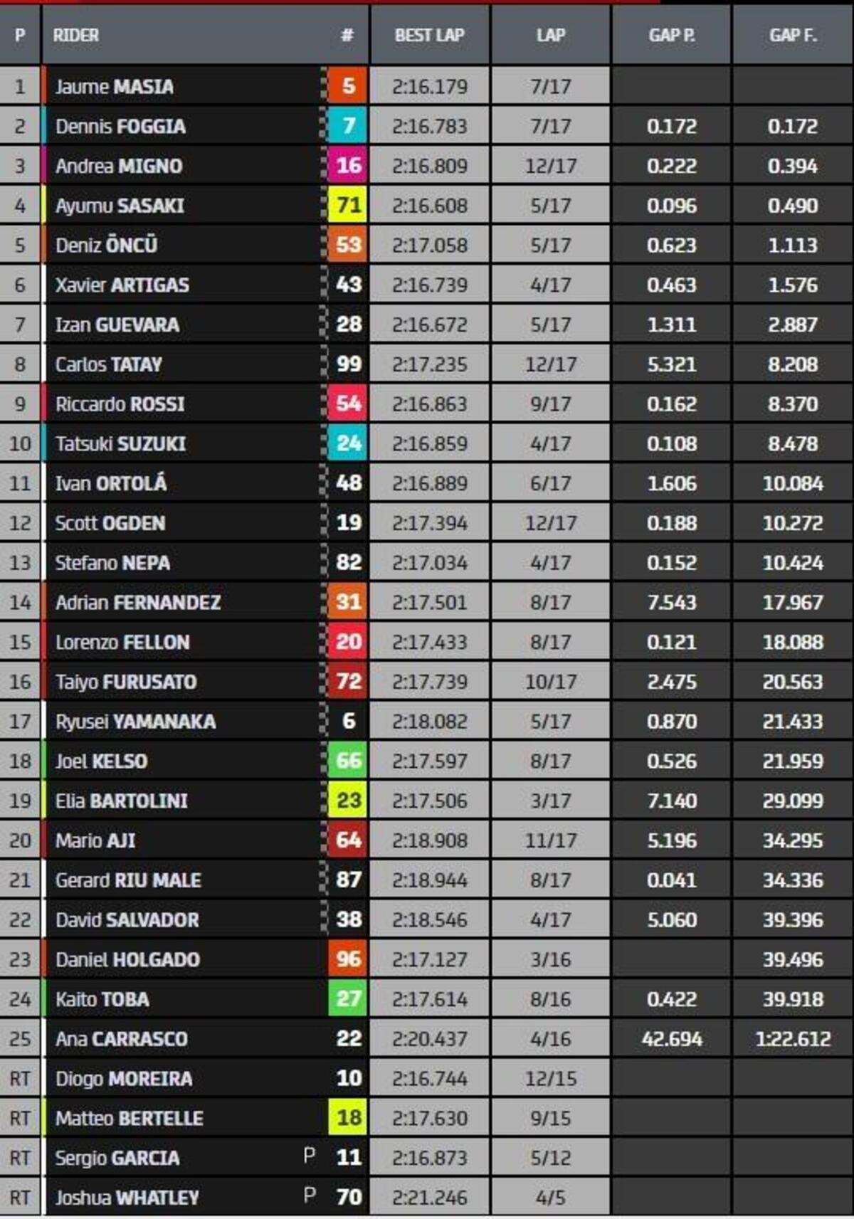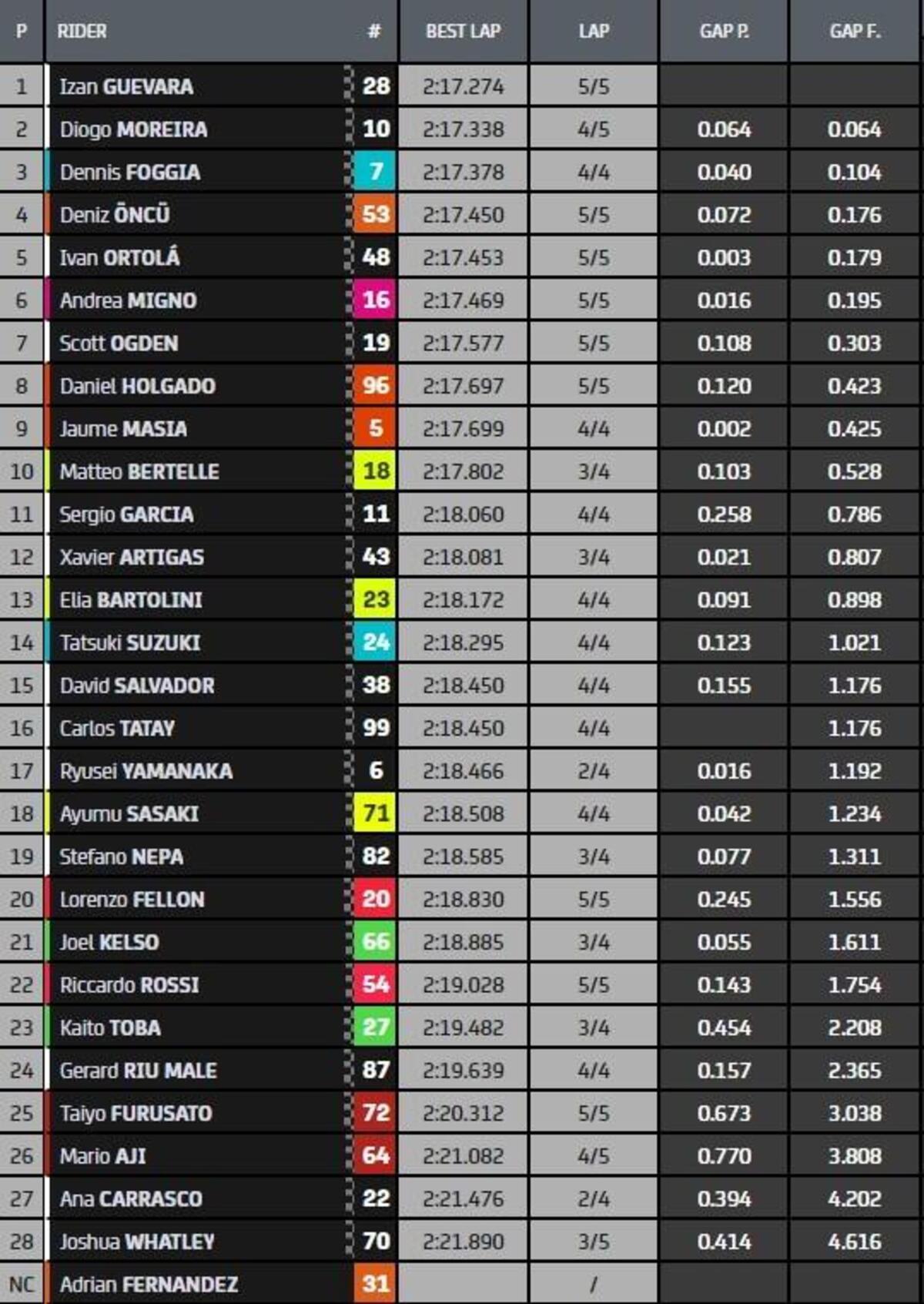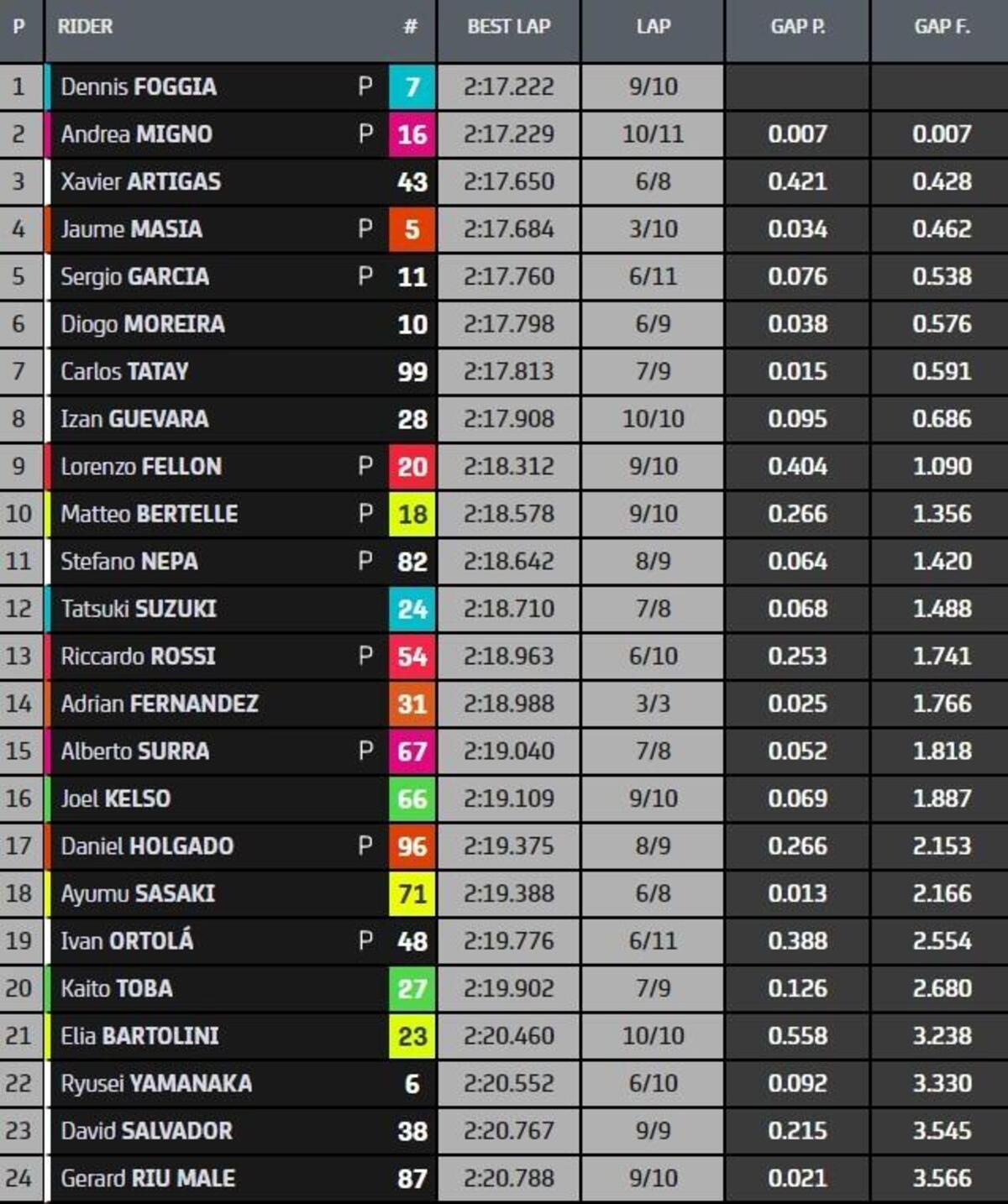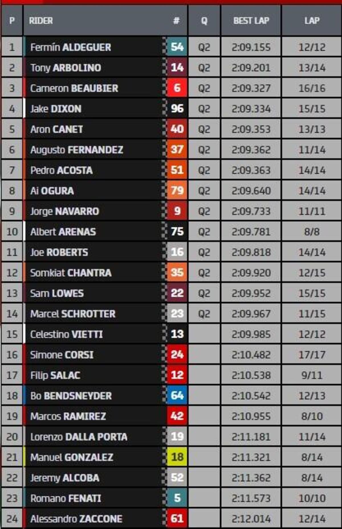 “Soffro un po’ di chattering e quando metti la gomma soffice nuova ovviamente aumenta e diventa difficile guidare la moto. Oggi non sono stato abbastanza veloce, domani dobbiamo migliorare. Rispetto all’anno scorso qui ci sono tante differenze: moto, dentro al box, asfalto. Insomma, quest’anno è molto meglio, ho potuto girare con un passo più veloce dell’anno scorso senza fare errori. Questa pista, però, non si adatta così bene al mio stile di guida, faccio fatica a fermare bene la moto alla prima curva, io qui non sono così efficace come in altri tracciati. Credo che se domenica sarà possibile lottare per i primi sei, sarebbe un segnale molto positivo. Sono molto concentrato per cercare di capire dove e come posso migliorare, anche con Matteo Baiocco, stiamo analizzando tutti i video, i dati, anche quelli di Vinales che qui è sempre molto veloce. Sto facendo il massimo per essere competitivo.