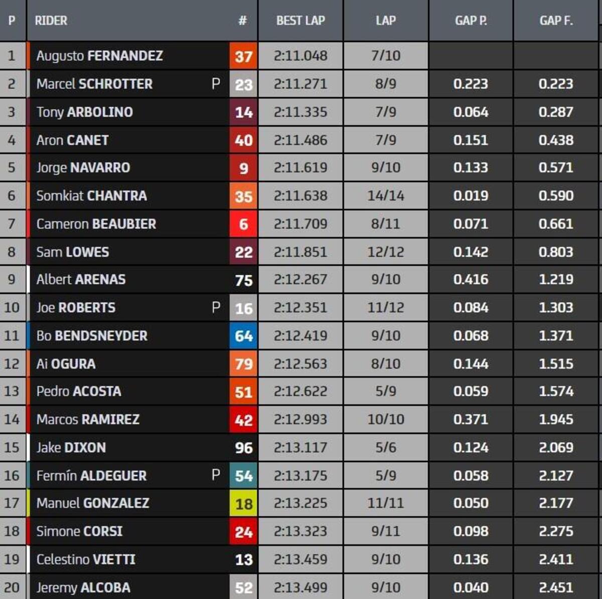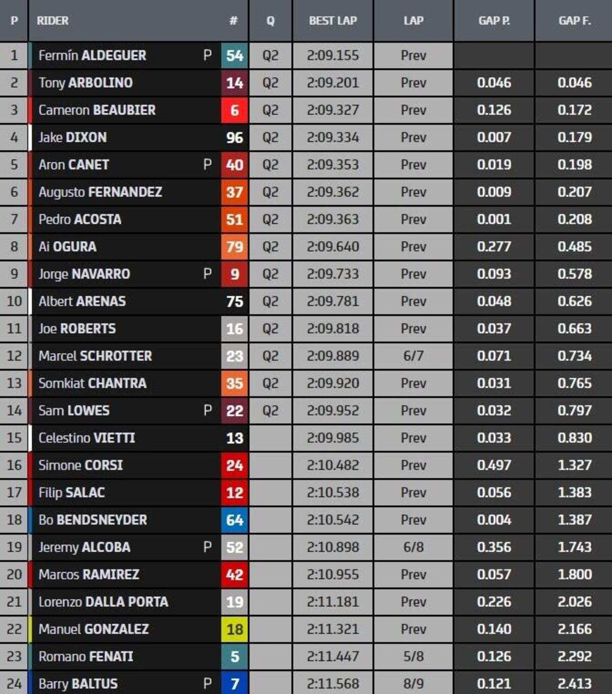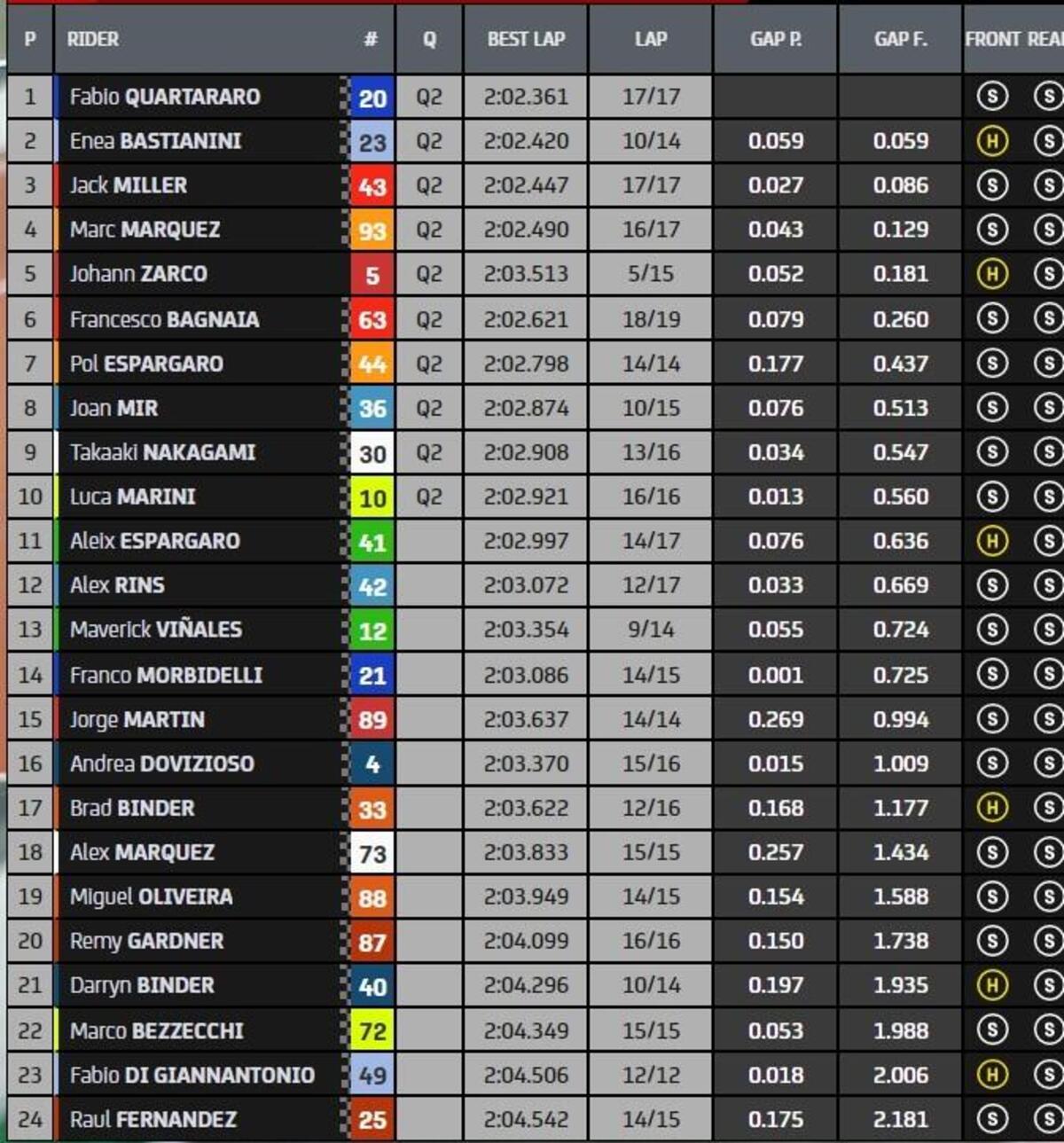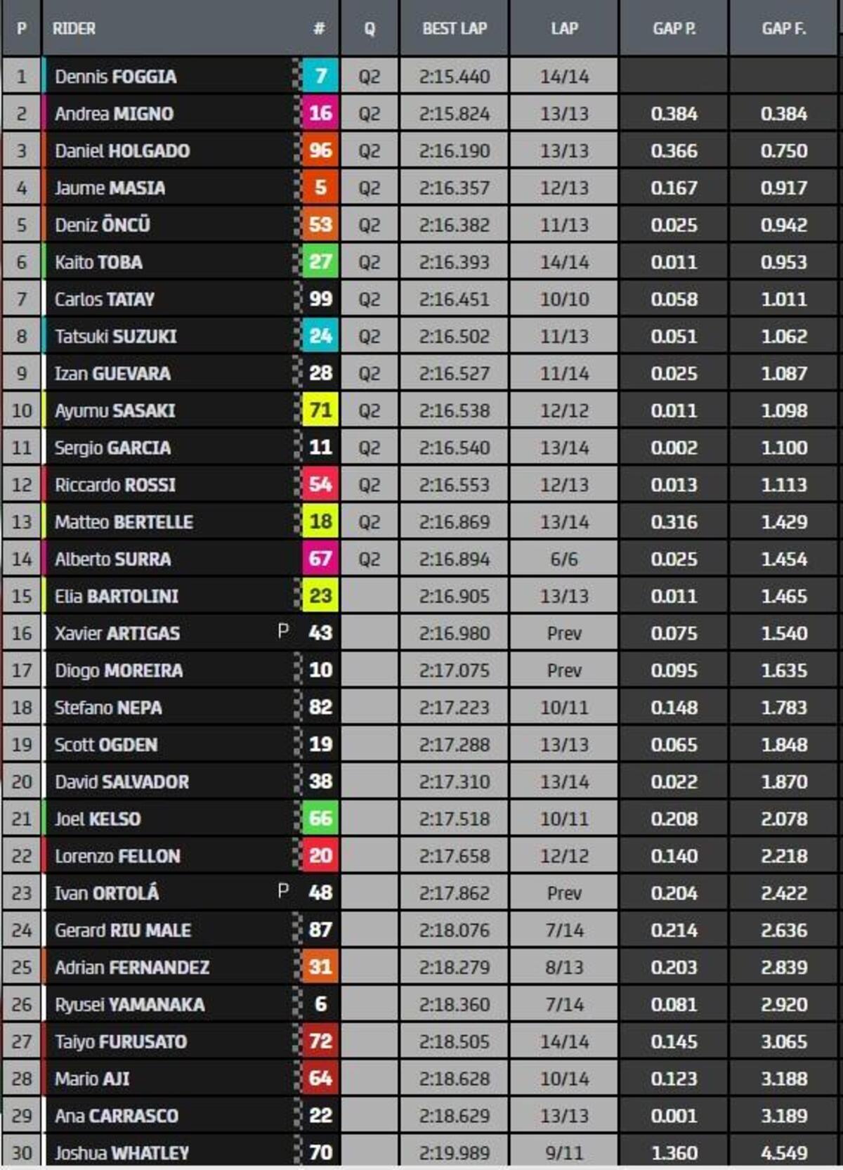 “Soffro un po’ di chattering e quando metti la gomma soffice nuova ovviamente aumenta e diventa difficile guidare la moto. Oggi non sono stato abbastanza veloce, domani dobbiamo migliorare. Rispetto all’anno scorso qui ci sono tante differenze: moto, dentro al box, asfalto. Insomma, quest’anno è molto meglio, ho potuto girare con un passo più veloce dell’anno scorso senza fare errori. Questa pista, però, non si adatta così bene al mio stile di guida, faccio fatica a fermare bene la moto alla prima curva, io qui non sono così efficace come in altri tracciati. Credo che se domenica sarà possibile lottare per i primi sei, sarebbe un segnale molto positivo. Sono molto concentrato per cercare di capire dove e come posso migliorare, anche con Matteo Baiocco, stiamo analizzando tutti i video, i dati, anche quelli di Vinales che qui è sempre molto veloce. Sto facendo il massimo per essere competitivo.