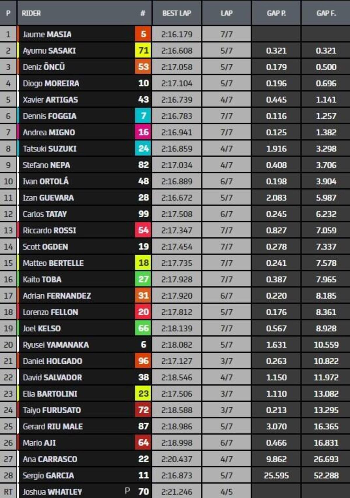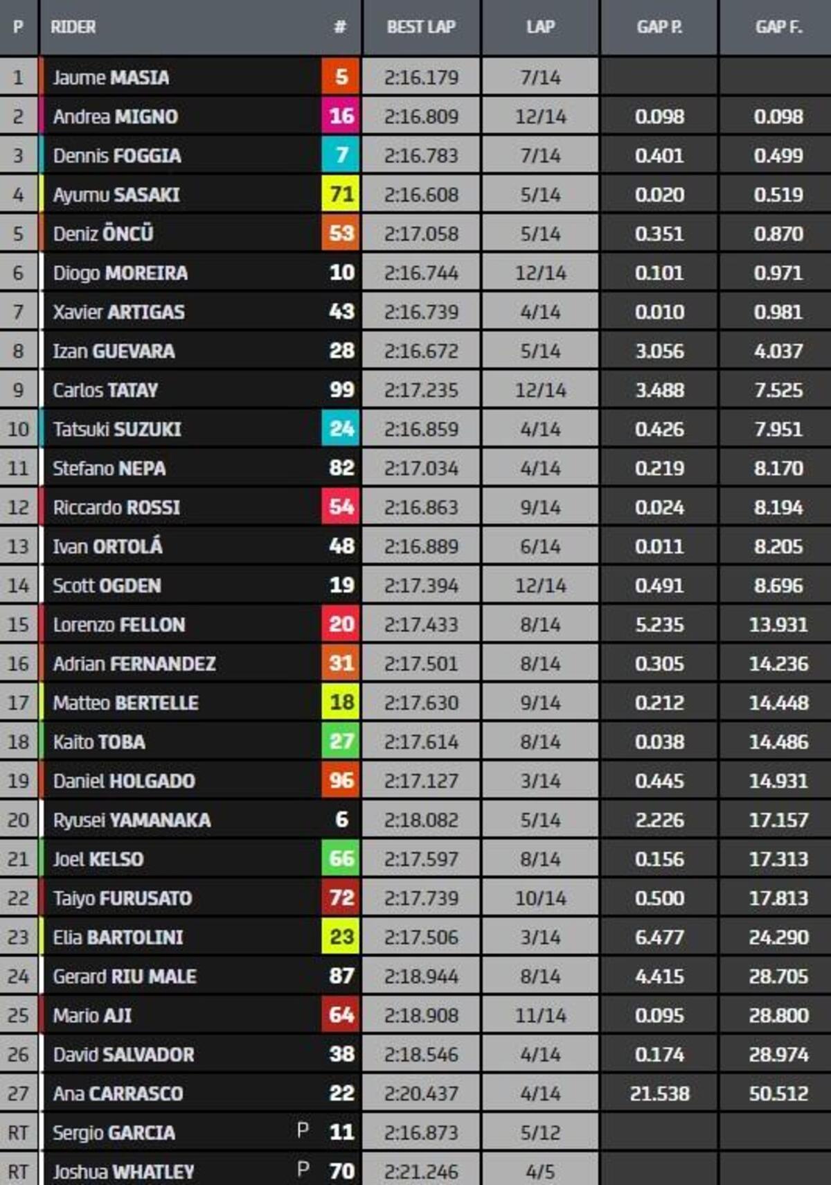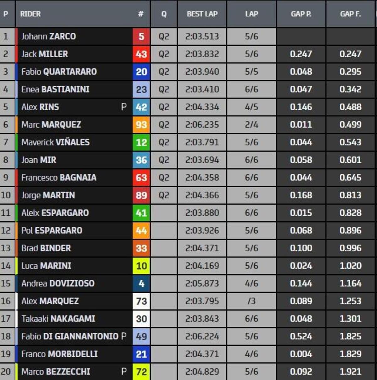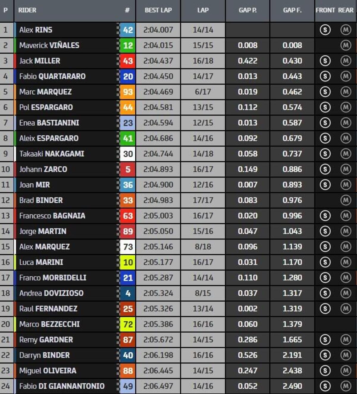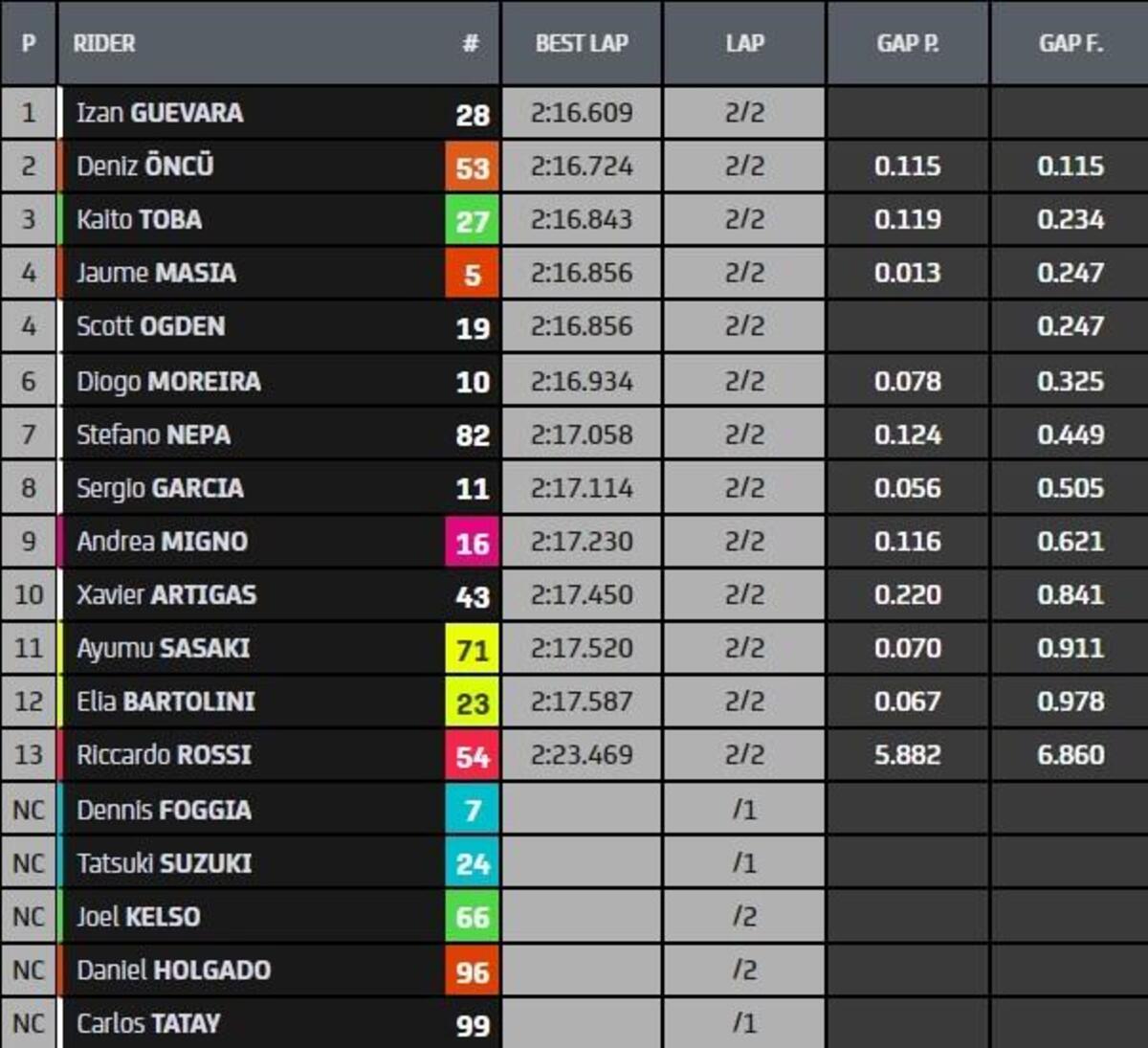 “Soffro un po’ di chattering e quando metti la gomma soffice nuova ovviamente aumenta e diventa difficile guidare la moto. Oggi non sono stato abbastanza veloce, domani dobbiamo migliorare. Rispetto all’anno scorso qui ci sono tante differenze: moto, dentro al box, asfalto. Insomma, quest’anno è molto meglio, ho potuto girare con un passo più veloce dell’anno scorso senza fare errori. Questa pista, però, non si adatta così bene al mio stile di guida, faccio fatica a fermare bene la moto alla prima curva, io qui non sono così efficace come in altri tracciati. Credo che se domenica sarà possibile lottare per i primi sei, sarebbe un segnale molto positivo. Sono molto concentrato per cercare di capire dove e come posso migliorare, anche con Matteo Baiocco, stiamo analizzando tutti i video, i dati, anche quelli di Vinales che qui è sempre molto veloce. Sto facendo il massimo per essere competitivo.