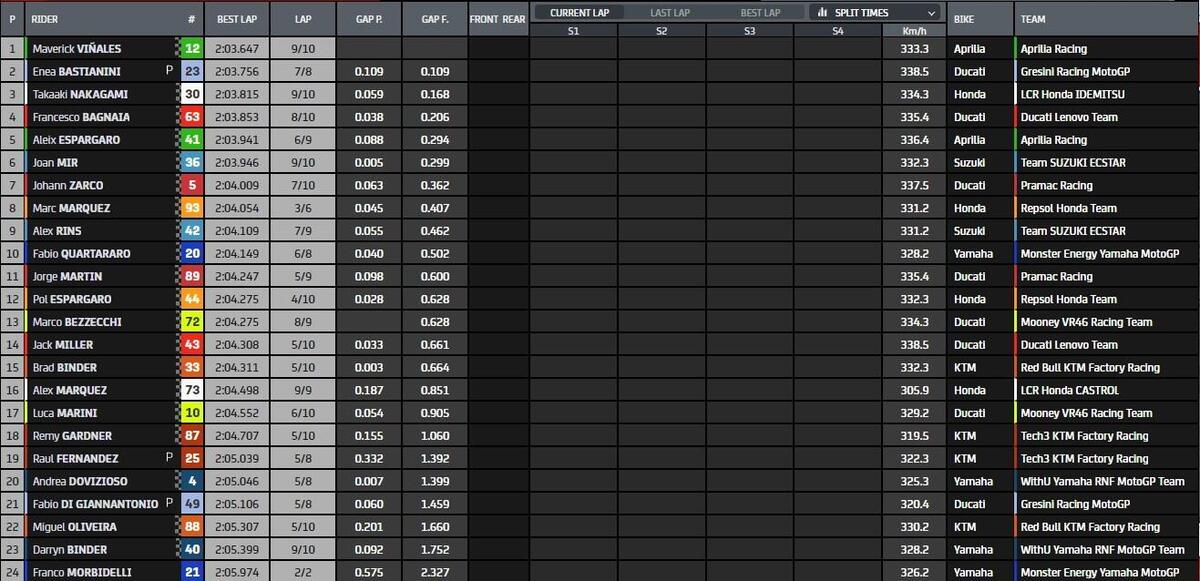 “Nei miei anni in Aprilia sono stato solitamente il più veloce e ho sempre cercato di aiutare il mio compagno di squadra a crescere, perché due piloti veloci fanno fare un passo in avanti alla moto. Vinales è molto veloce, abbiamo un ottimo rapporto, lui qui è molto forte. Sto analizzando tutti i suoi dati. Siamo una buona squadra e questo è uno dei circuiti preferiti di Maverick e uno dei miei peggiori”.
