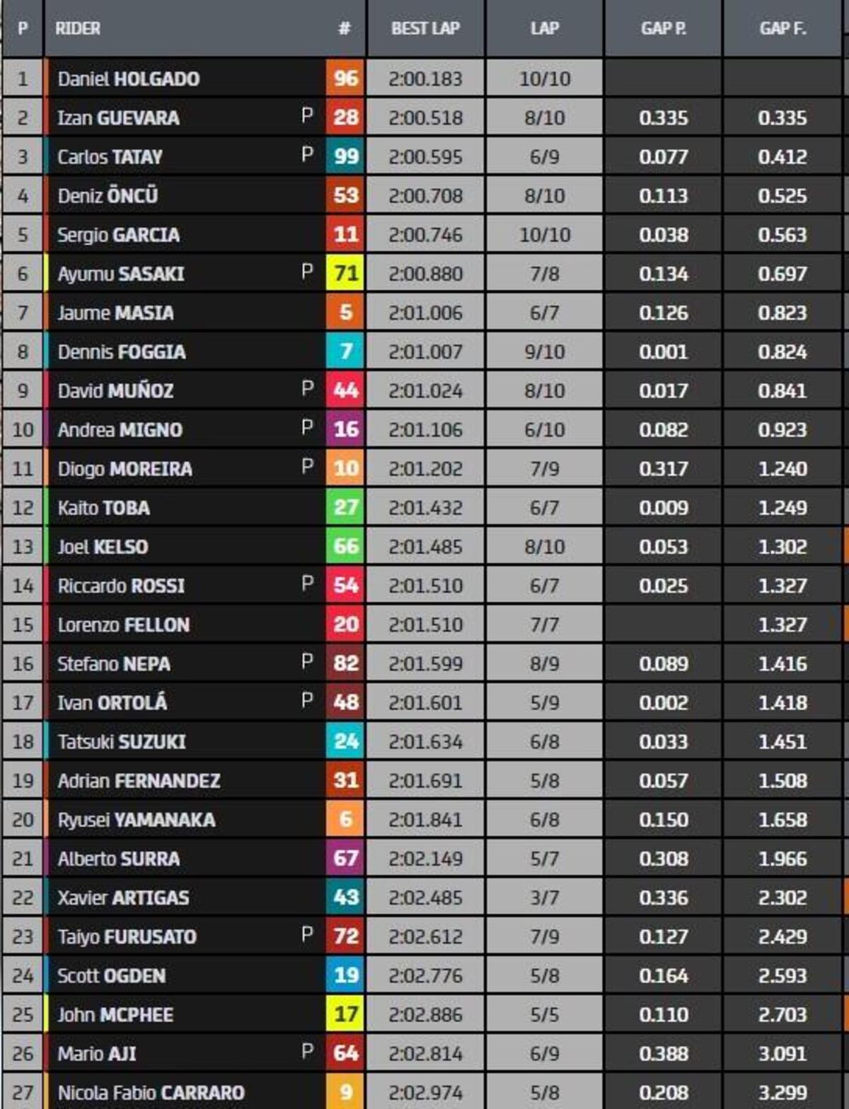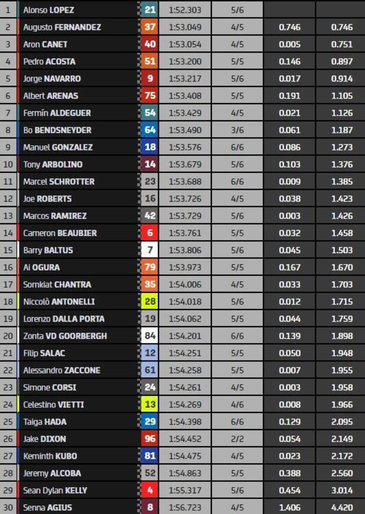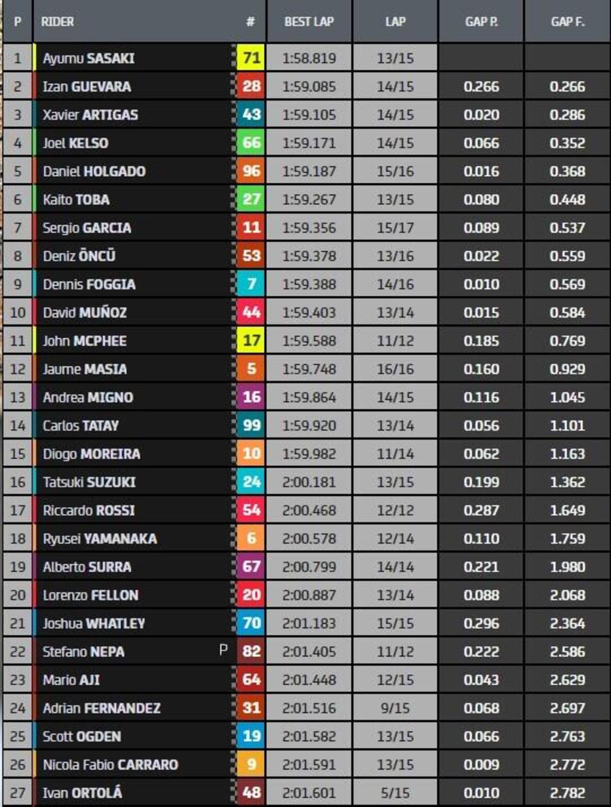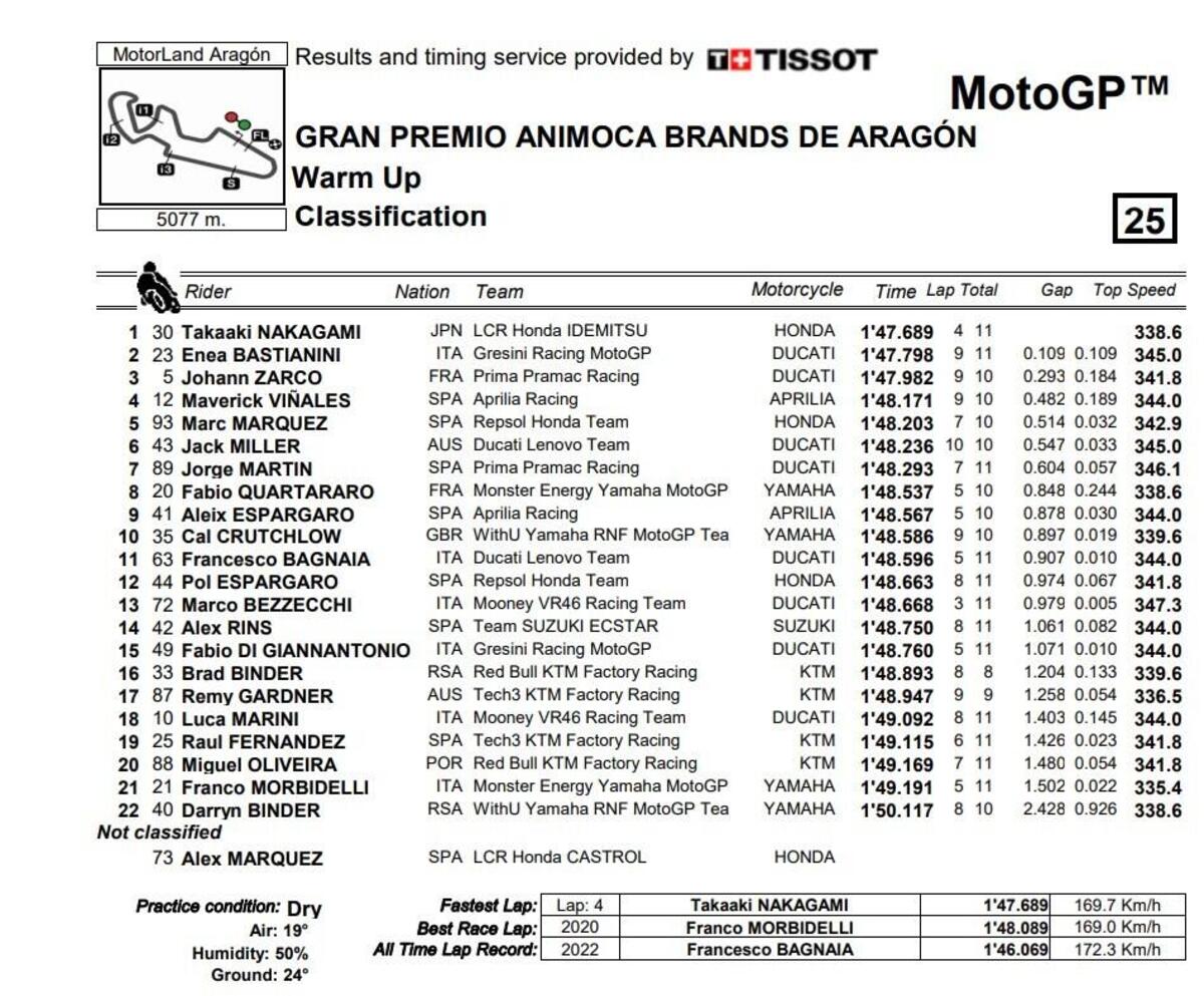 Bagnaia 6, Bastianini 4, Quartararo 3, Aleix 1 e Oliveira 1 (10 Ducati,
