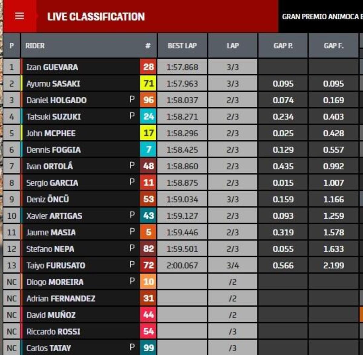 sono in pista le Moto3, è iniziato il GP di Aragon!