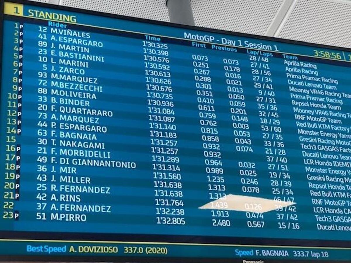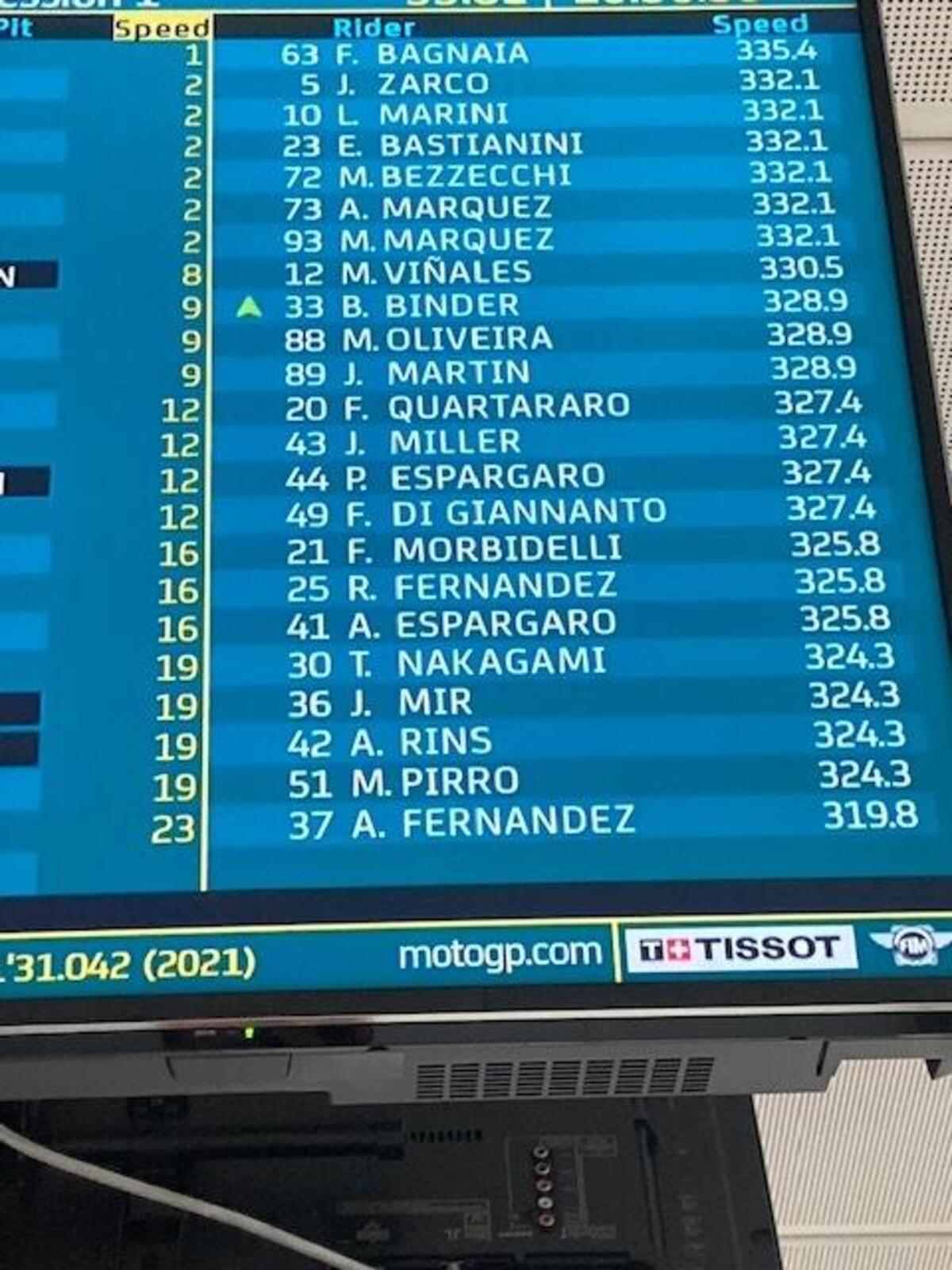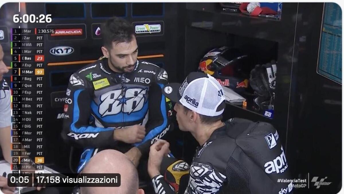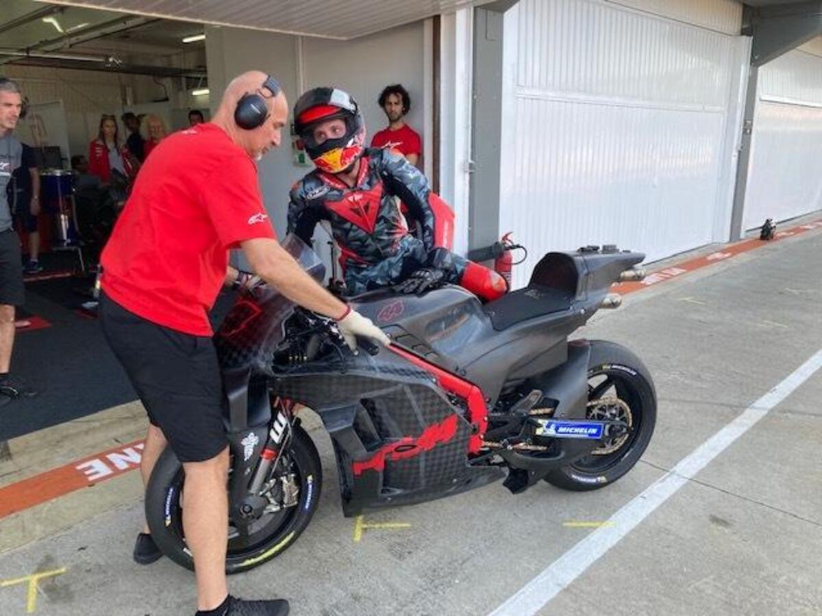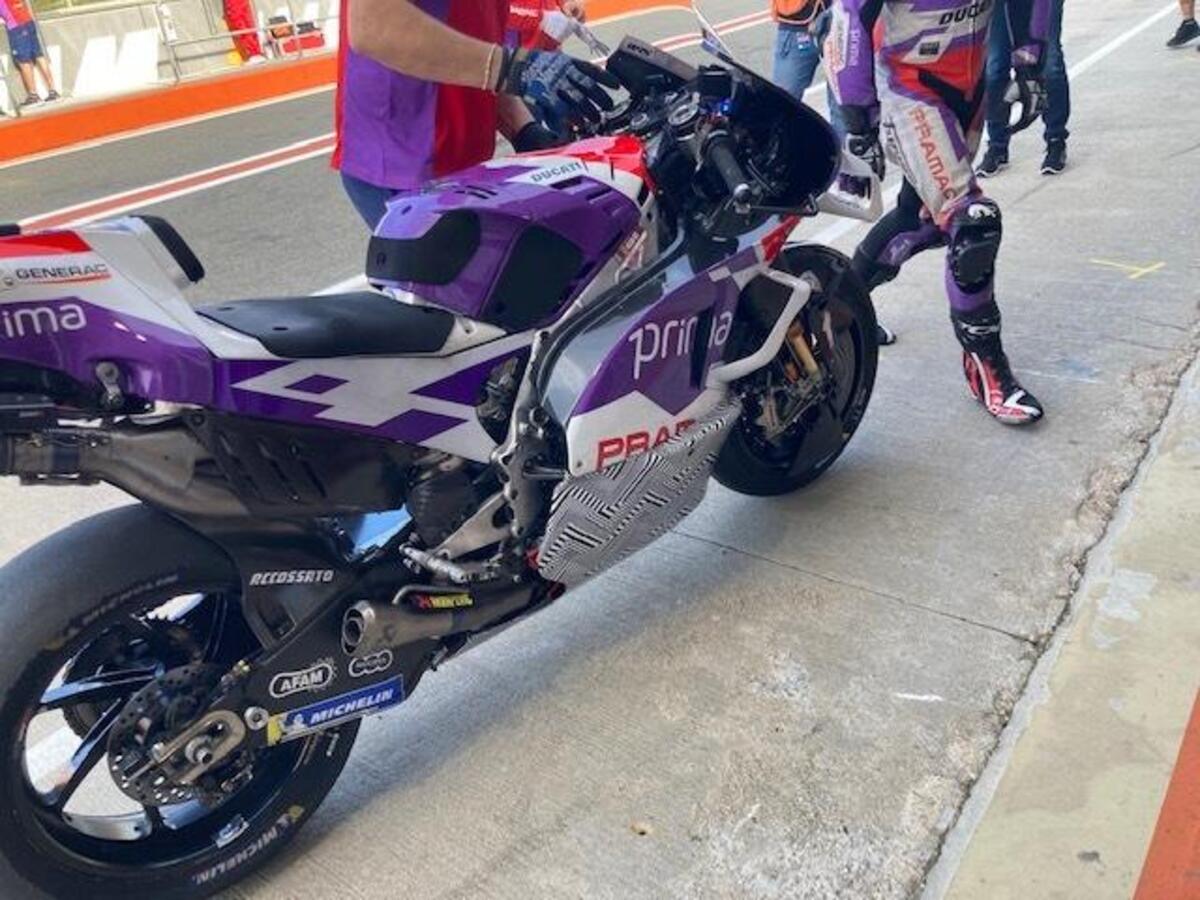 “La moto è più maneggevole e qui non perdiamo molto in rettilineo. Forse sente un po’ più il vento nelle pieghe, ma nel complesso mi sembra buona: direi che sono soddisfatto”.