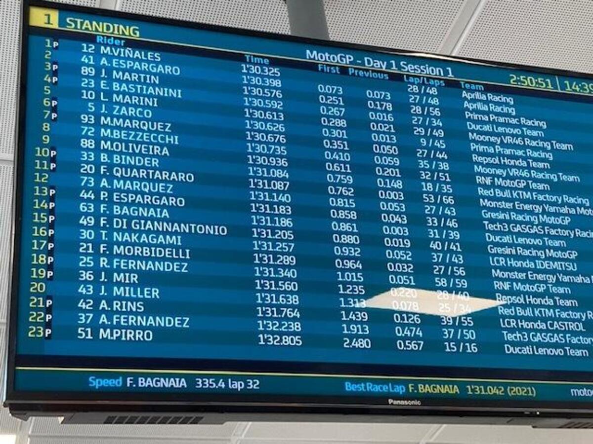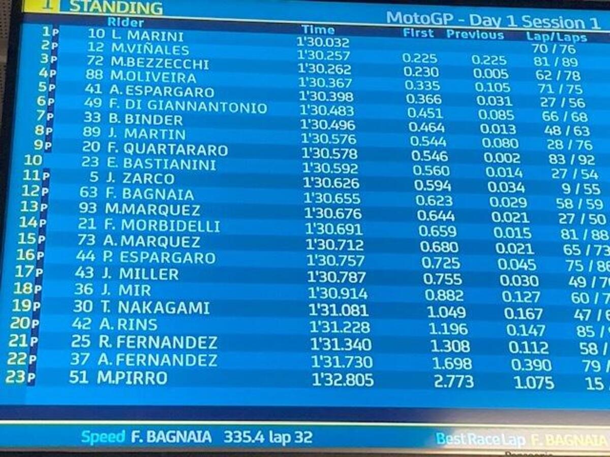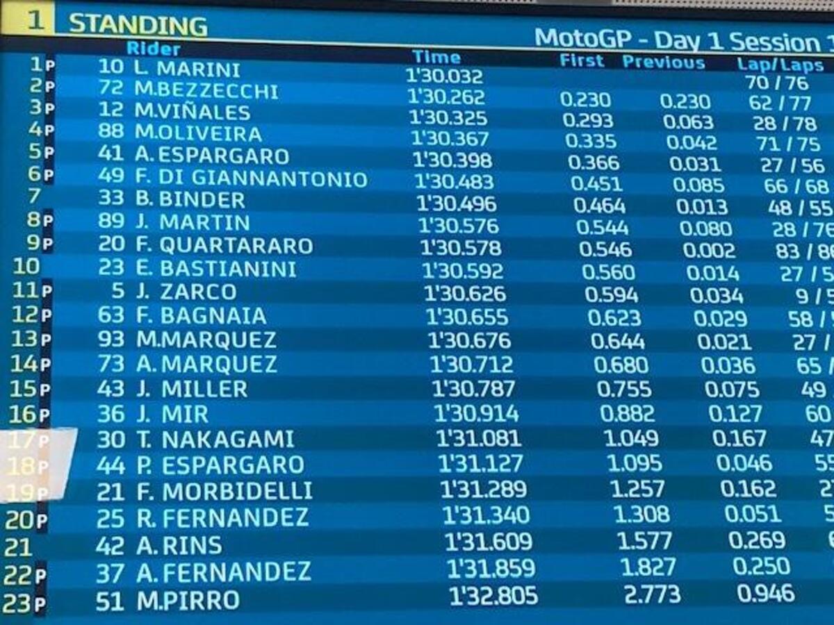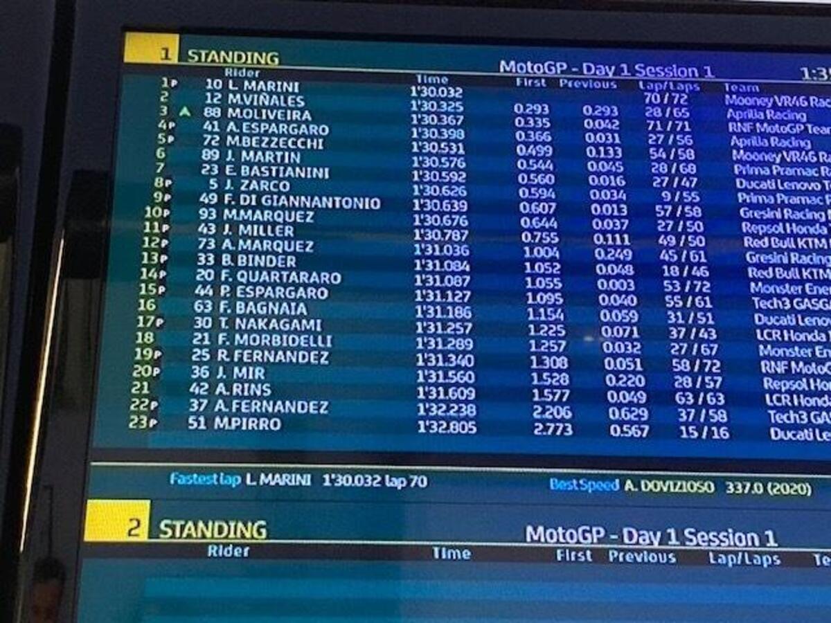 “La moto è più maneggevole e qui non perdiamo molto in rettilineo. Forse sente un po’ più il vento nelle pieghe, ma nel complesso mi sembra buona: direi che sono soddisfatto”.