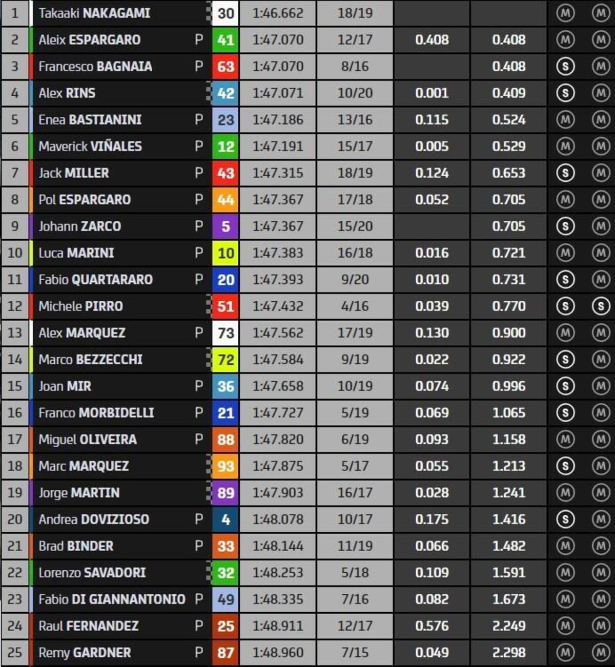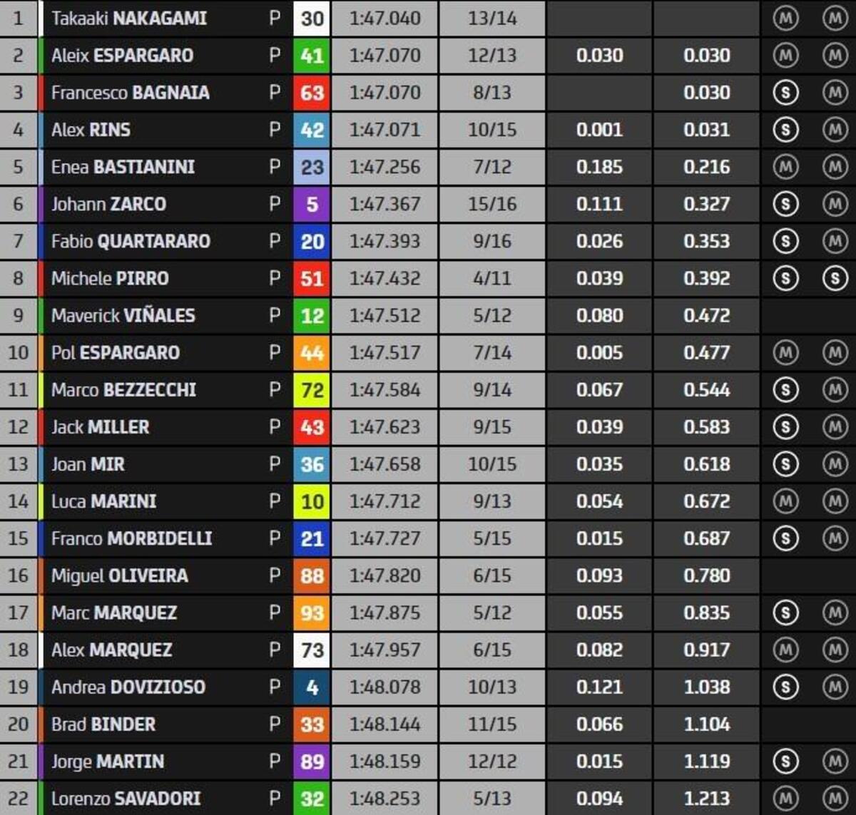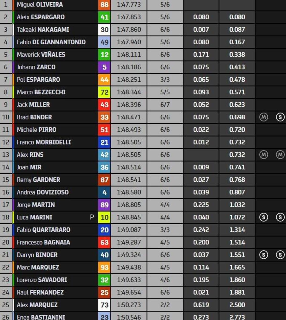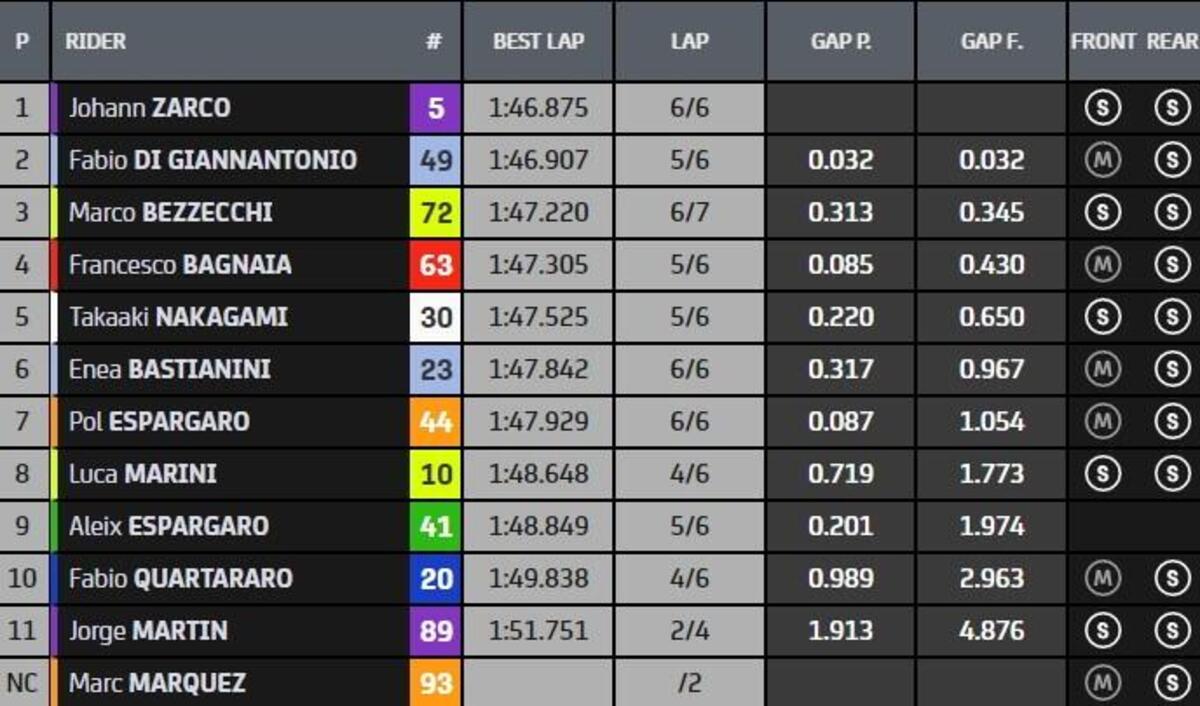 fp1 di motogp la situazione a 6 minuti dalla fine del turno