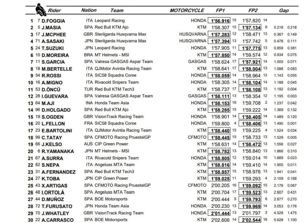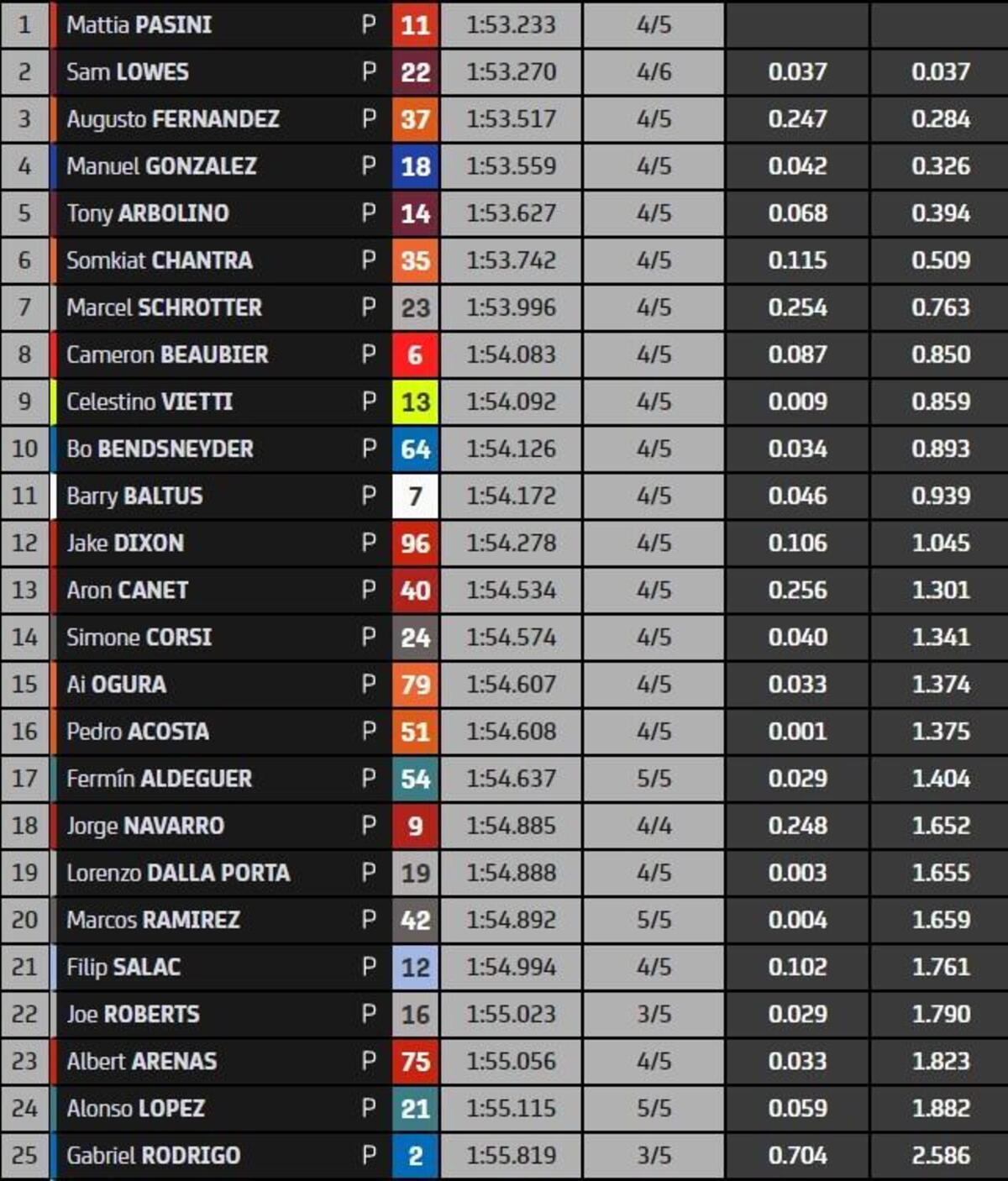 intanto pasini davanti a tutti nelle Fp1 di Moto2- mancano 27 minuti