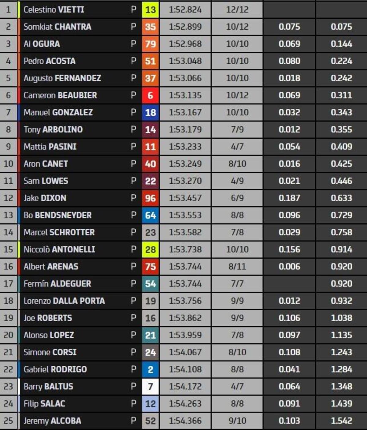 fp1 di moto2 - mancano 14 minuti - vietti davanti a tutti