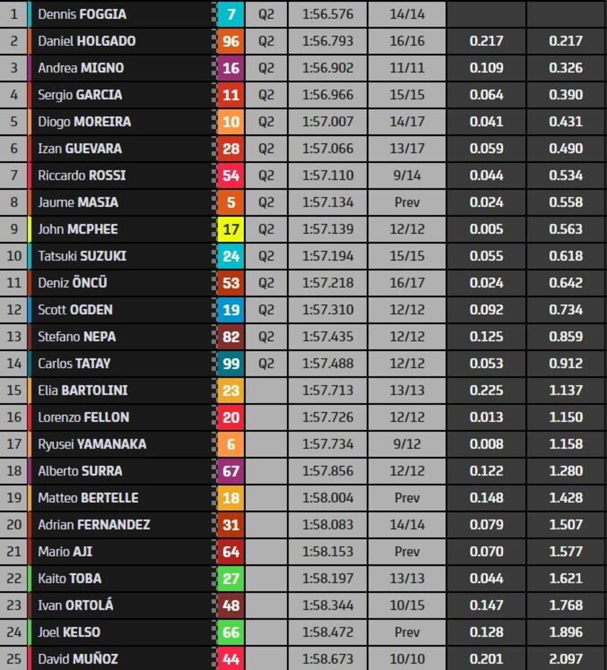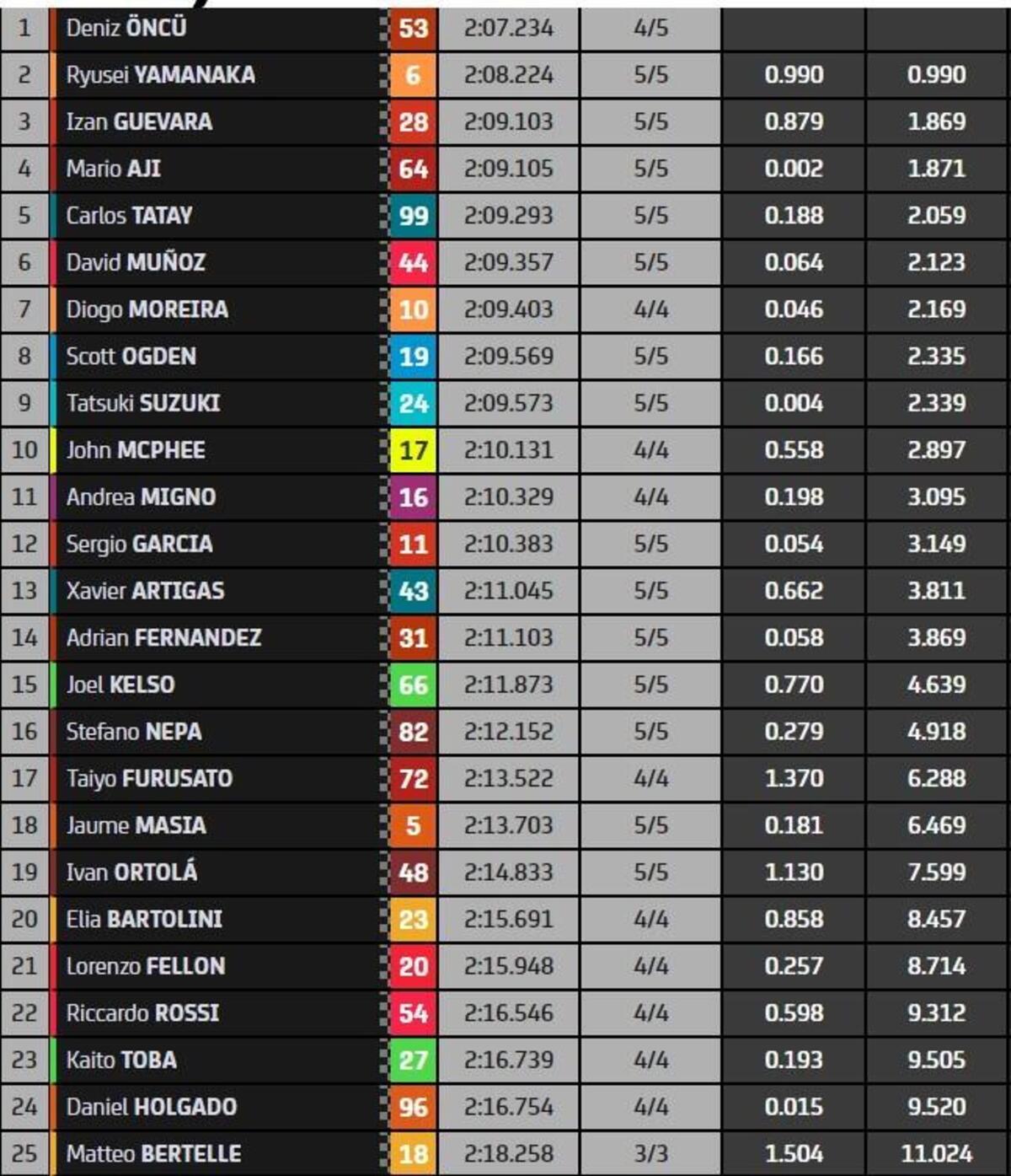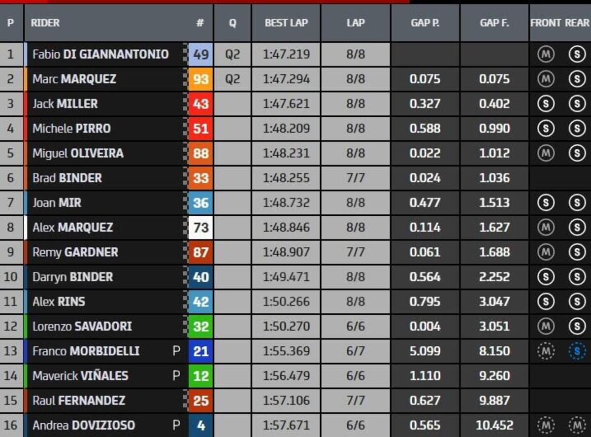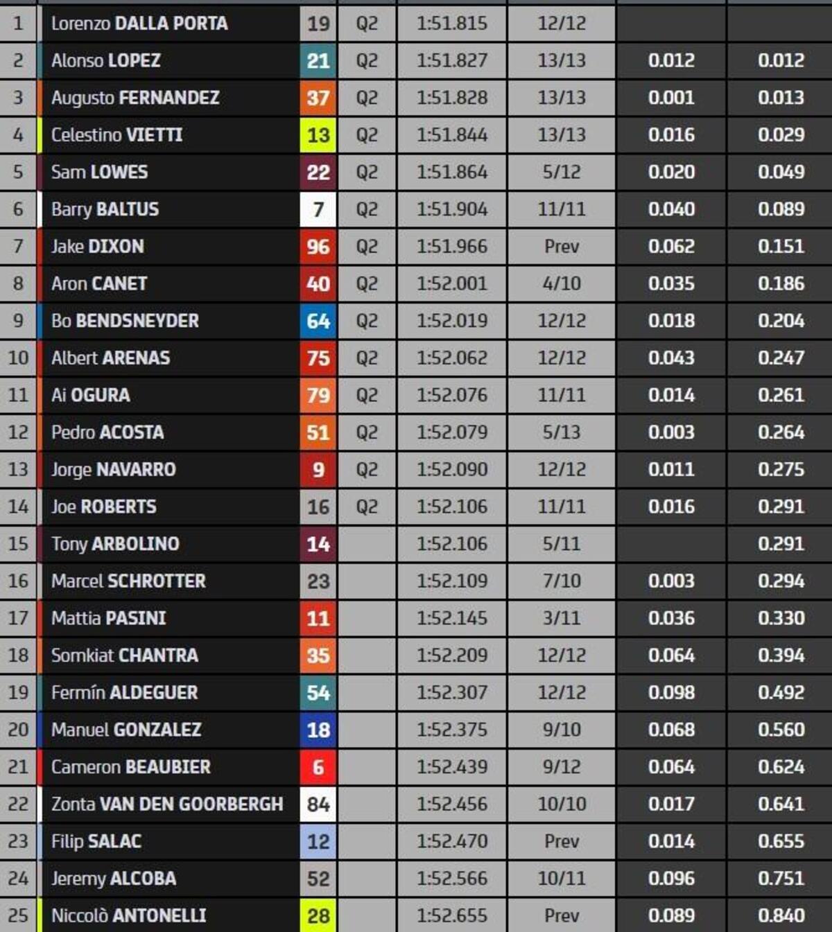 bagnaia ha 1.2 su fabio che ha 0.7 sulla coppia bezz-aleix