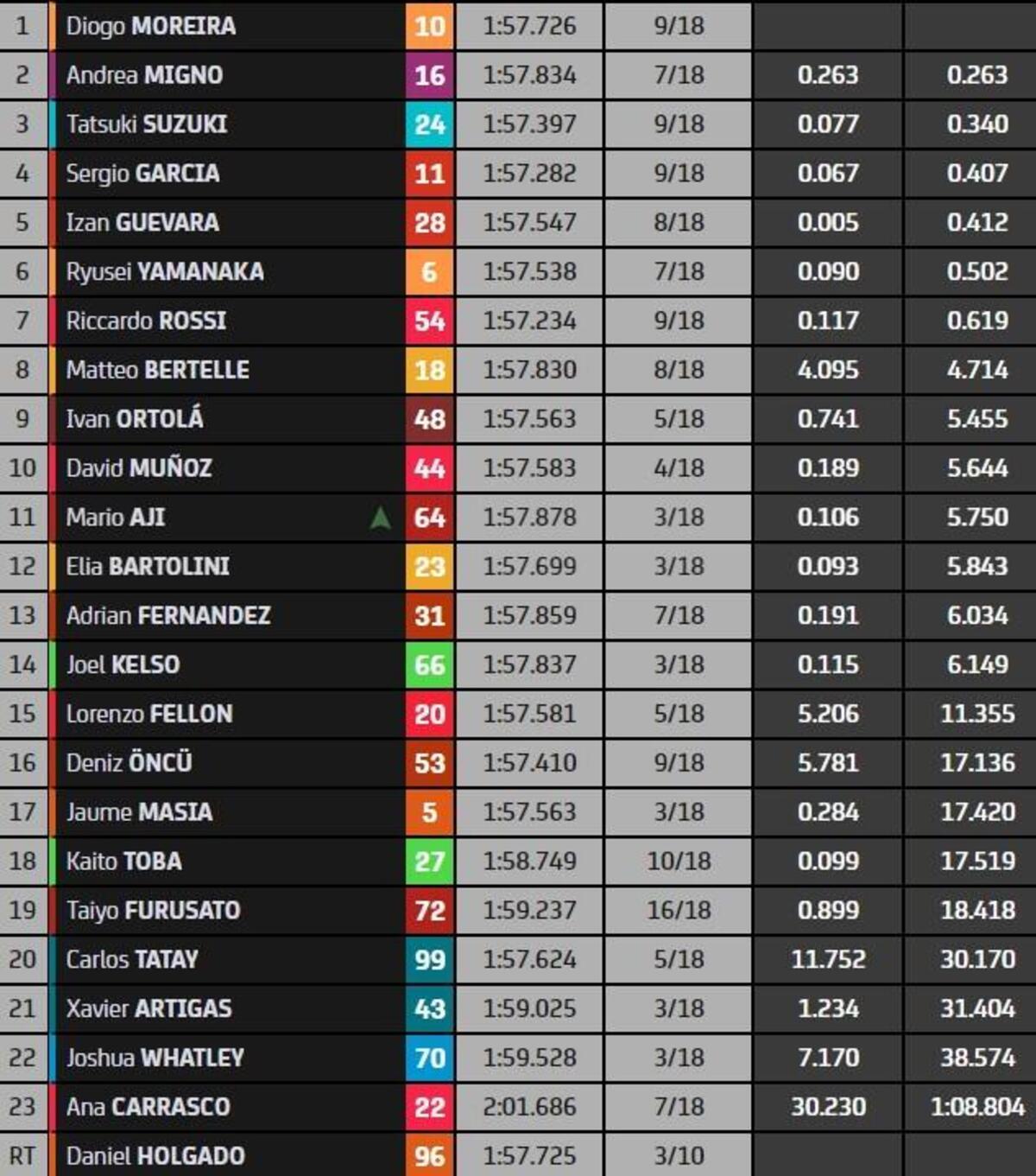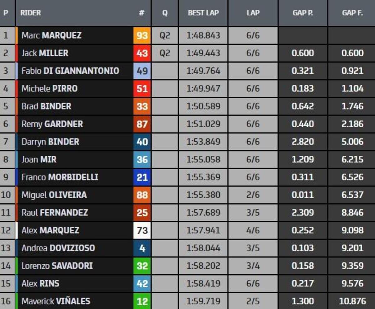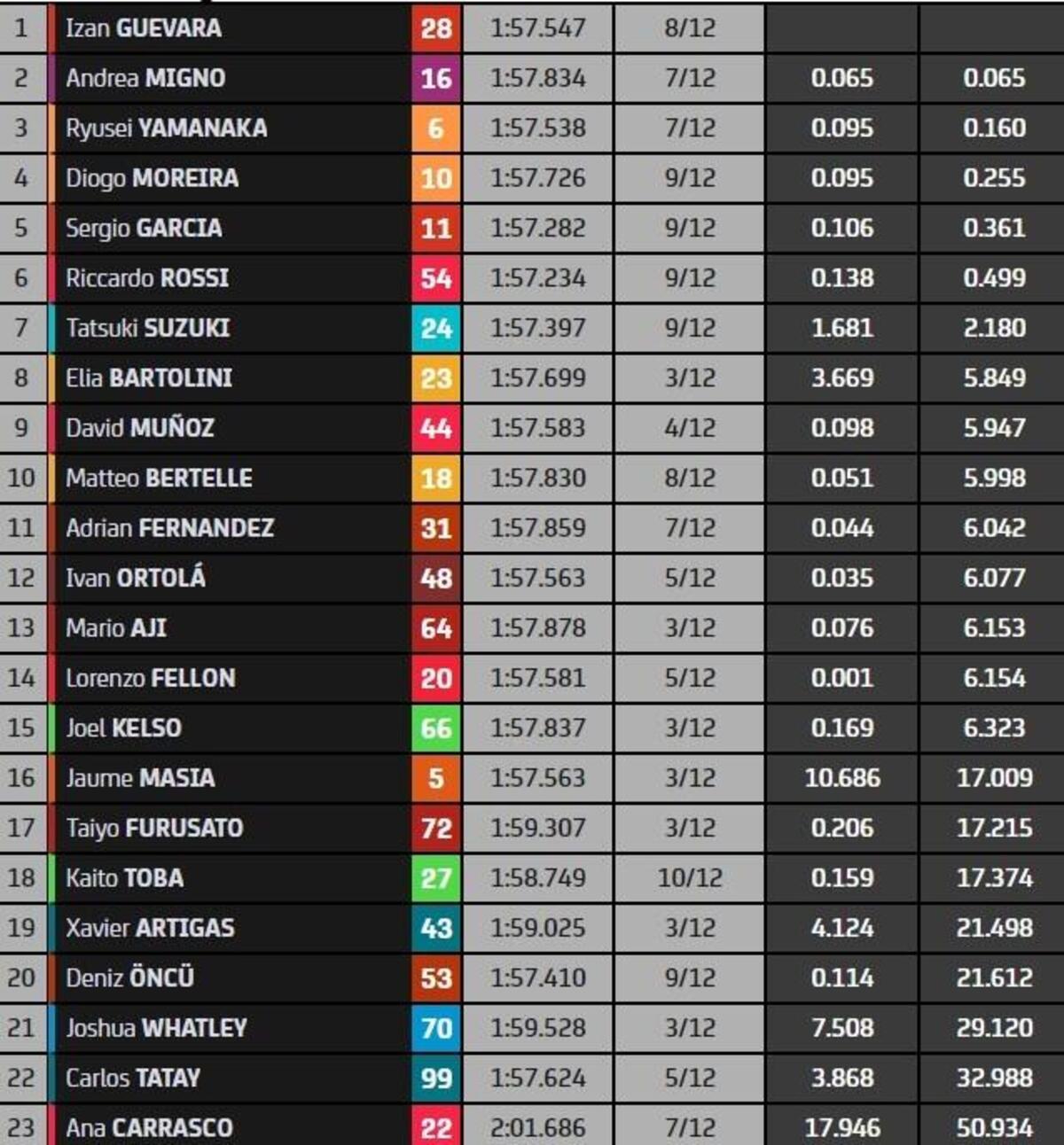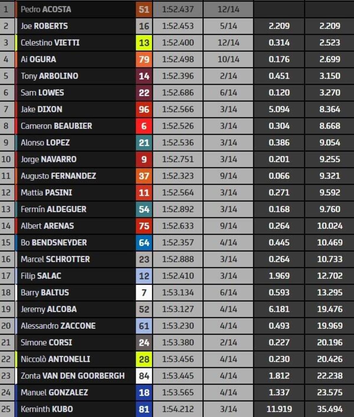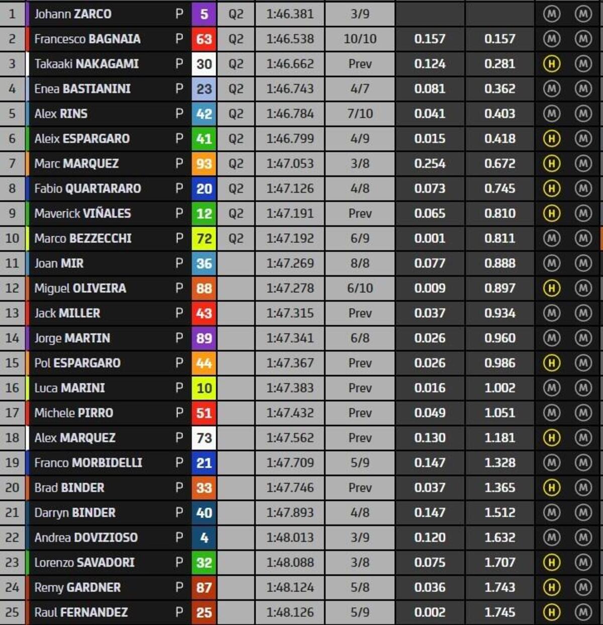 bagnaia ha 1.2 su fabio che ha 0.7 sulla coppia bezz-aleix