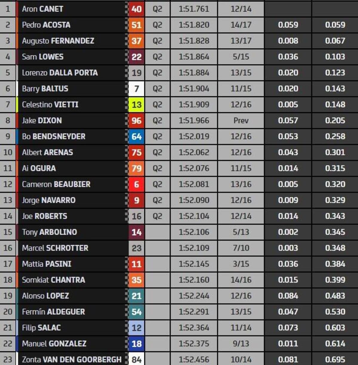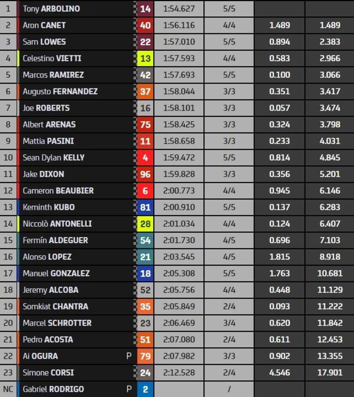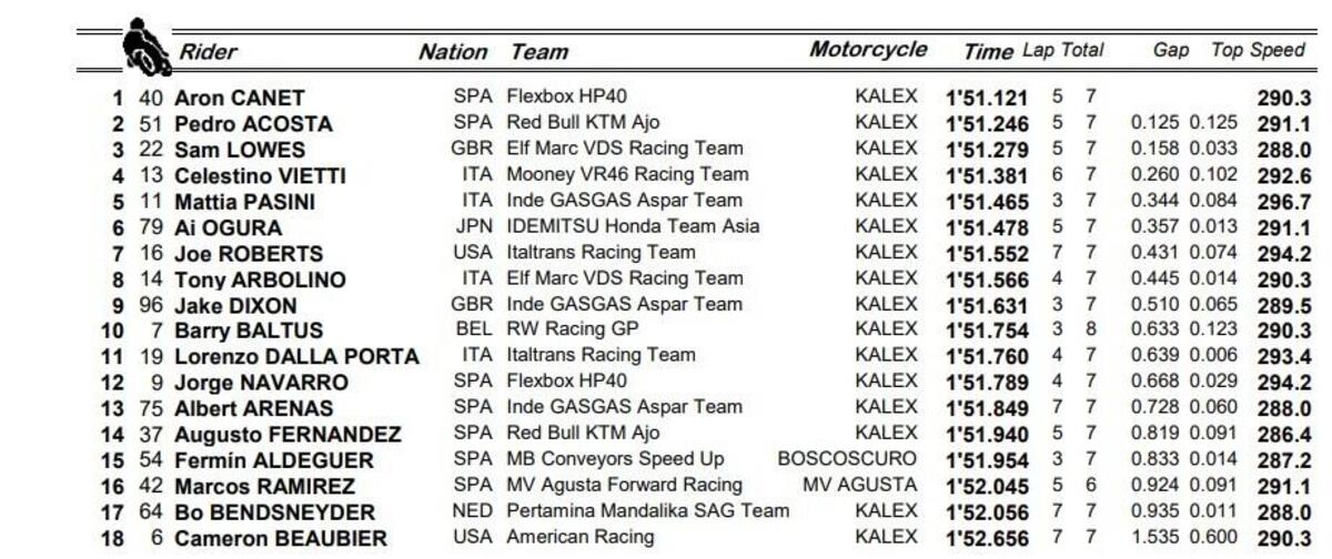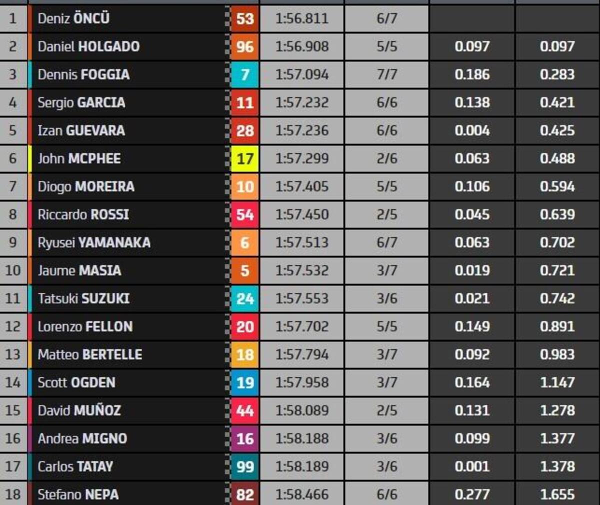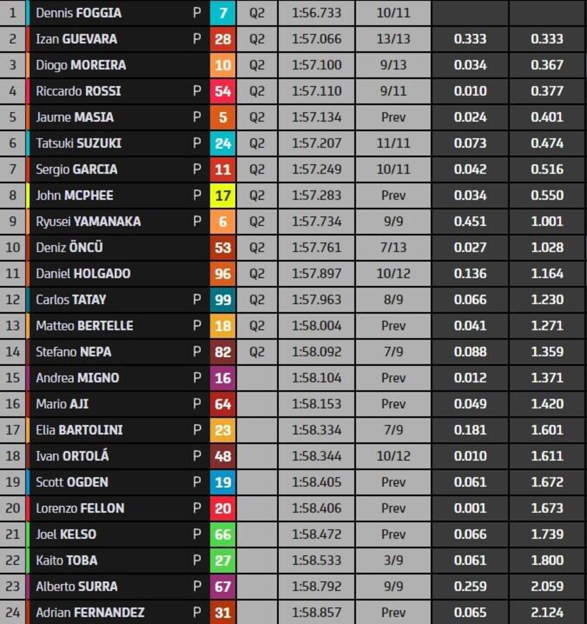 bagnaia ha 1.2 su fabio che ha 0.7 sulla coppia bezz-aleix