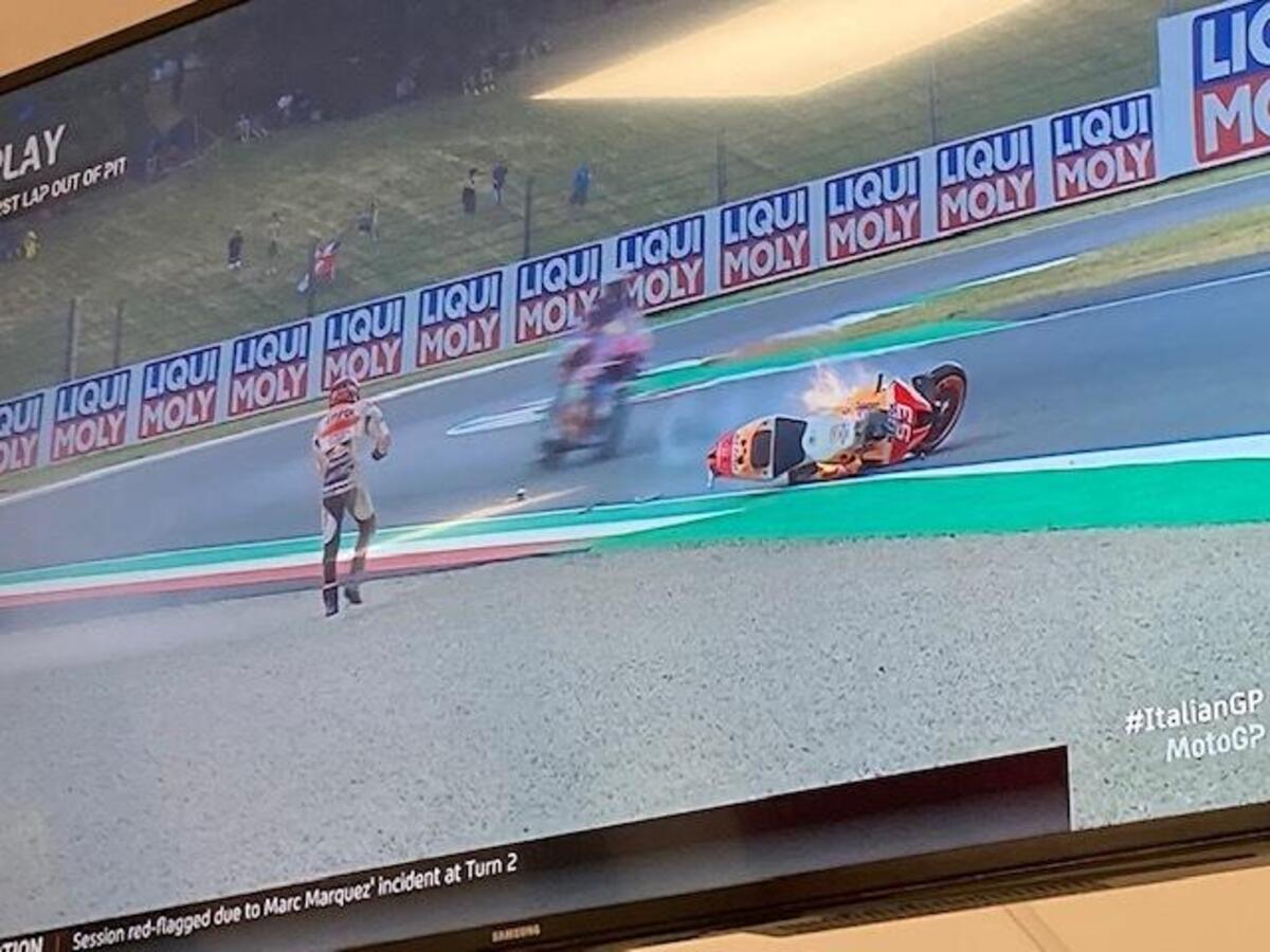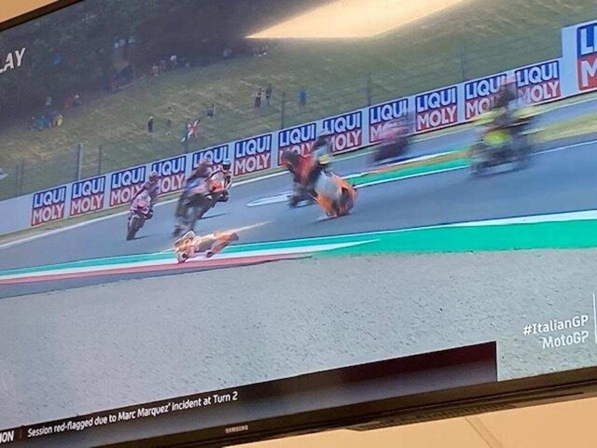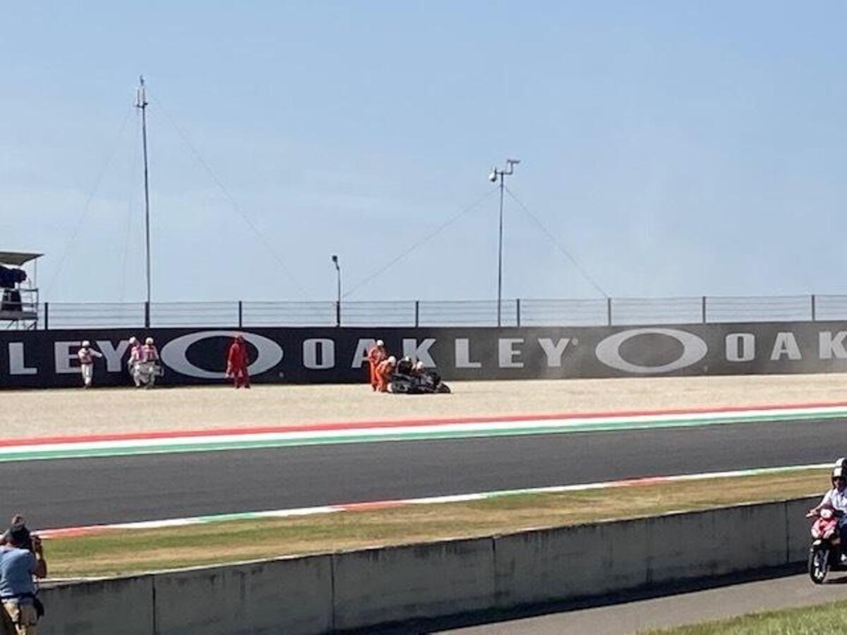 Il pilota di Moto3 cade dopo un high side e un pilota che gli era dietro gli sale sopra.