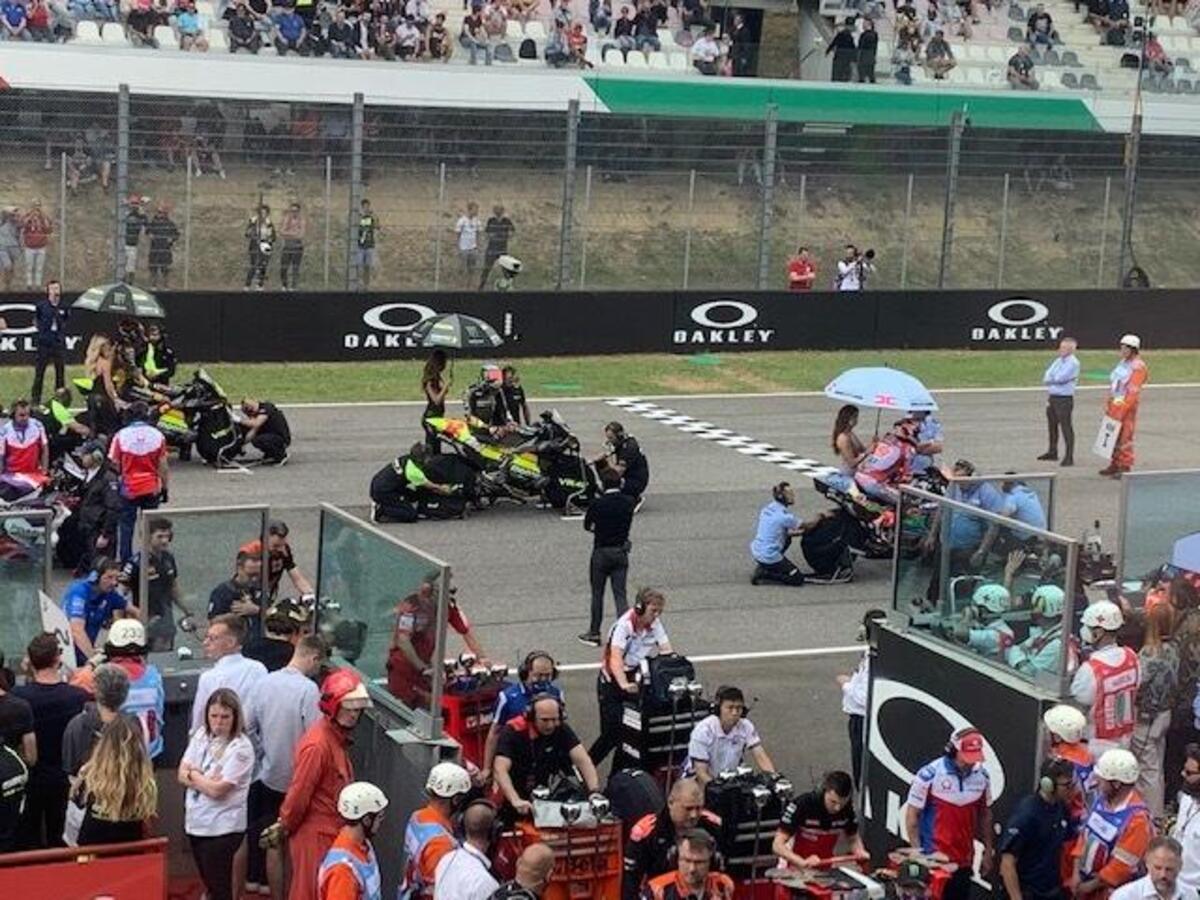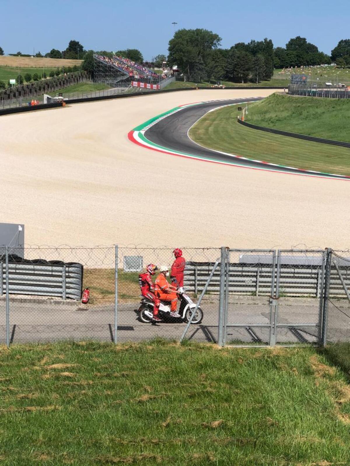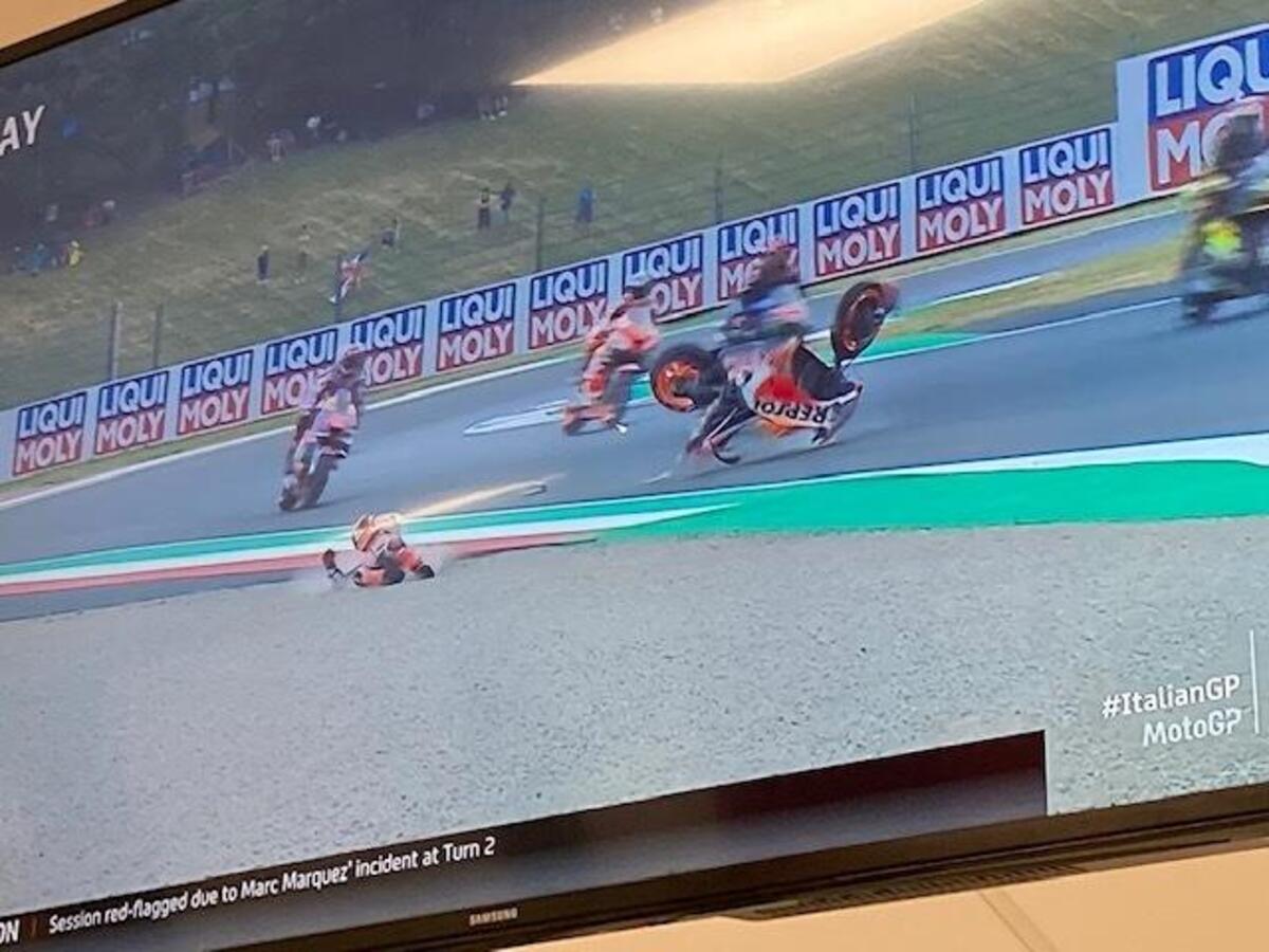 Il pilota di Moto3 cade dopo un high side e un pilota che gli era dietro gli sale sopra.