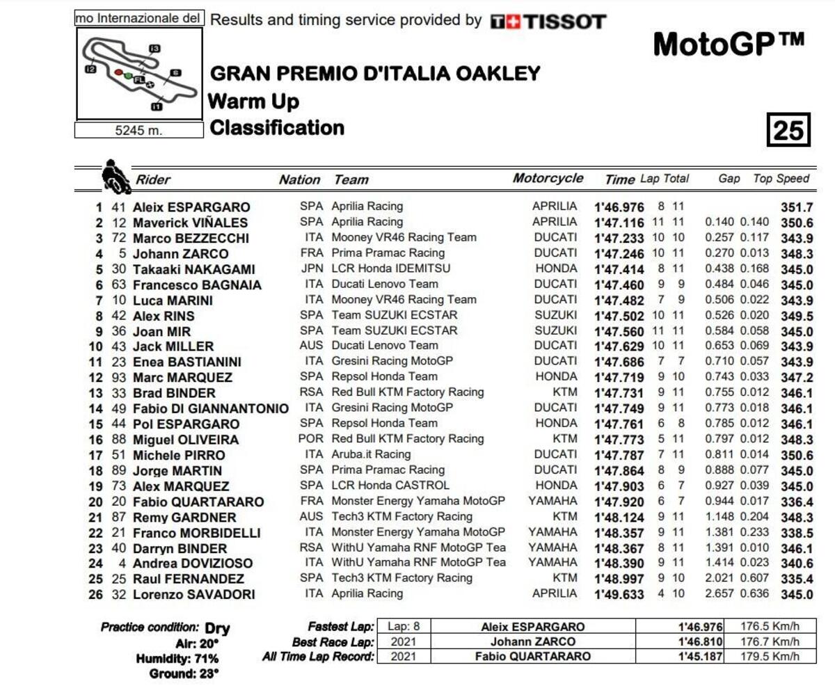 Marquez conferma la scelta comunicata ieri, Quartararo spiega come un secondo posto possa essere la gara migliore della sua vita, il vincitore Bagnaia vola basso (“non sono favorito, ecco perché”) mentre Aleix sorride ma voleva e di più e Marini e Bezzecchi spiegano l’effetto che fa stare lassù con i primi della classe=