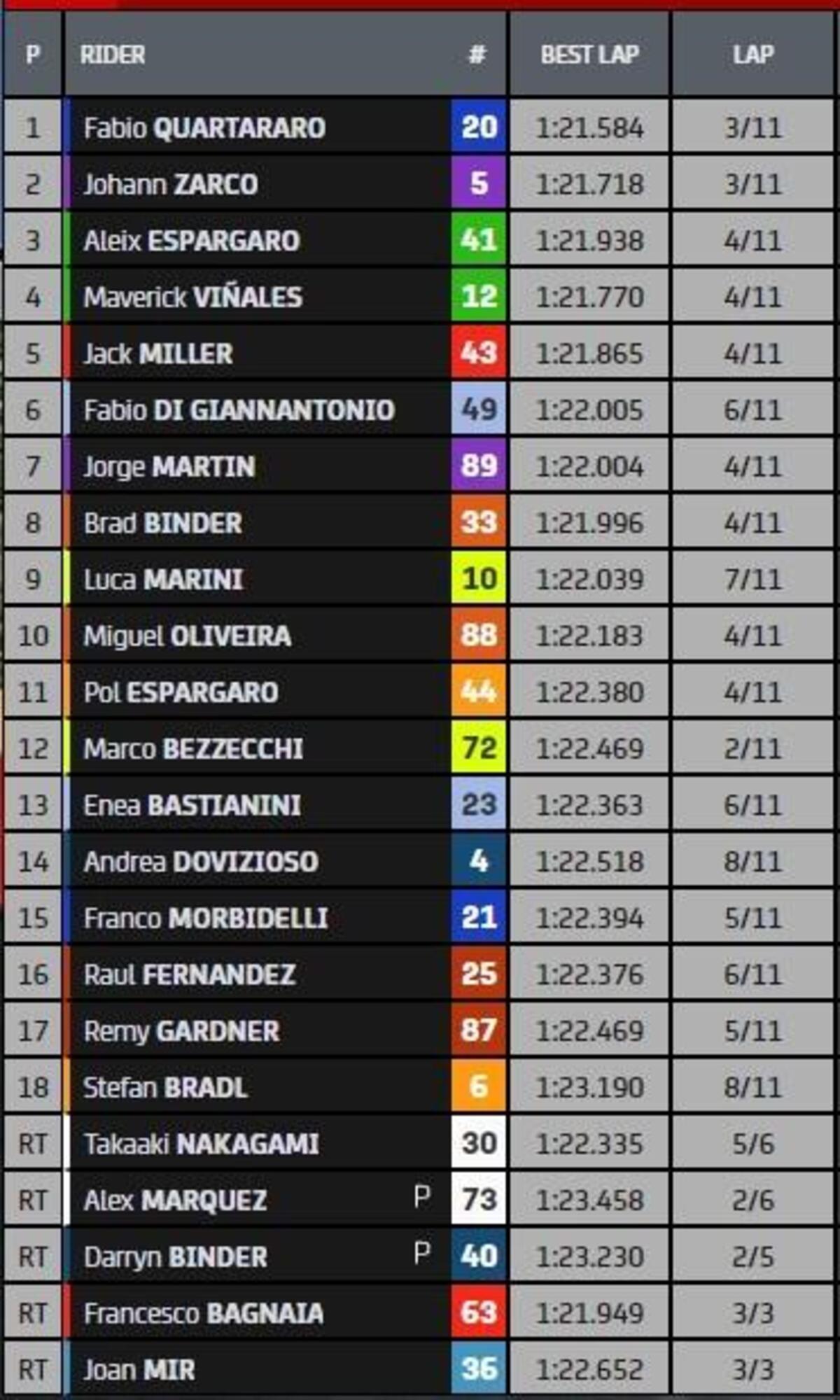 “Sono ottimista per questo GP, perché nei test di Barcellona abbiamo lavorato per risolvere i nostri problemi in entrata di curva, per adattare la moto al mio stile e renderla per me più naturale. La moto è diversa dal 2021, per questo c’è bisogno di tempo per trovare il giusto bilanciamento. Credo che qui si possa fare bene, spero che arrivi finalmente quel “click” che ci possa permettere di sfruttare meglio il nostro potenziale”.