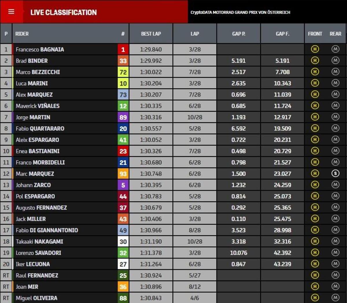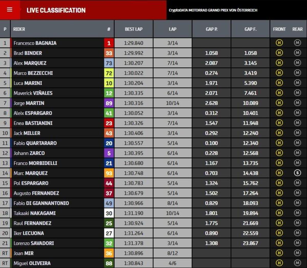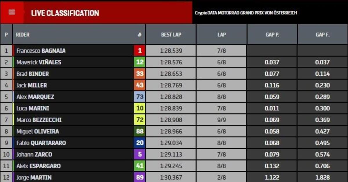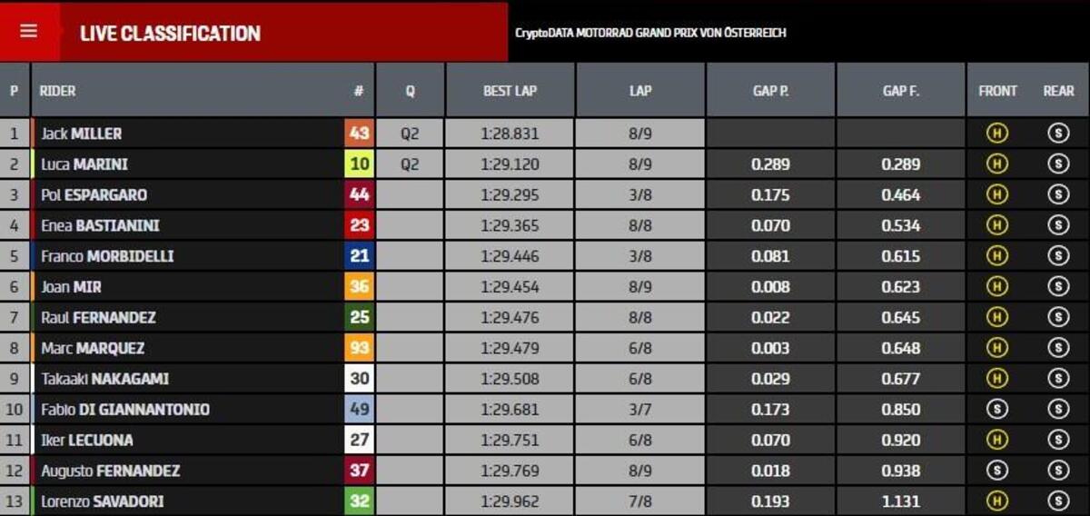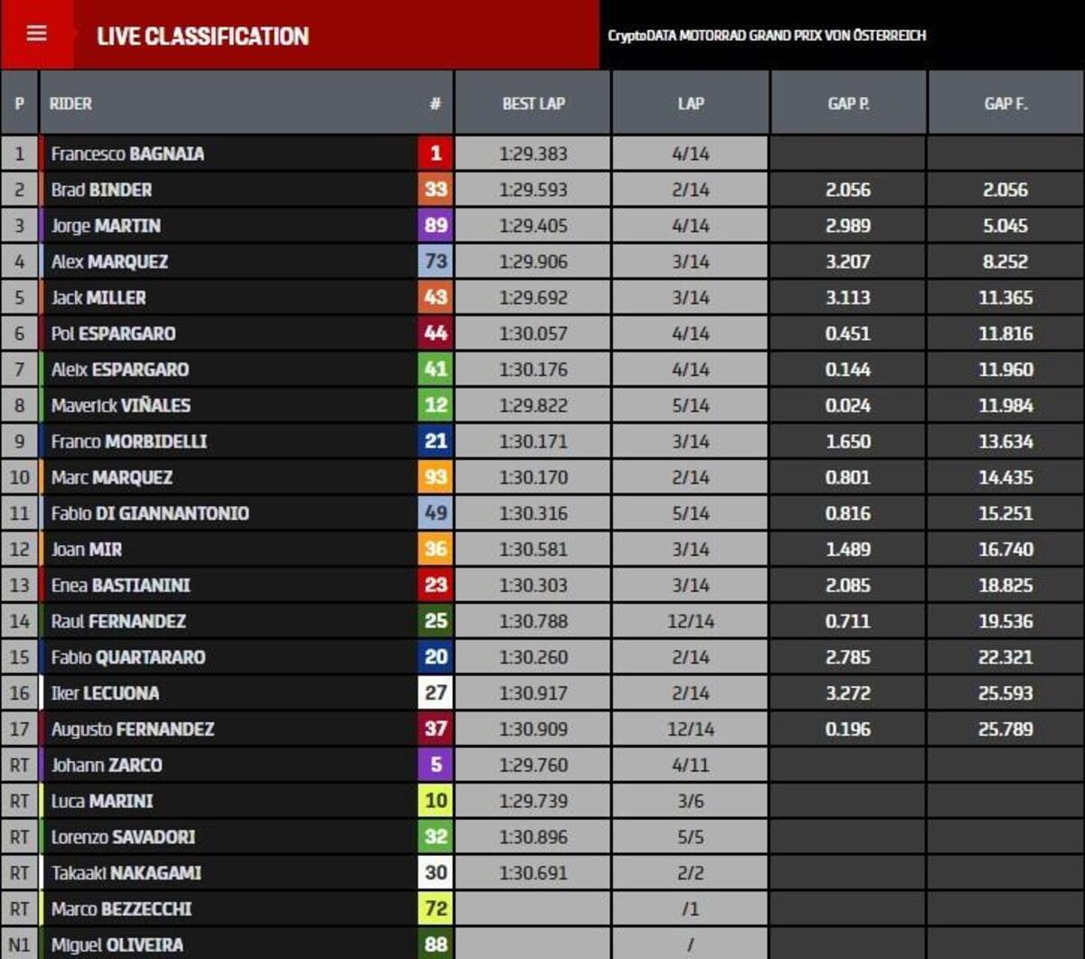 Quartararo che era 13esimo, Martin è secondo e non hanno deciso,