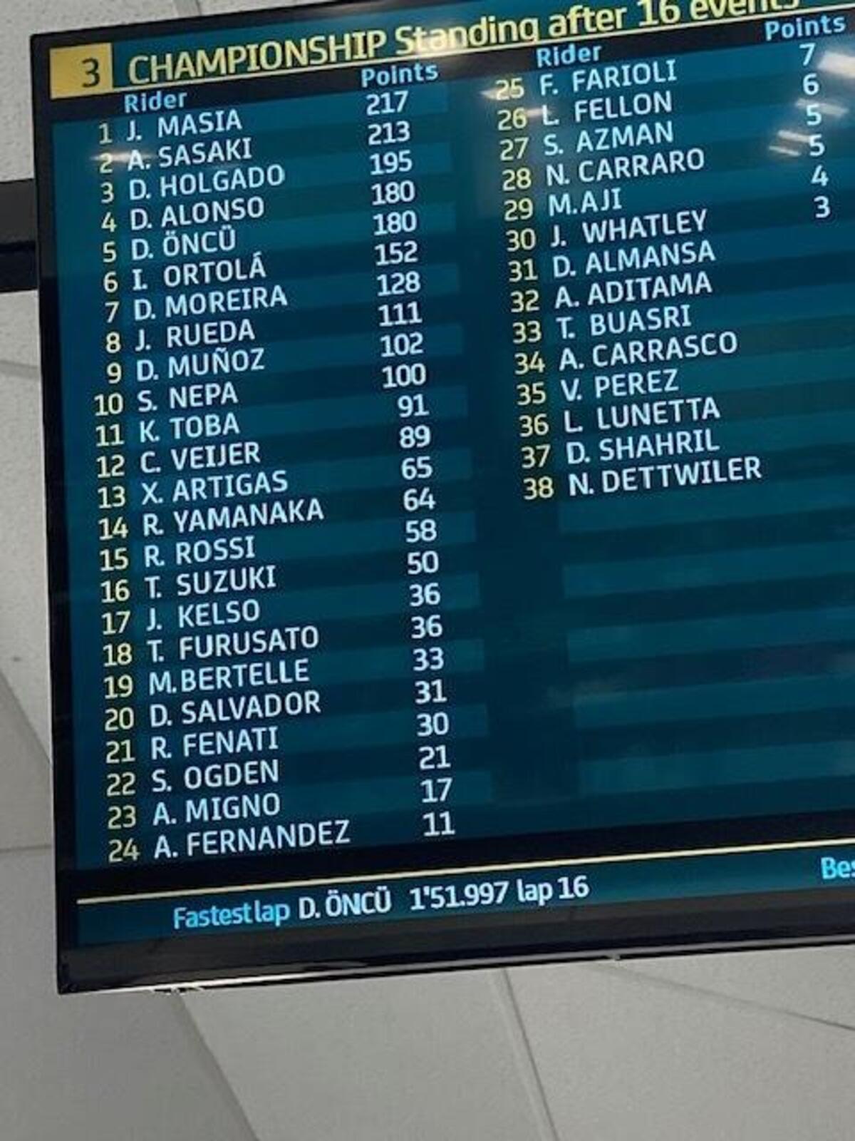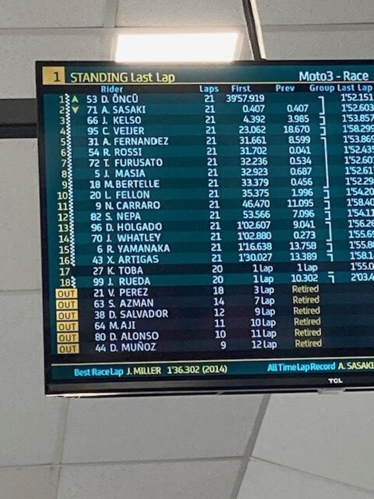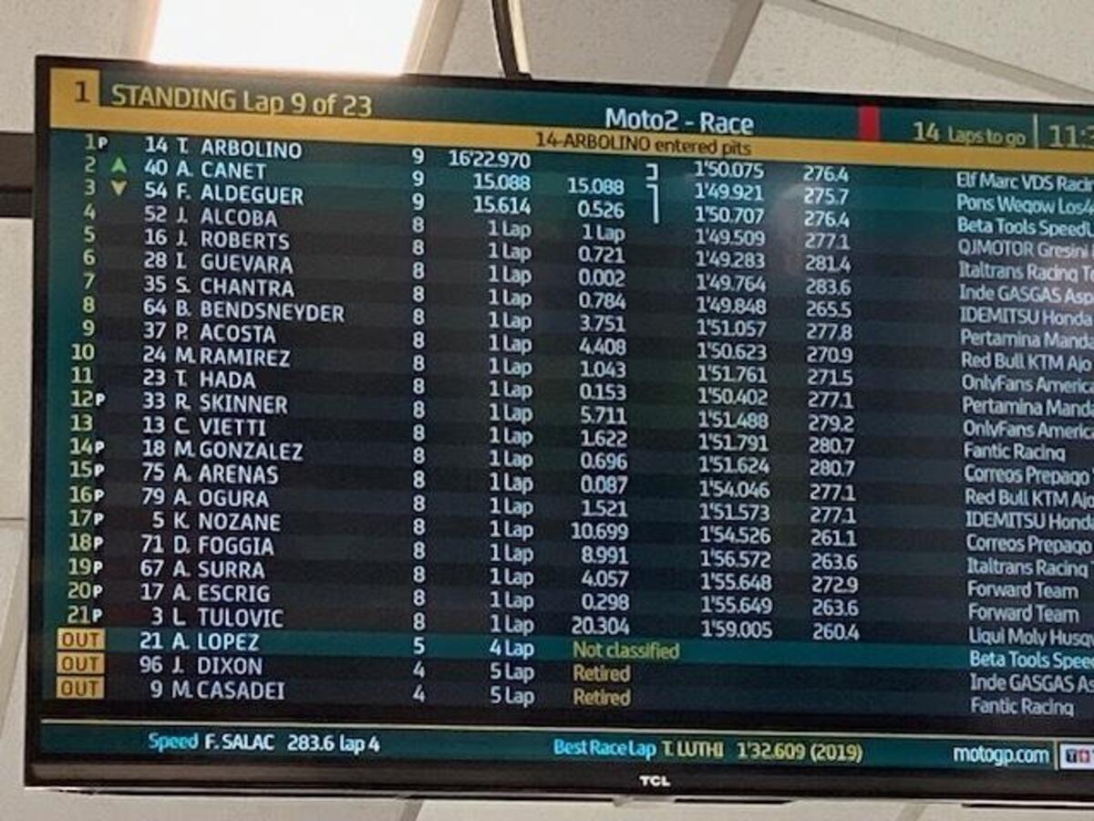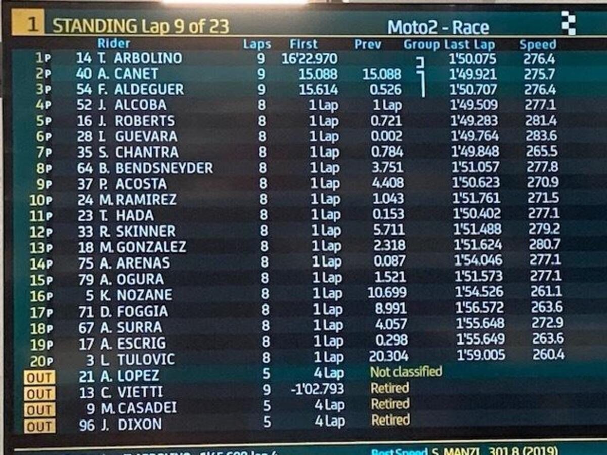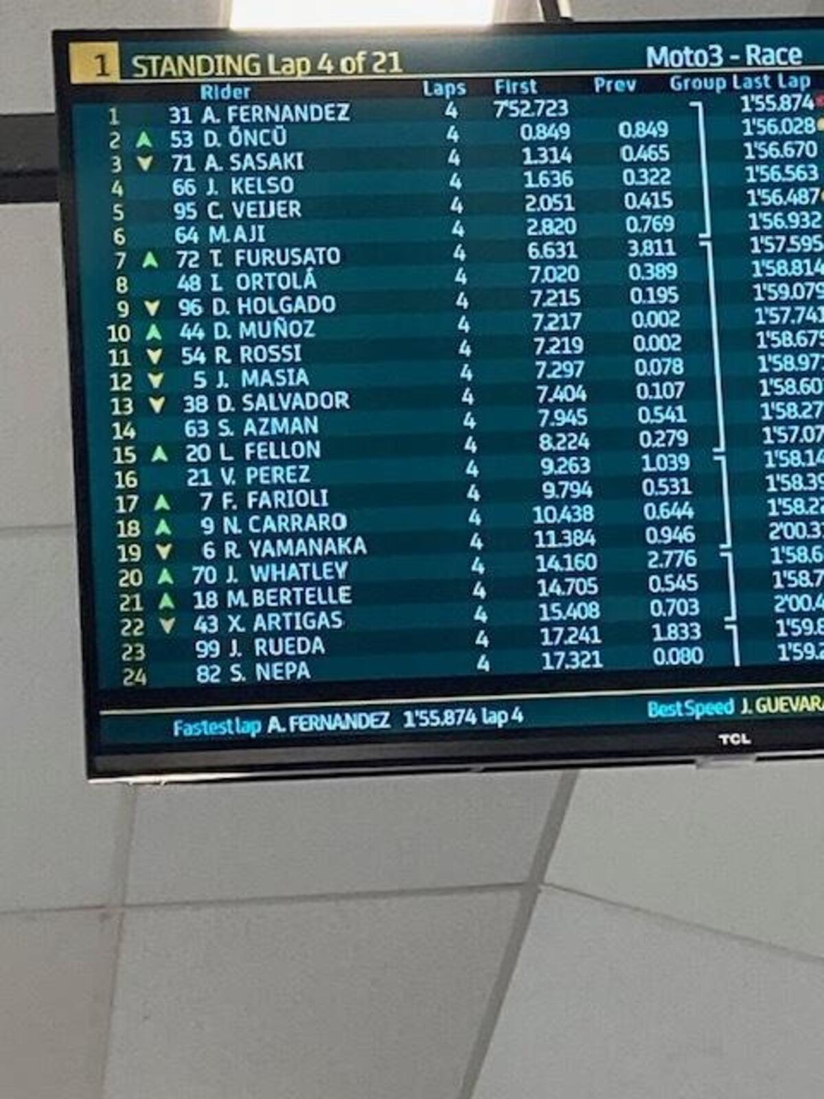 Altra caduta per Marc Márquez, che poi nel finale si esibisce in uno dei salvataggi che lo aveva reso famoso in passato: è l’unico motivo di soddisfazione per Marc, 16esimo, con il convalescente Alex Rins 12esimo, più veloce di Marc di circa un decimo e mezzo. Addirittura ultimo Franco Morbidelli, in grandissima difficoltà da questa mattina.