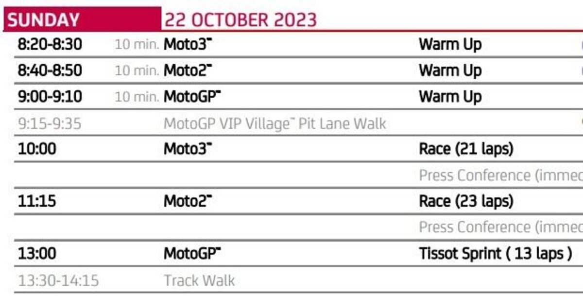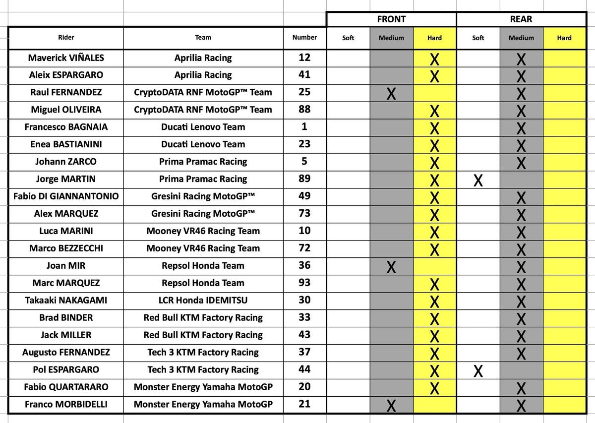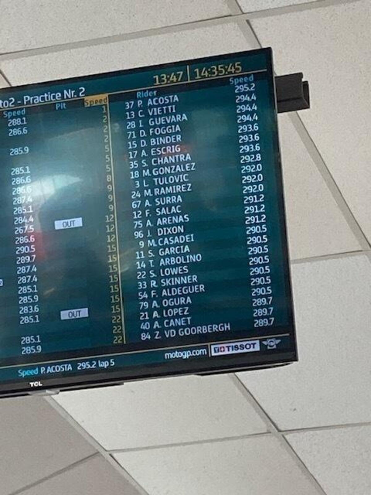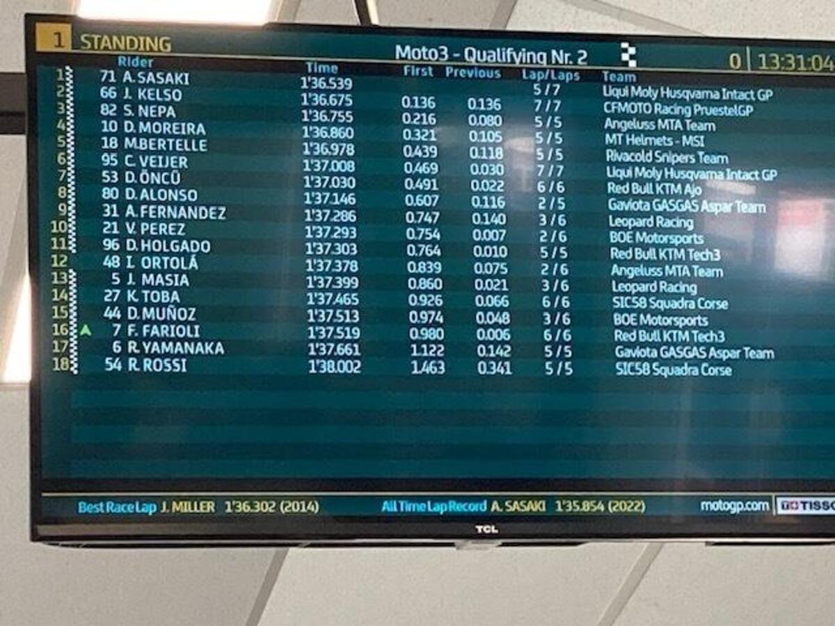 Ktm conquista il primo e il secondo posto con Brad Binder e Jack Miller, con Maverick Viñales a completare la prima fila virtuale. Jorge Martin è quarto (prima Ducati), Francesco Bagnaia 11esimo e quindi, per la seconda volta consecutiva, costretto a passare dalla Q1. Altri italiani: Marco Bezzecchi sesto, Fabio Di Giannantonio settimo, Enea Bastianini ottavo, Luca Marini 19esimo, Franco Morbidelli 22esimo.