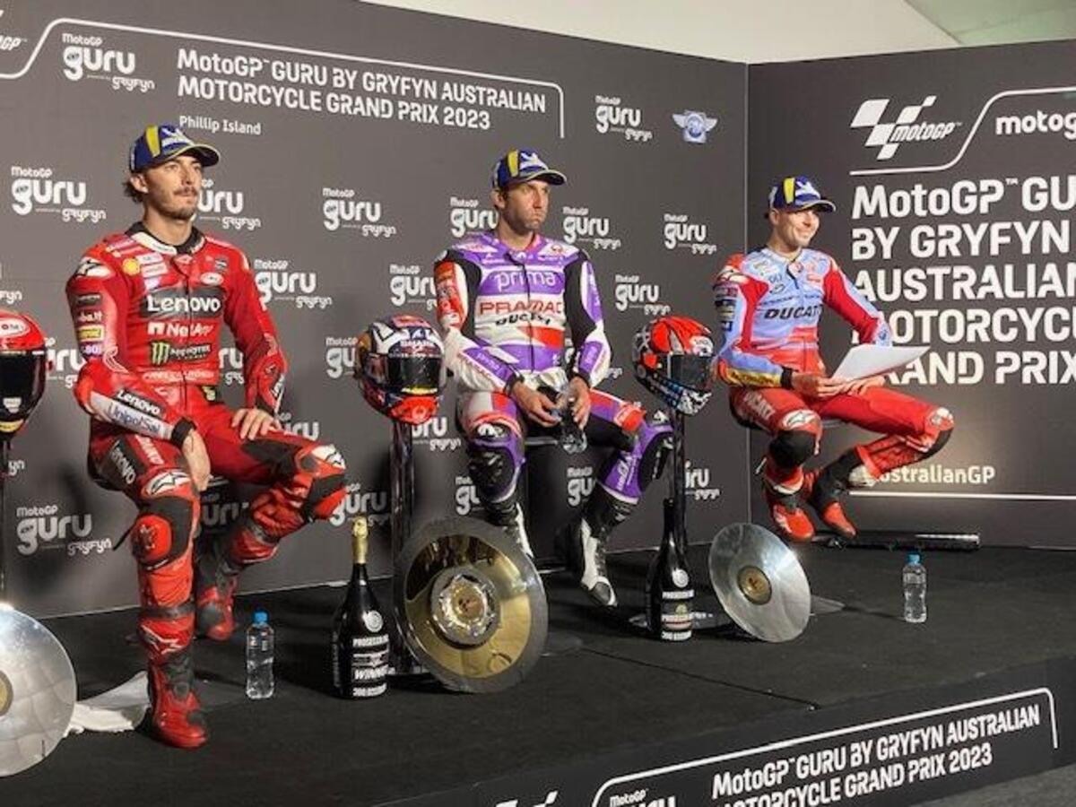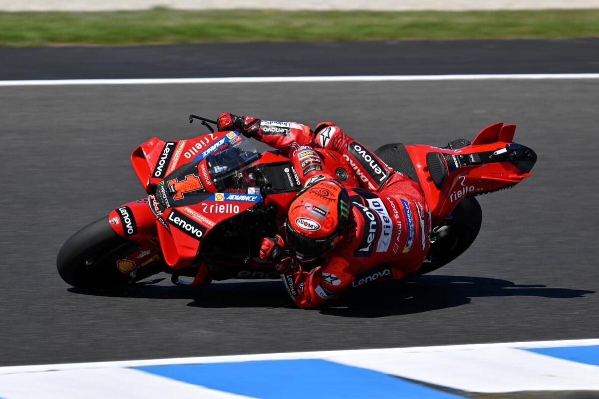 Solo - si fa per dire, eh - quarta la prima Ducati, quella di Jorge Martin, esplosivo nel turno del mattino, più concentrato sulla distanza nelle pre qualifiche. Il pilota del team Pramac non ha brillato più di tanto nel turno pomeridiano, ma è comunque sembrato in palla, bravo poi a concretizzare la sua velocità nel giro secco finale, quando in pista c’era veramente tanto traffico. Traffico che ha dato fastidio a Francesco Bagnaia, che però è 11esimo non solo per questo motivo: dopo che da Jerez in poi era sempre entrato direttamente in Q2, in Australia, per la seconda volta consecutiva, dovrà passare dalla Q1. La prima velocissima analisi del passo dice che il potenziale di Pecco è migliore, ma non sembra a postissimo nemmeno qui. Sicuramente ci sarà anche un po’ di nervosismo e di rammarico per l’11esimo posto: ancora una volta deve essere bravo a reagire. La Ducati piazza cinque piloti in Q2: oltre a Martin, anche Marco Bezzecchi (sesto), Fabio Di Giannantonio (settimo), Enea Bastianini ottavo e Johann Zarco decimo. Fatica Luca Marini, solo 19esimo (nelle FP1 era ultimo): Luca non sta bene fisicamente e non è riuscito a trovare una buona base. Ricordo che la Ducati non vince a Phillip Island dal 2010, dai tempi di Casey Stoner…