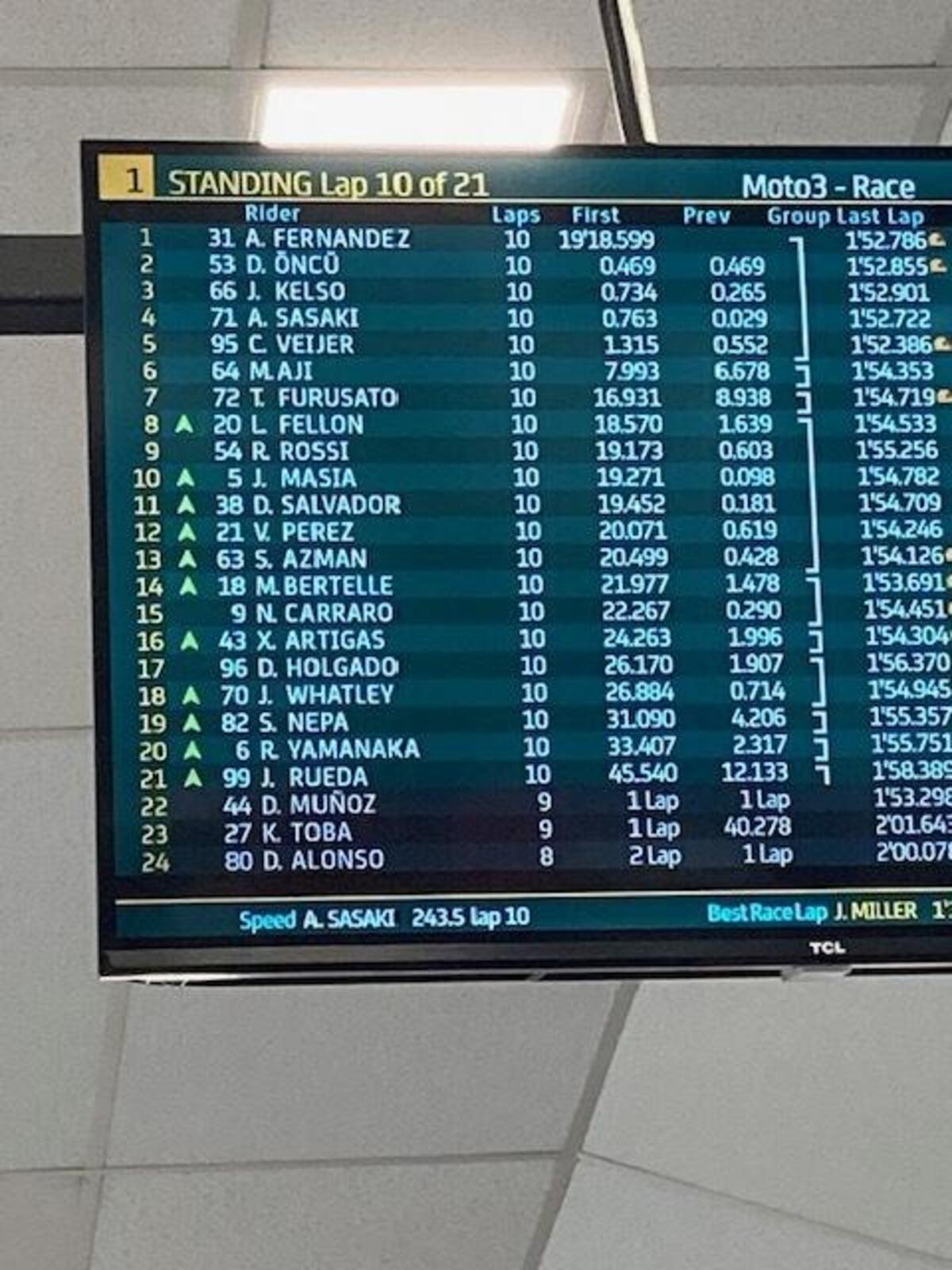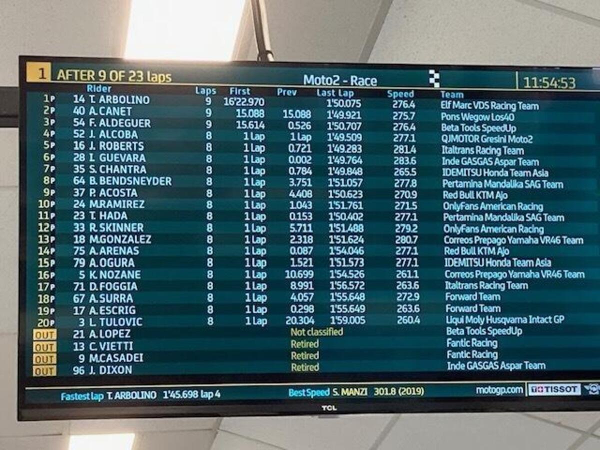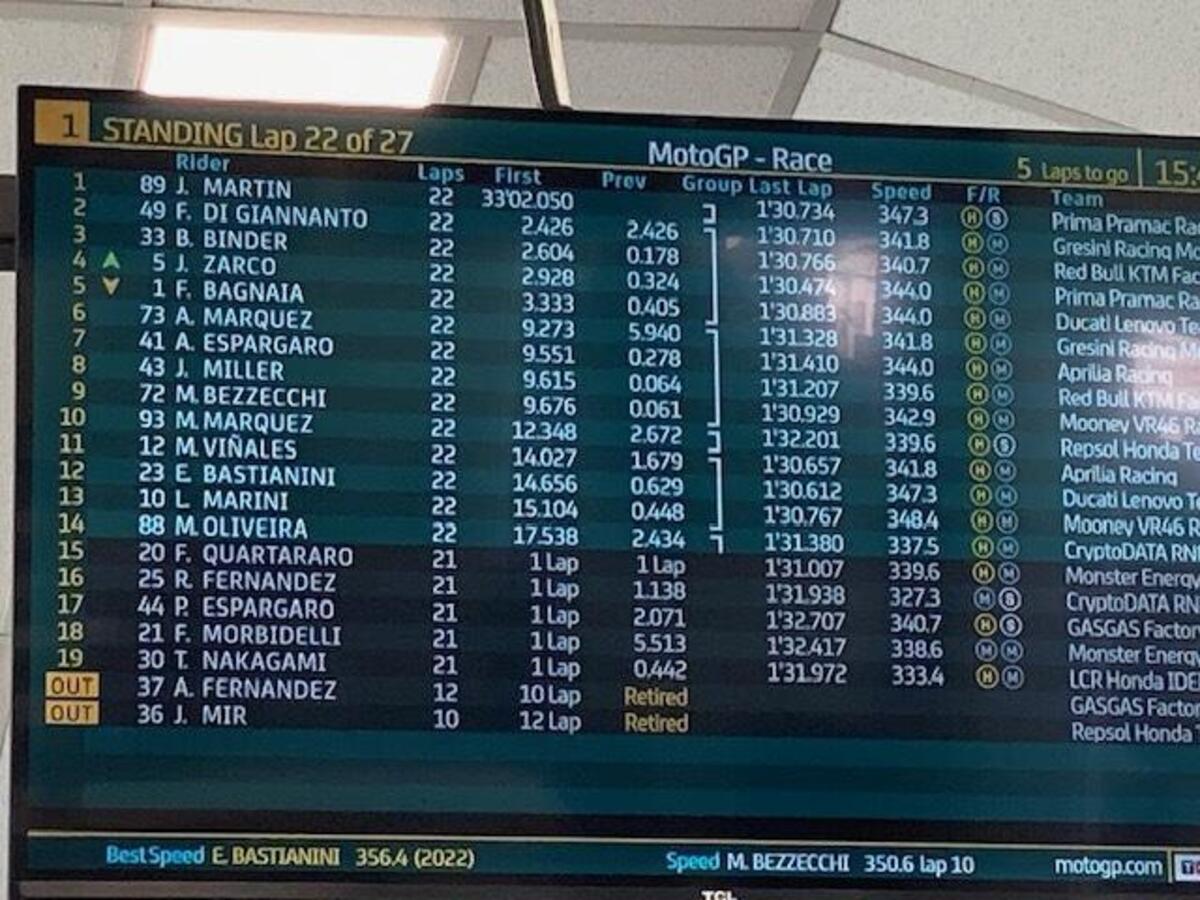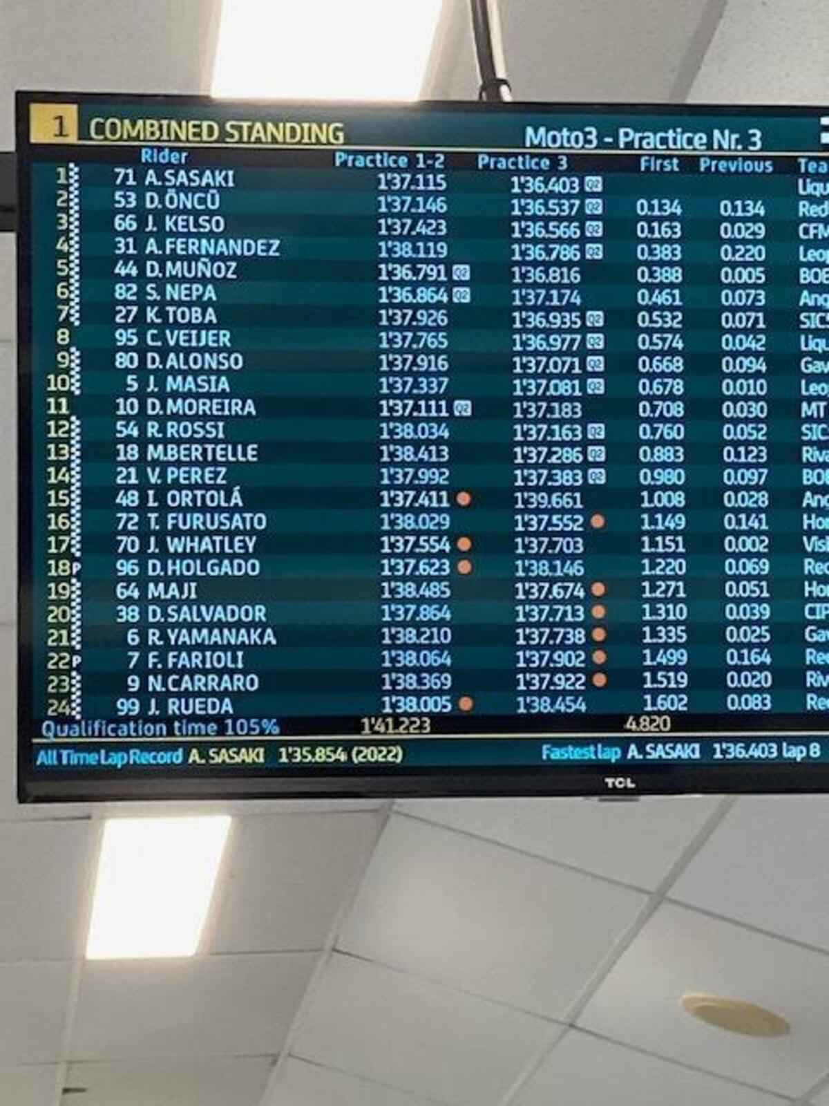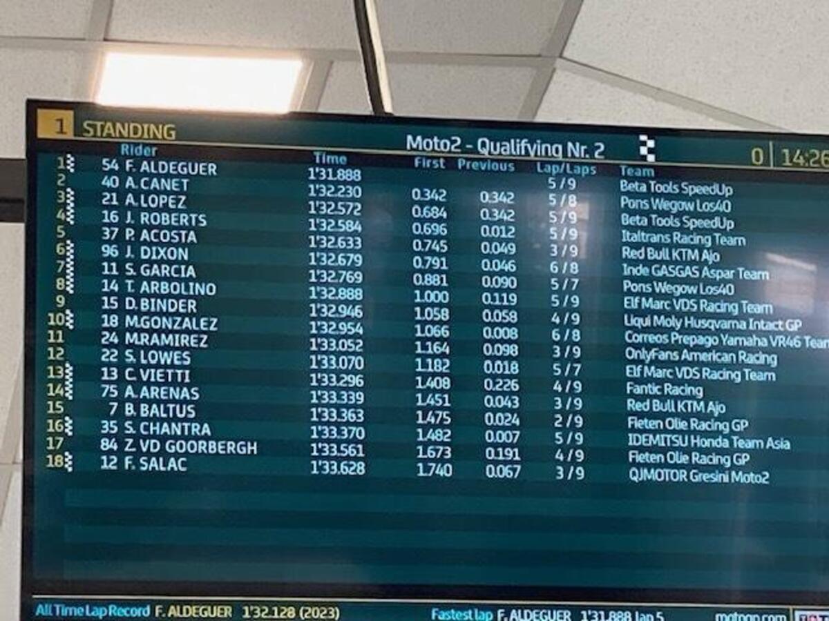 Ecco i dieci piloti già in Q2: Binder, Miller, Vinales, Martin, P.Espargaro, Bezzecchi, Di Giannantonio, Bastianini, A.Espargaro, Zarco.