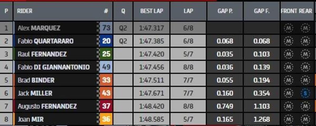 Ci sono le P2, il turno che dura un’ora e decide i 10 che vanno diretti in Q2. Mancano 49 minuti