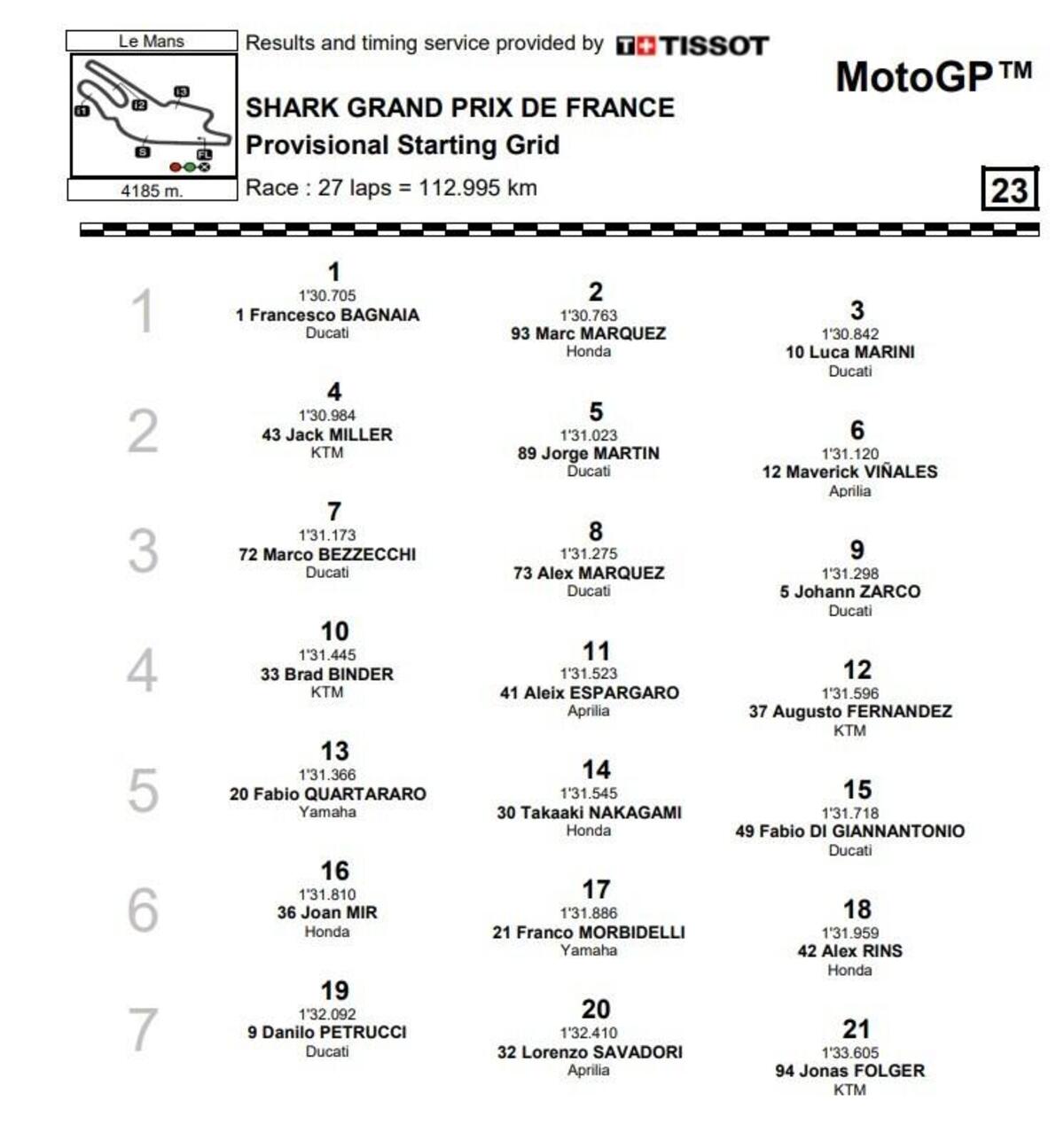 decimo, per la mia fiducia è molto buono. Gli altri piloti hanno fatto