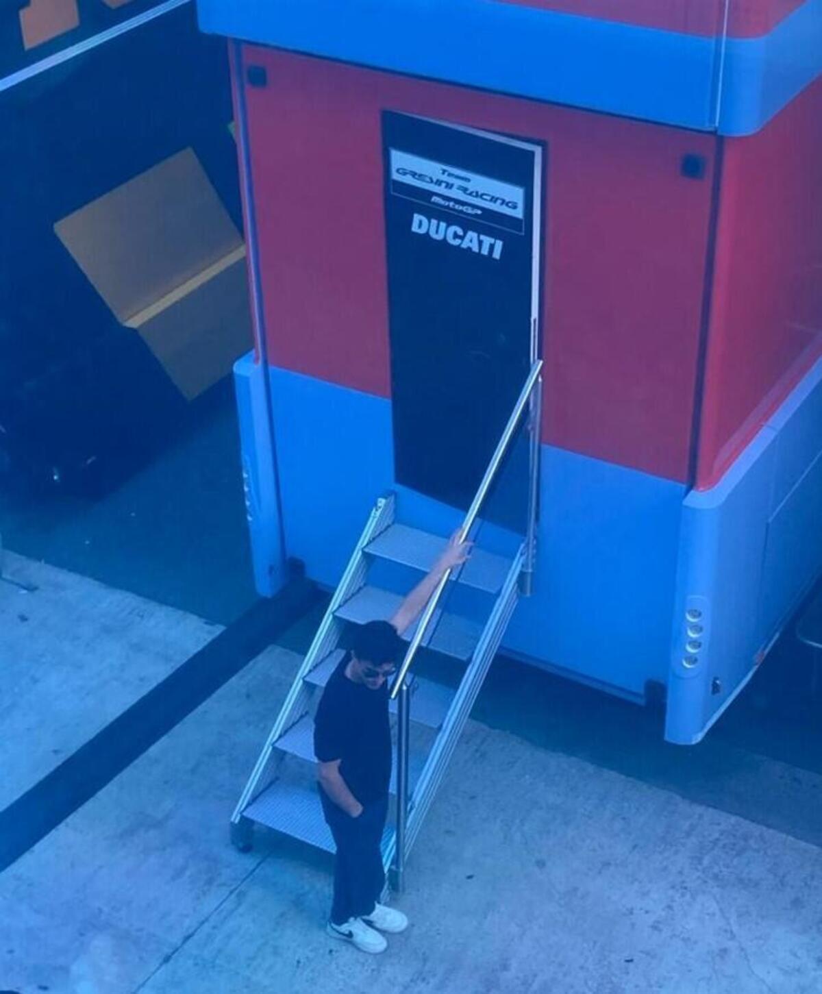 Marquez entra nel motorhome Gresini, lunedì pomeriggio (1)