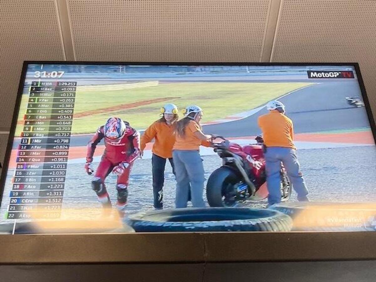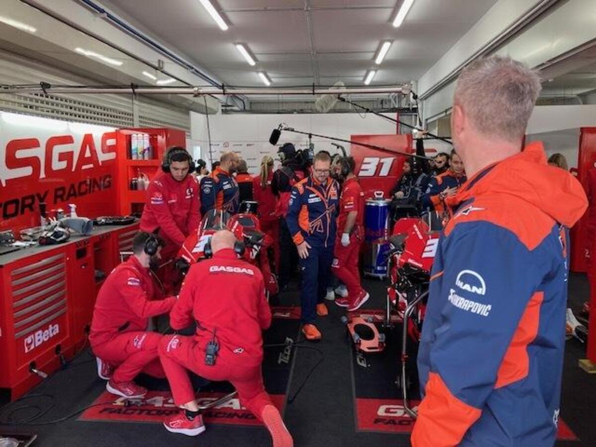 Dopo l’infortunio alla gamba sx, conseguenza di una caduta nei giorni del gp, Aleix Espargaro va a farsi visitare a Barcellona. Poi andrà in Germania in galleria del vento