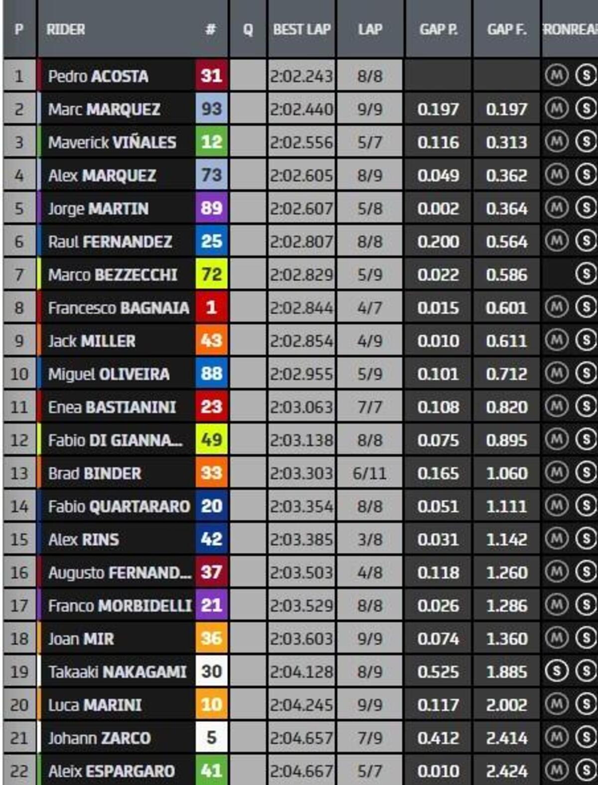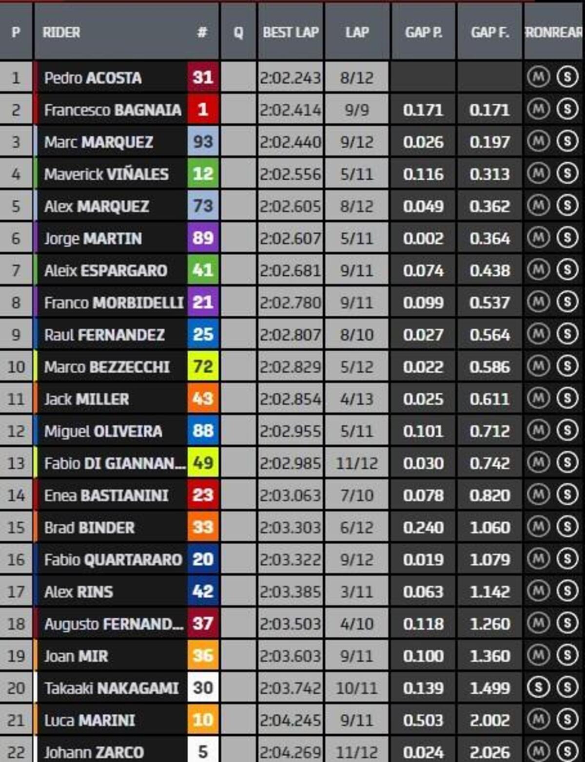 “Nel 2023 non eravamo andati così male: avevo fatto quarto nella sprint ed ero caduto in gara, ma eravamo veloci. Sicuramente questa è una sfida per noi, uno dei circuiti più impegnativi. Aprilia ha cercato Quartararo? E’ normale che sia così, è uno dei piloti migliori in assoluto, ma per quel che so non gli è stata fatta nessuna offerta. Io non so quando deciderò se continuare o no, contano i risultati: se da qui al Mugello sarò veloce, allora continuerò, altrimenti avrebbe poco senso”